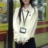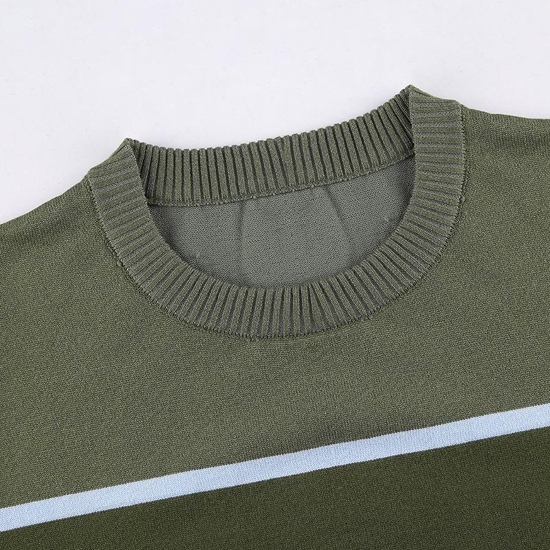 Ropa de Mujer Otoño e Invierno 2021 Vestido Enterizo Estilo Americano Retro Universitario Rayas Color Contraste Manga Larga Cuello Redondo Tops de Lana para Mujer