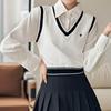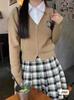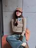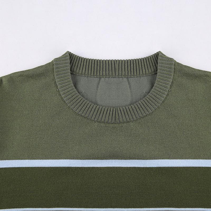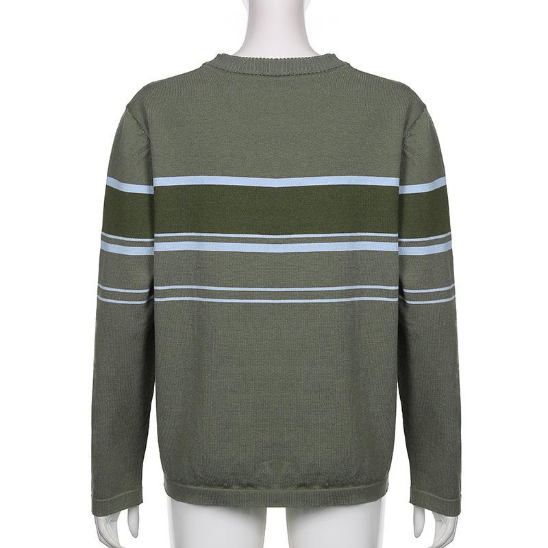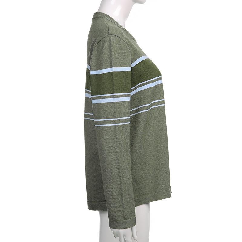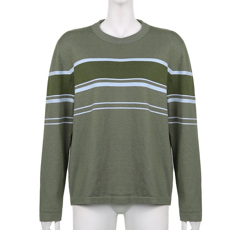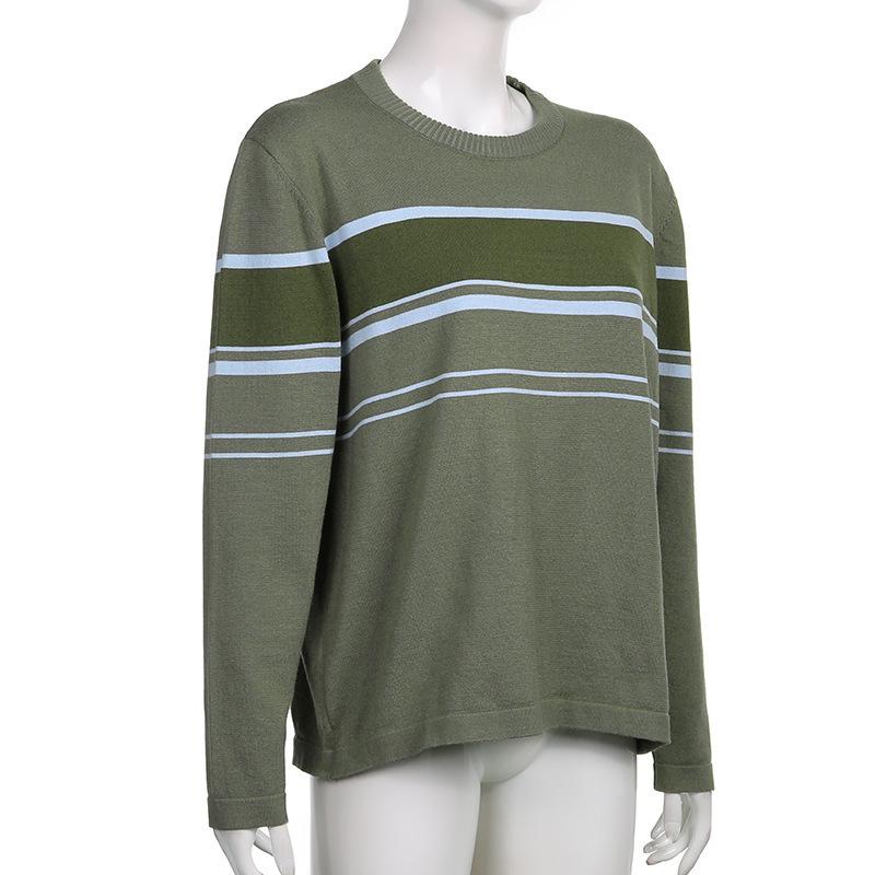 Ropa de mujer otoño e invierno 2021 entrega de una pieza estilo preppy retro americano color de contraste a rayas manga larga cuello redondo top de lana para mujer