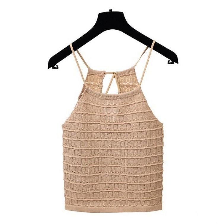 Camisola de verano estilo retro de Hong Kong, sexy, ajustada, con cordón, corta, adelgazante, combinable, para mujer