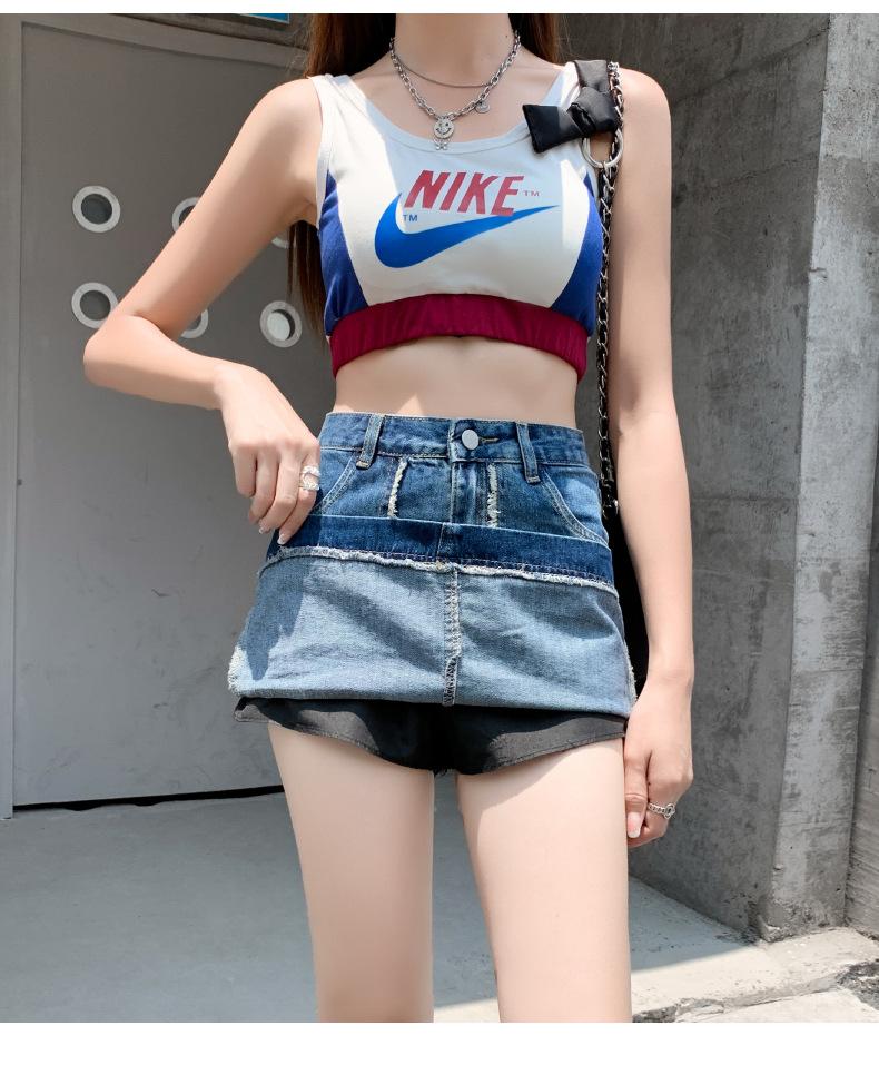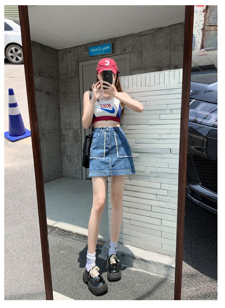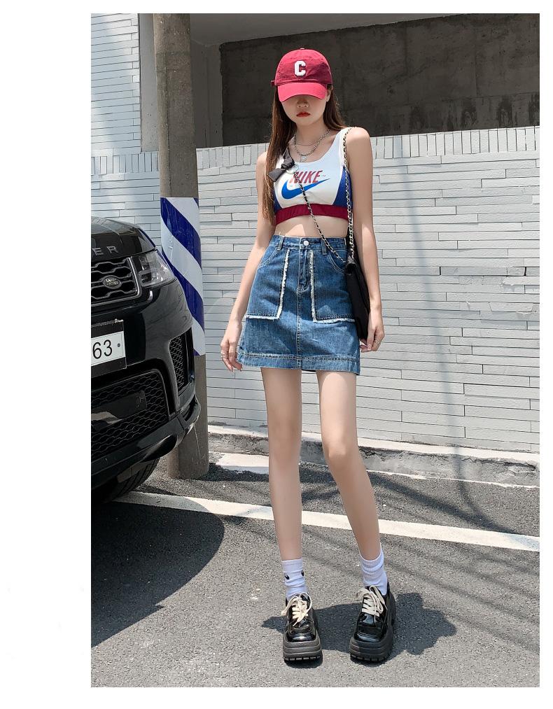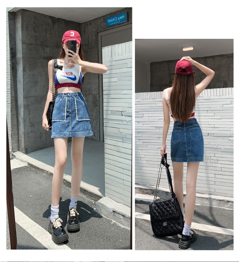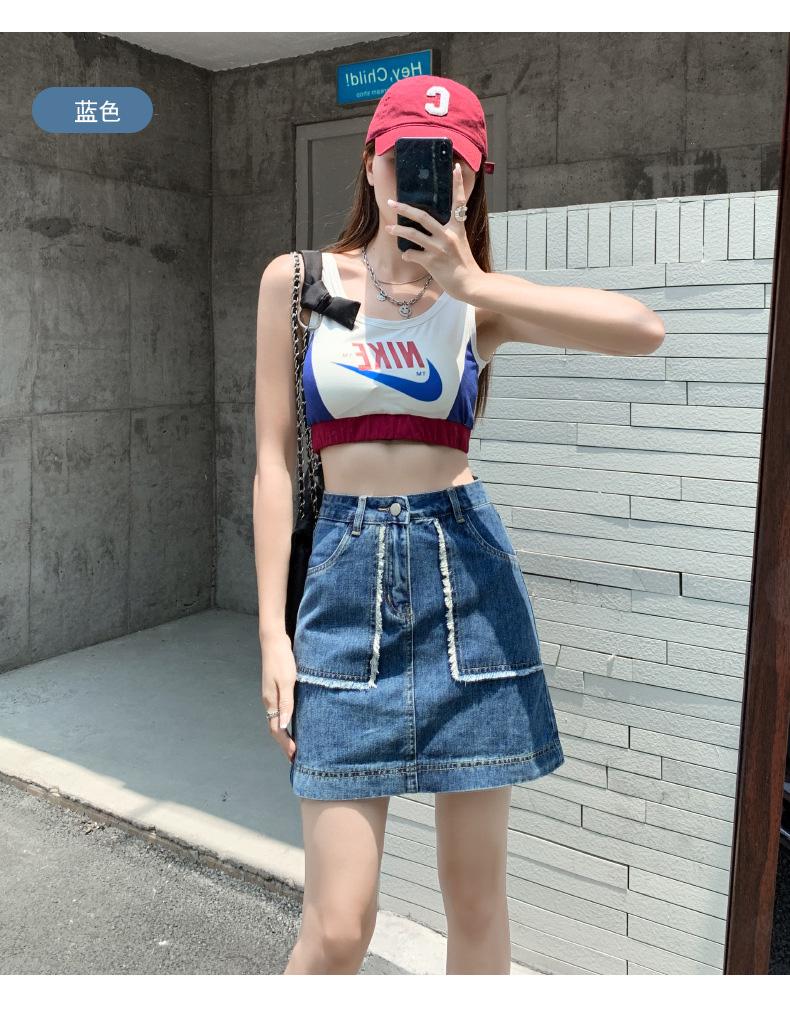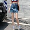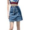 Centro comercial mismo estilo nueva ropa de mujer 2024 Verano delgada cintura alta deshilachada bolsillo falda de mezclilla falda azul para mujer