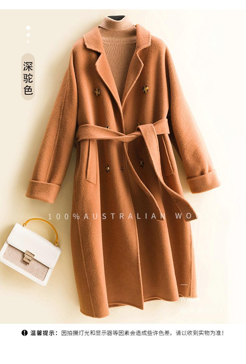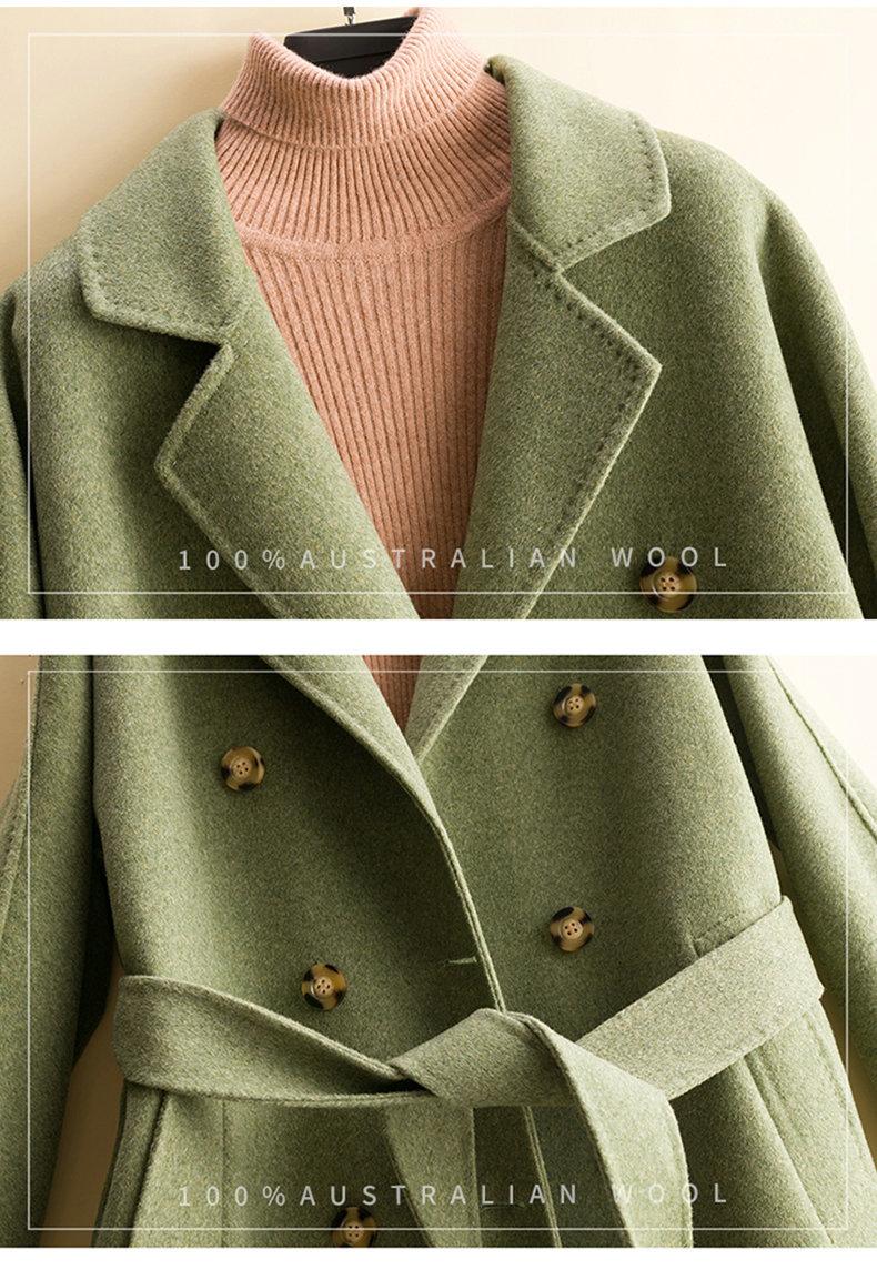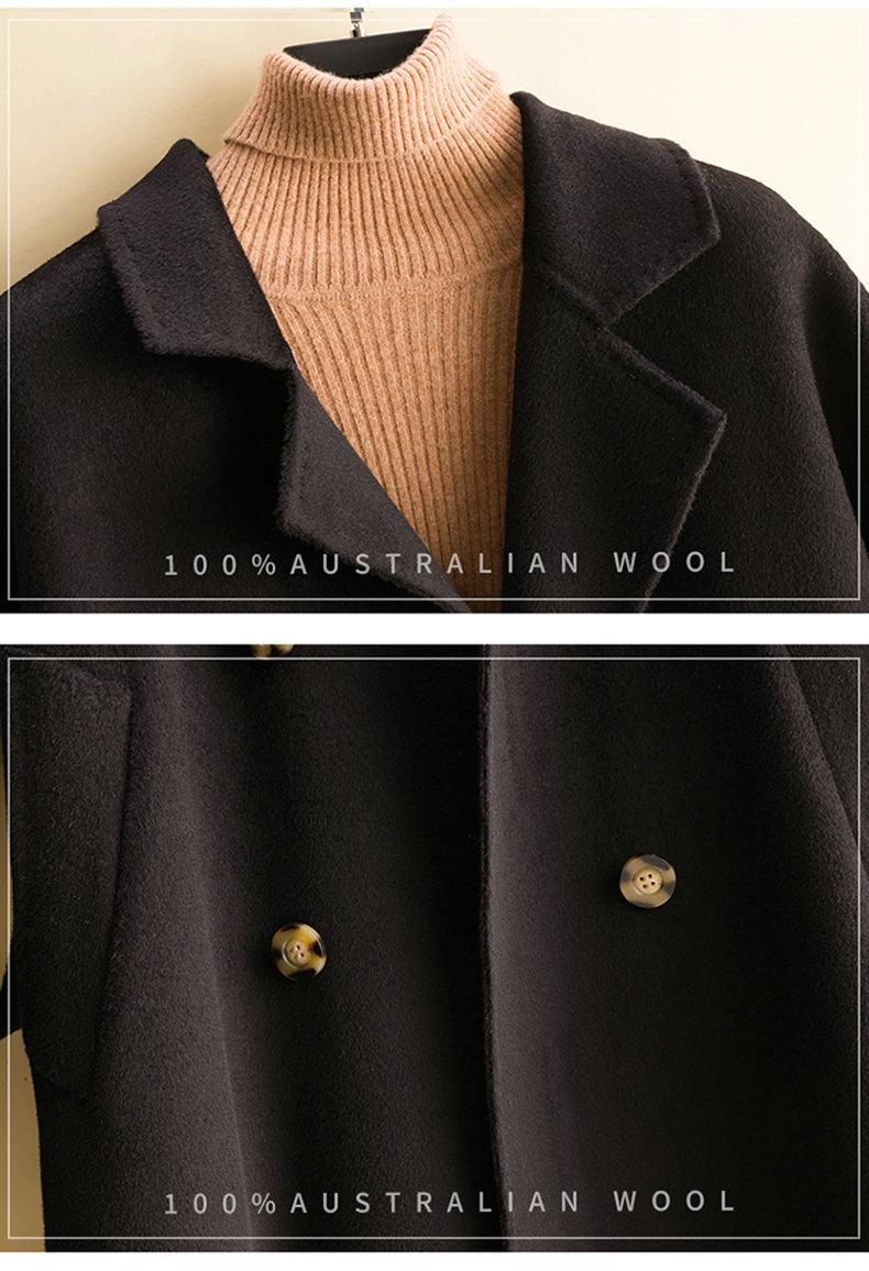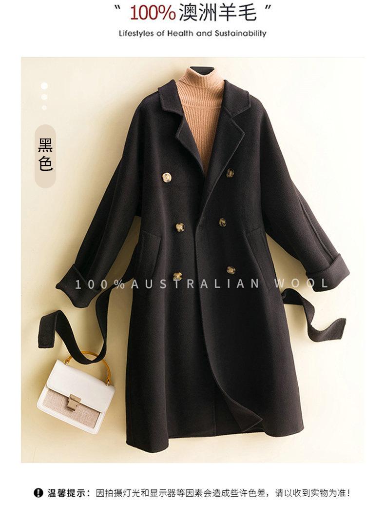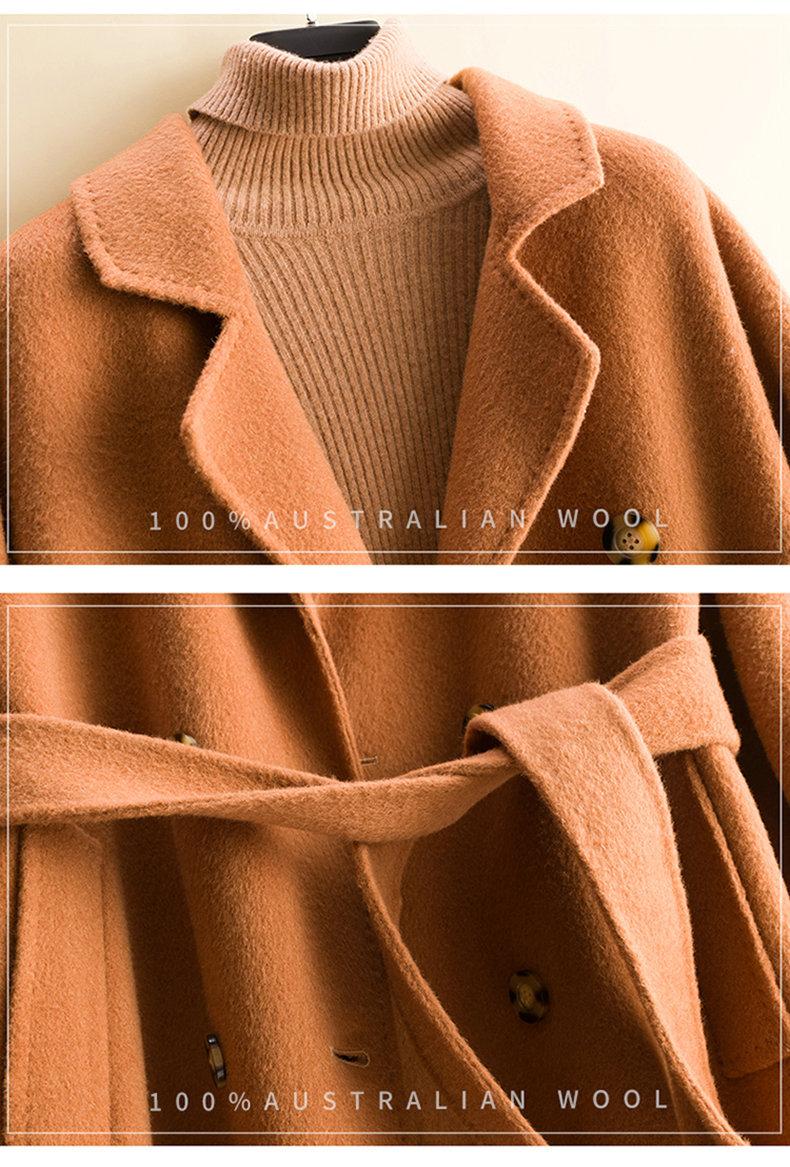 Abrigo de Lana de Doble Vista Nuevo 2021 para Mujer Talla Grande Otoño e Invierno Suelto Largo Medio Doble Botonadura Abrigo de Lana
