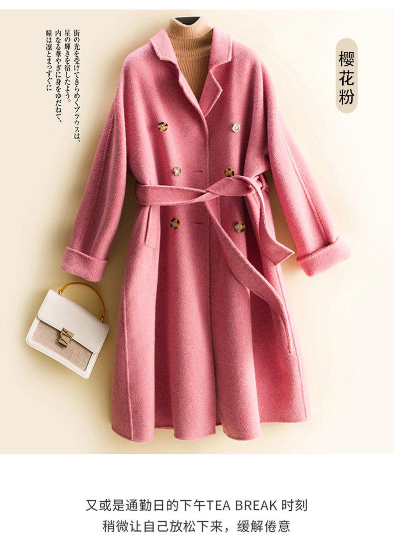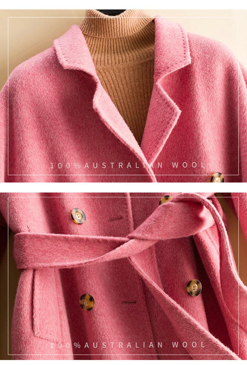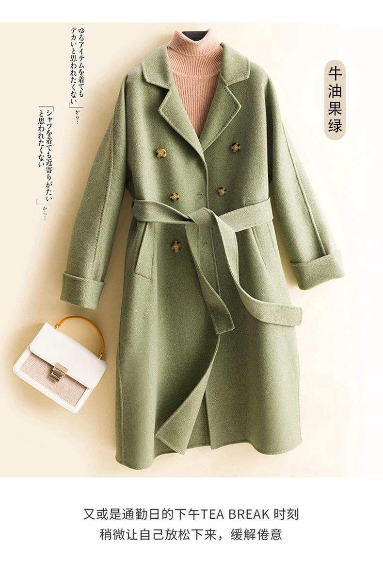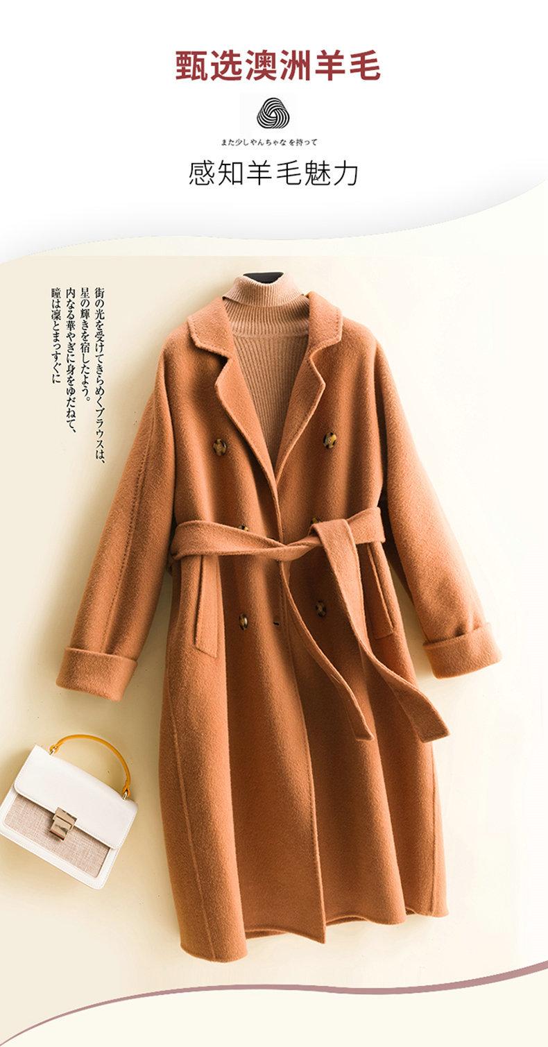 Abrigo de Lana de Doble Vista Nuevo 2021 para Mujer Talla Grande Otoño e Invierno Suelto Largo Medio Doble Botonadura Abrigo de Lana