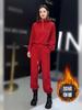 Rico Año Nuevo Navidad forro polar Engrosado Traje de Moda para Mujer Otoño e Invierno Nuevo Estilo Occidental Rojo Sudor Conjunto de Dos Piezas