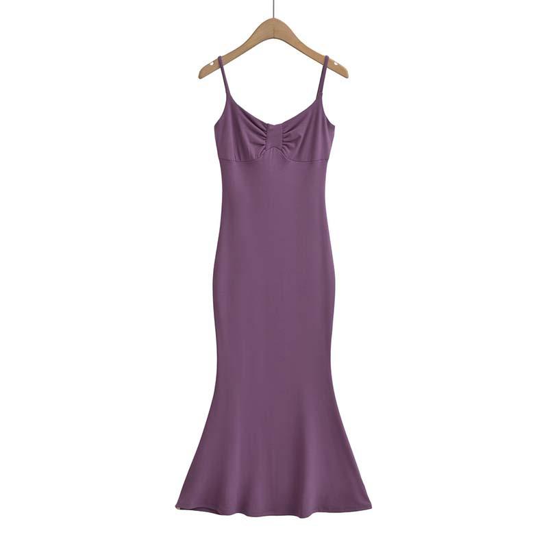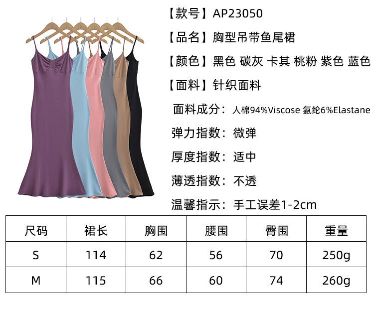 AP23050-23 Vestido elástico de primavera para mujer, estilo francés, con tirantes y cola de pez.