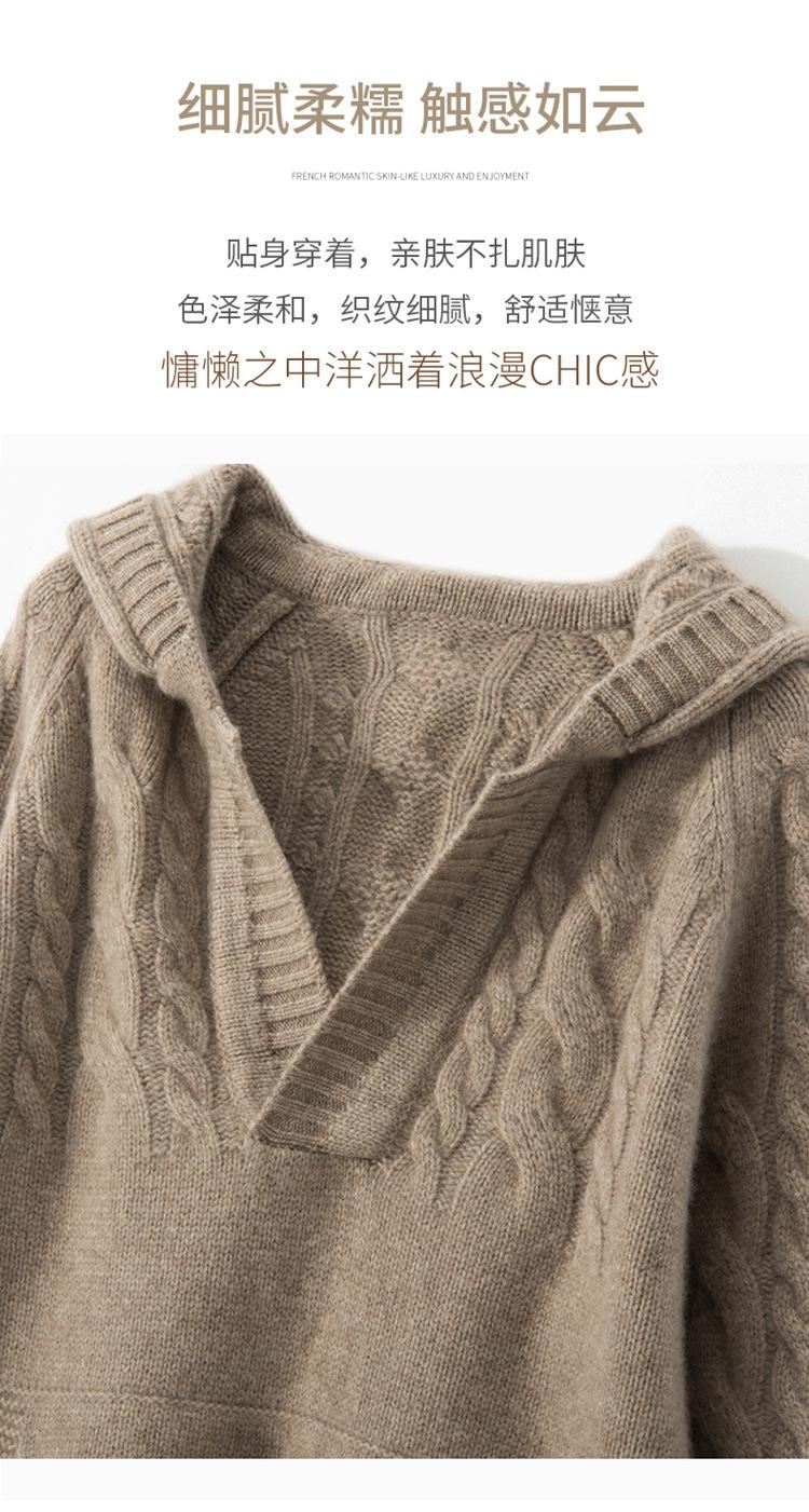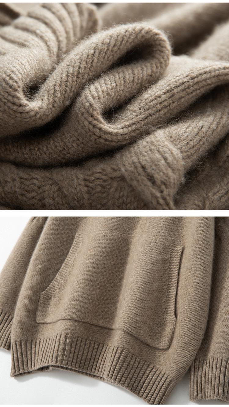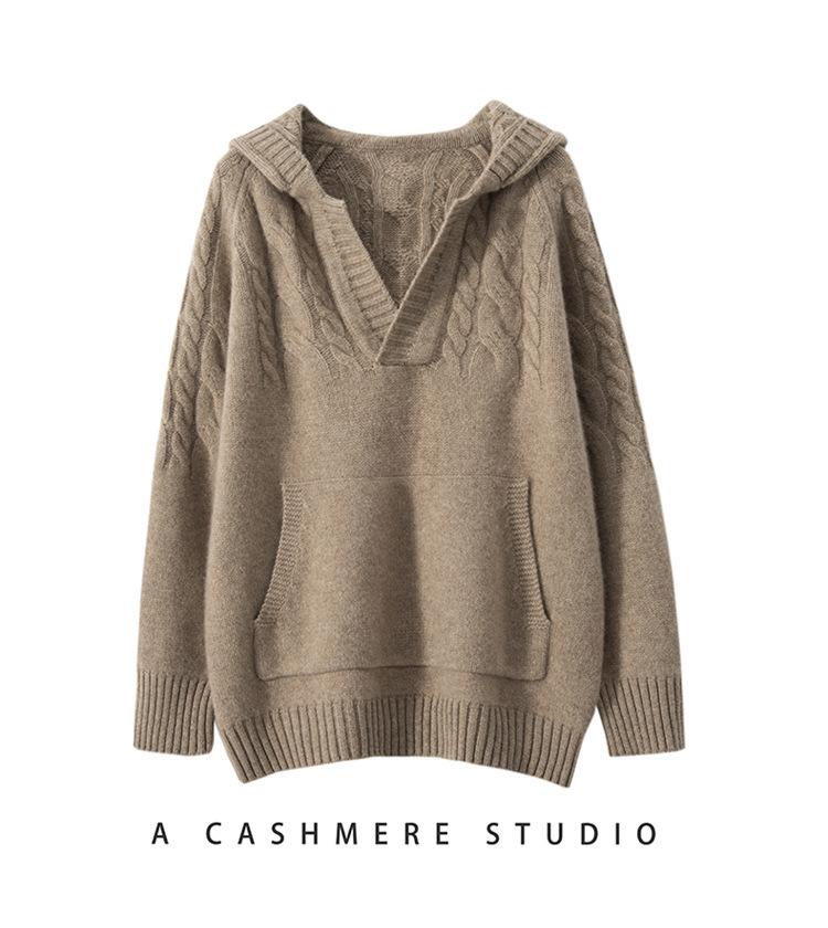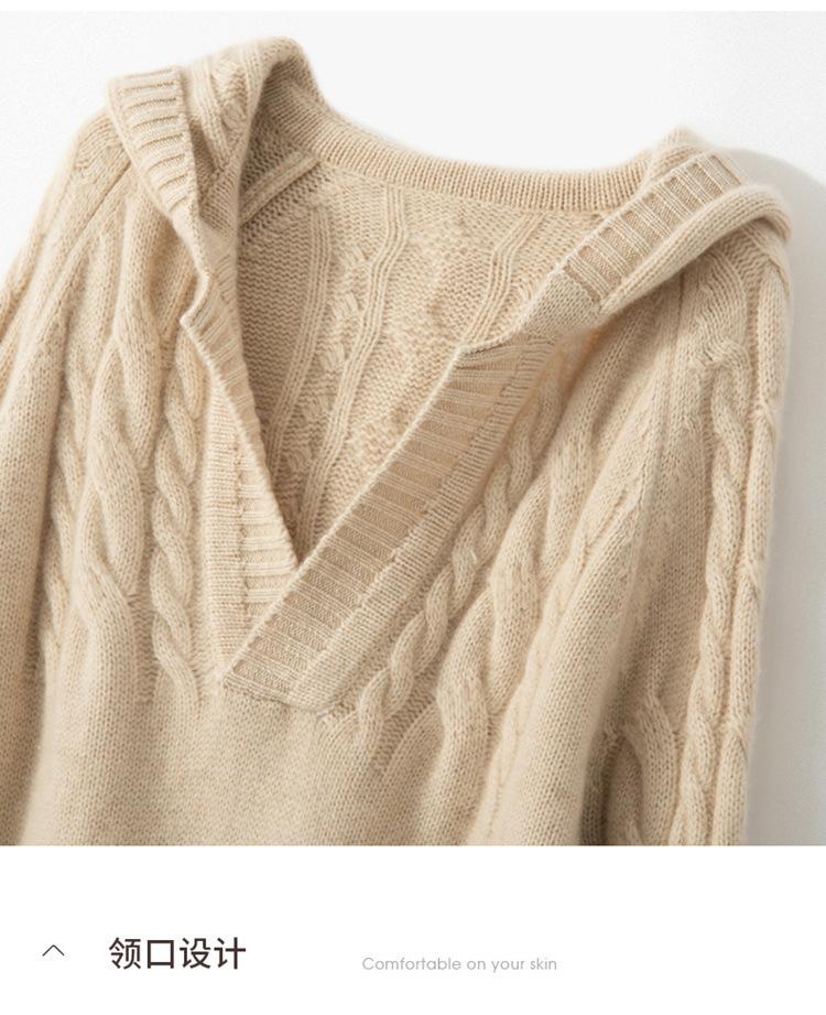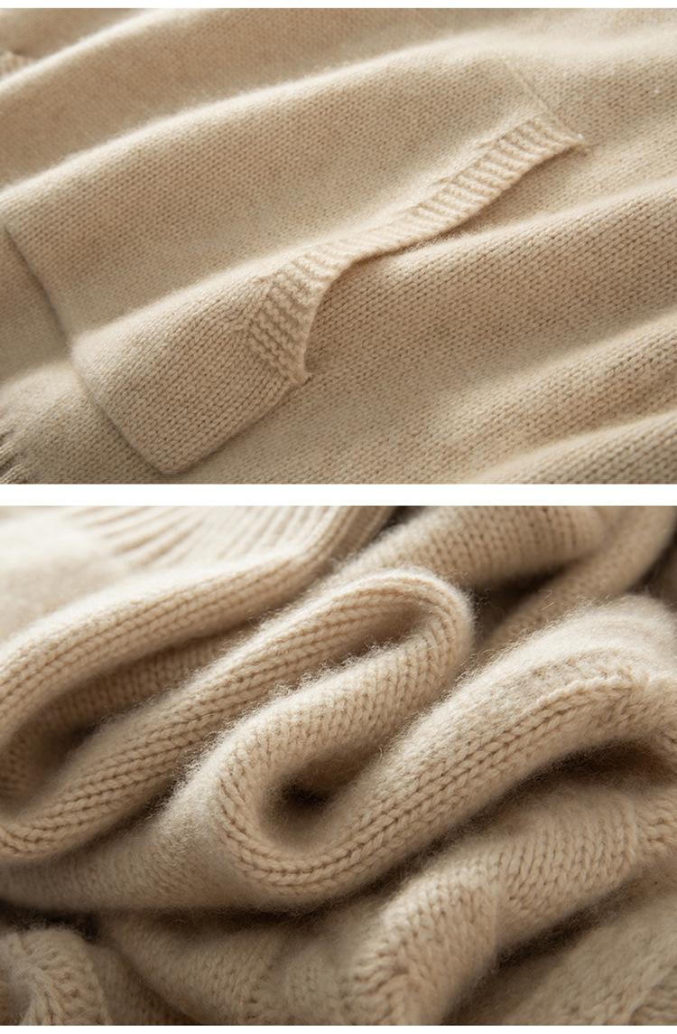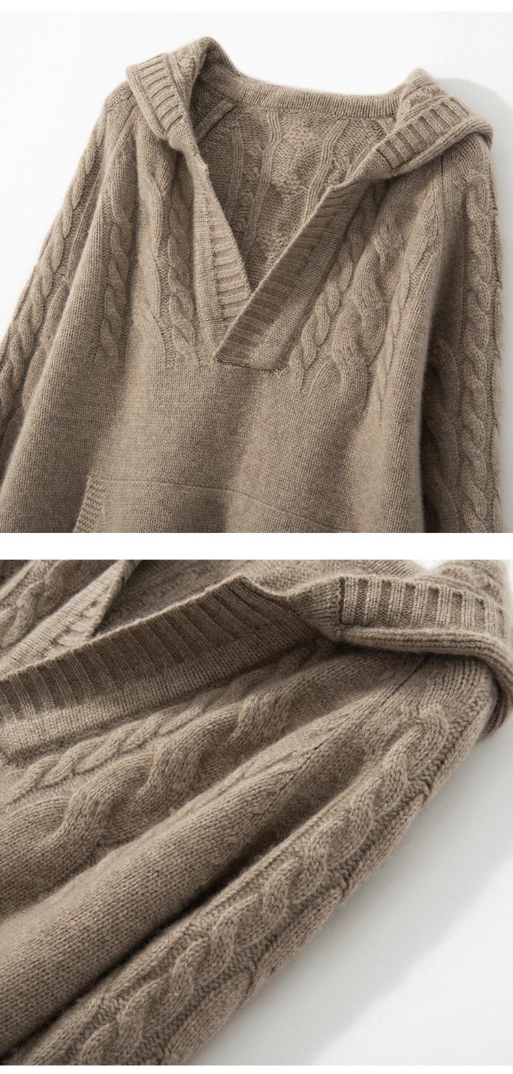 Suéter de Cachemira para Mujer de Otoño e Invierno 2025, Holgado, con Cuello en V, con Capucha, de Largo Medio, de Punto, con Bajo Torcido