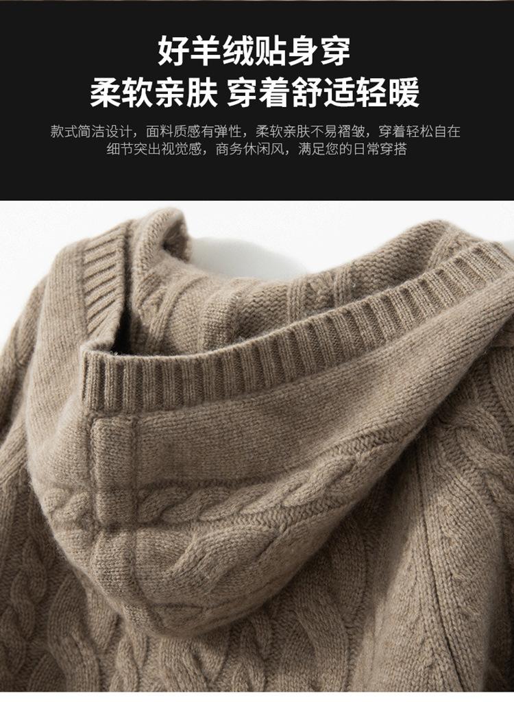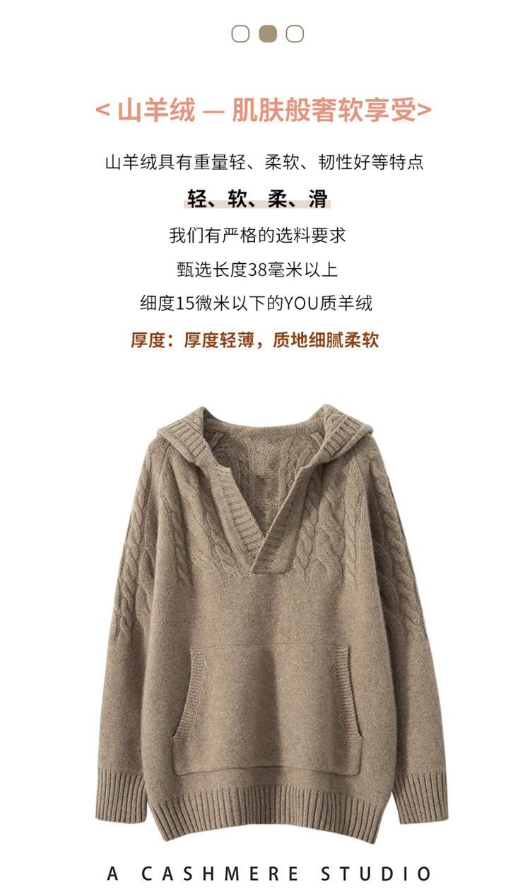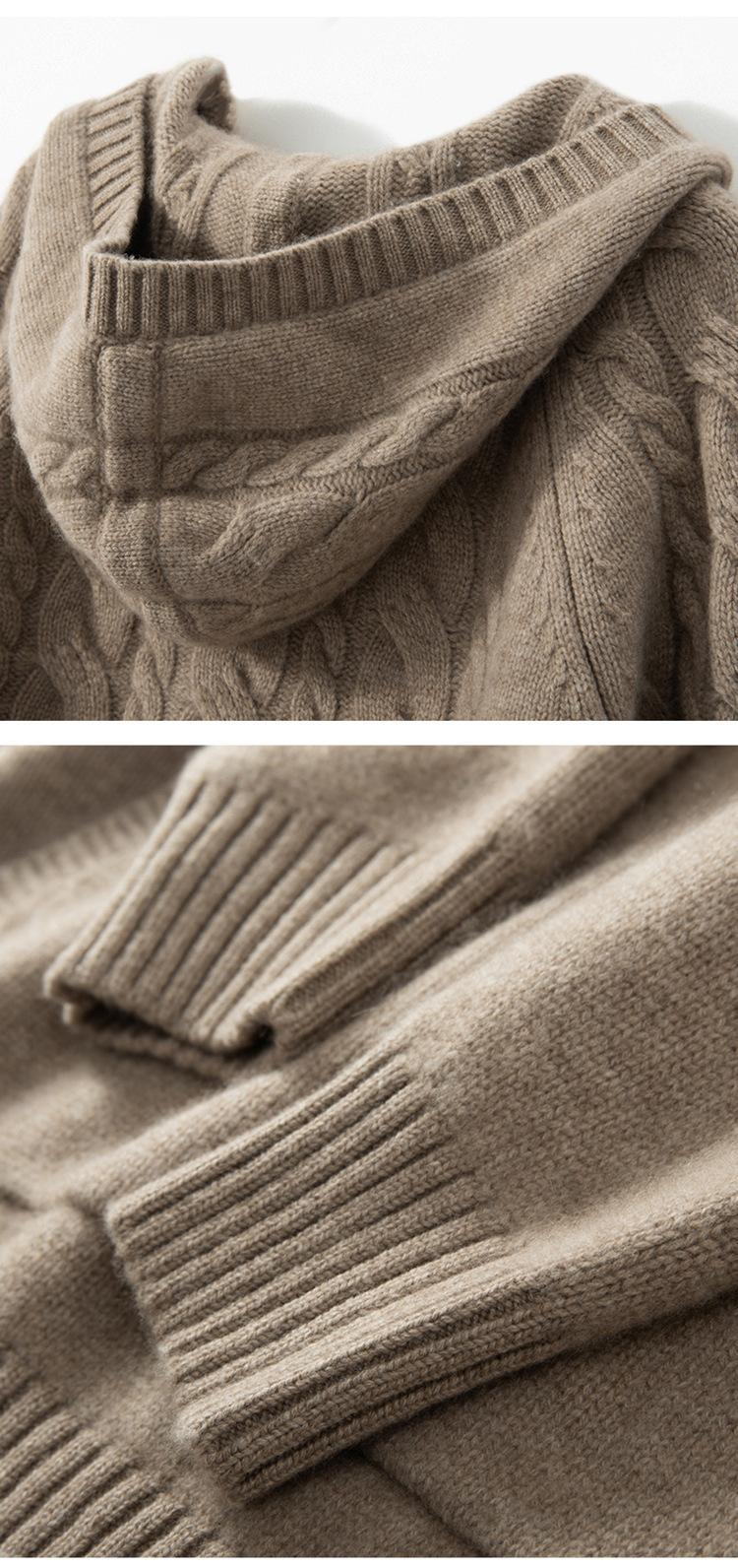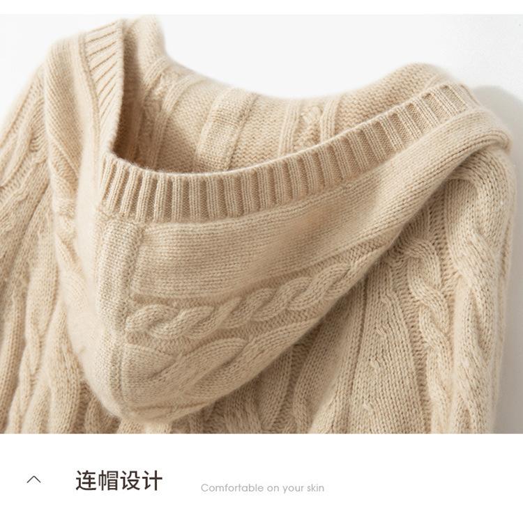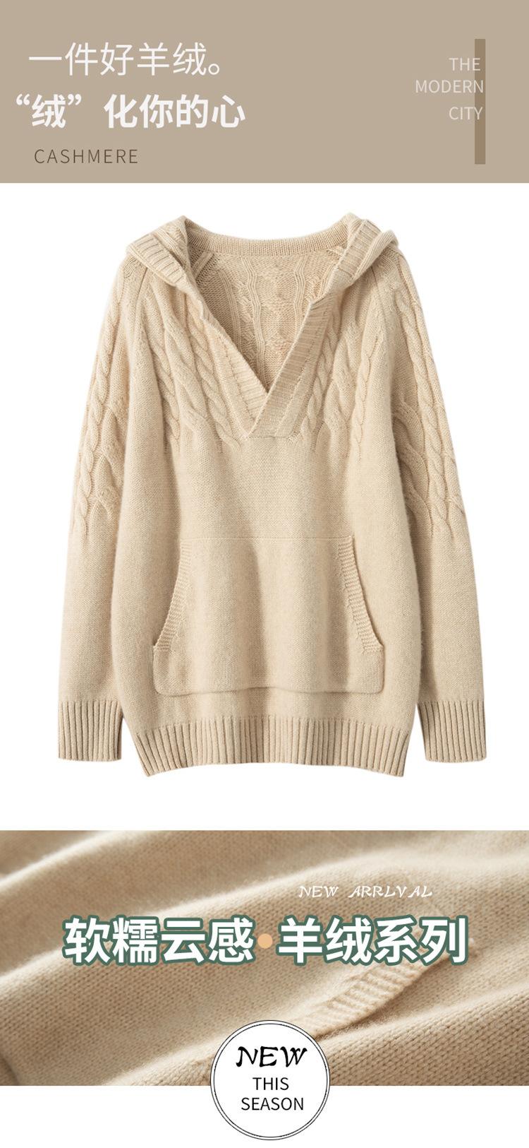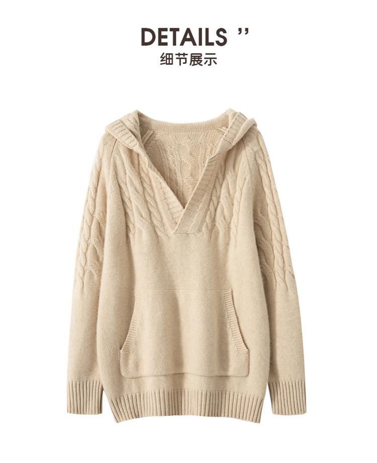 Suéter de Cachemira para Mujer de Otoño e Invierno 2025, Holgado, con Cuello en V, con Capucha, de Largo Medio, de Punto, con Bajo Torcido