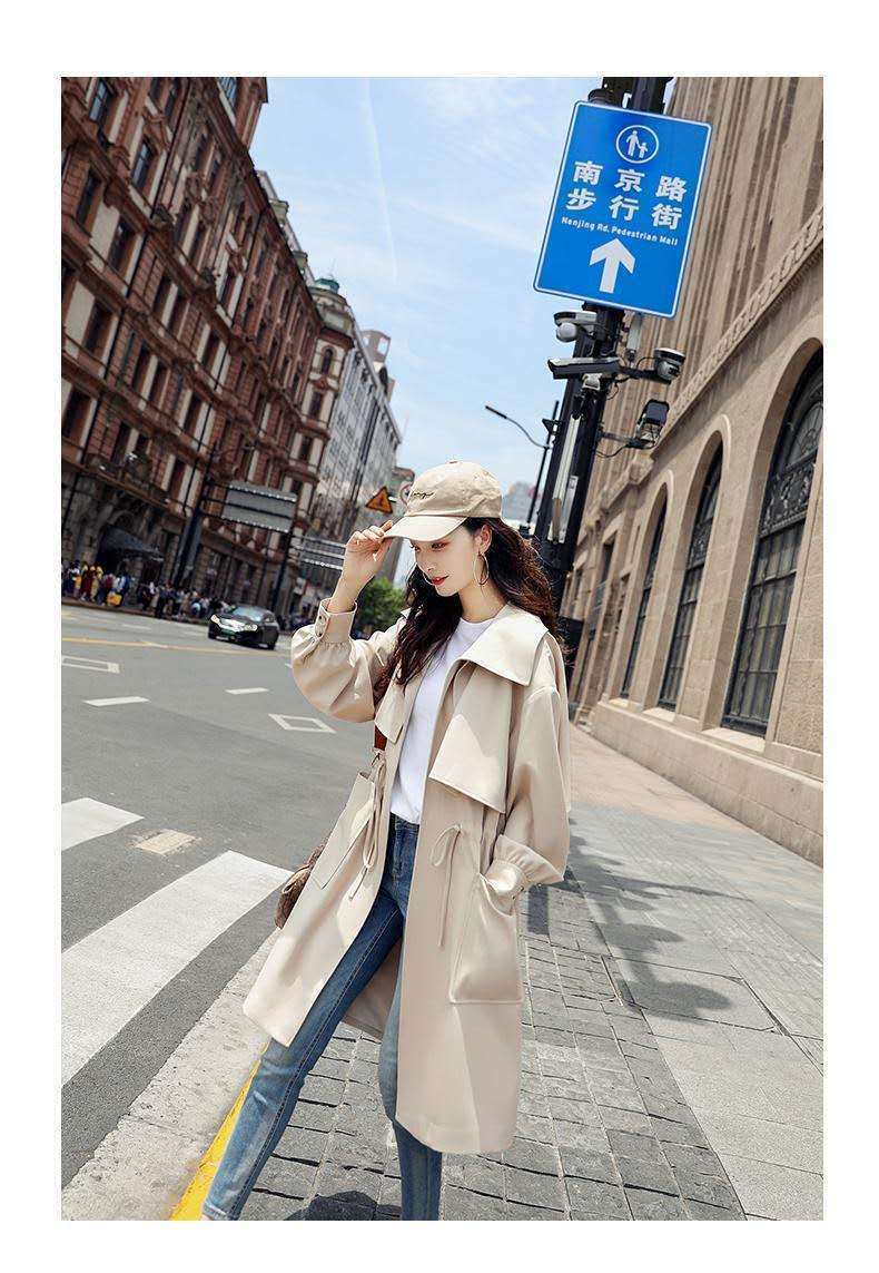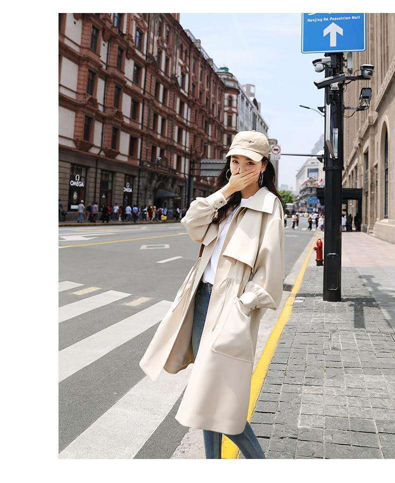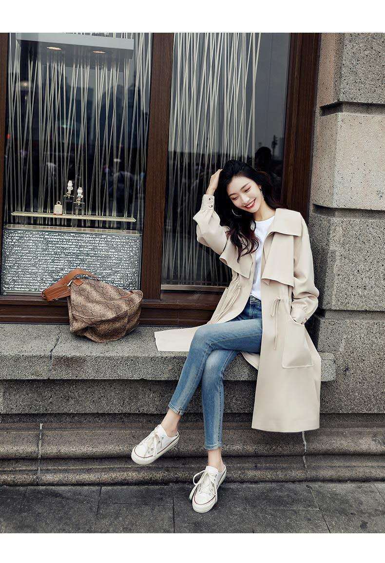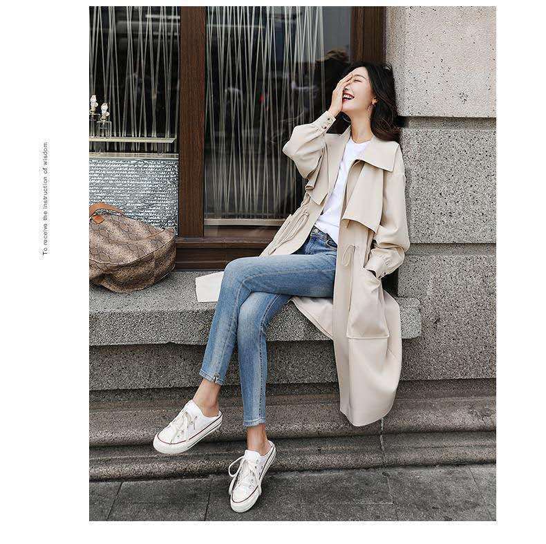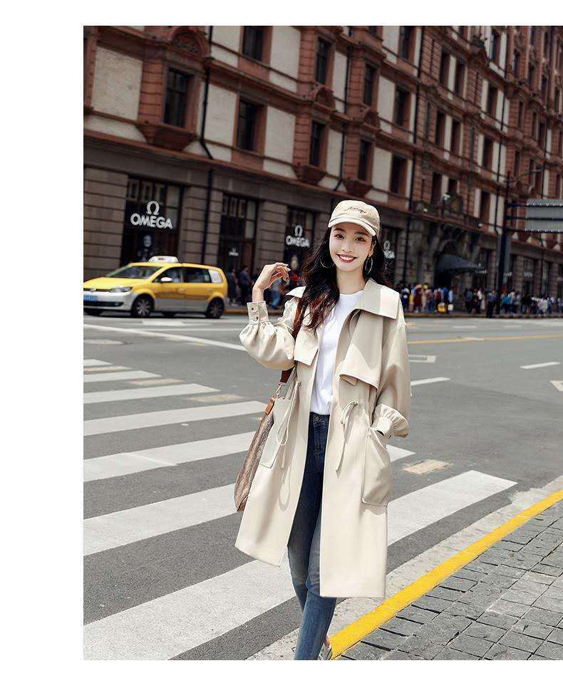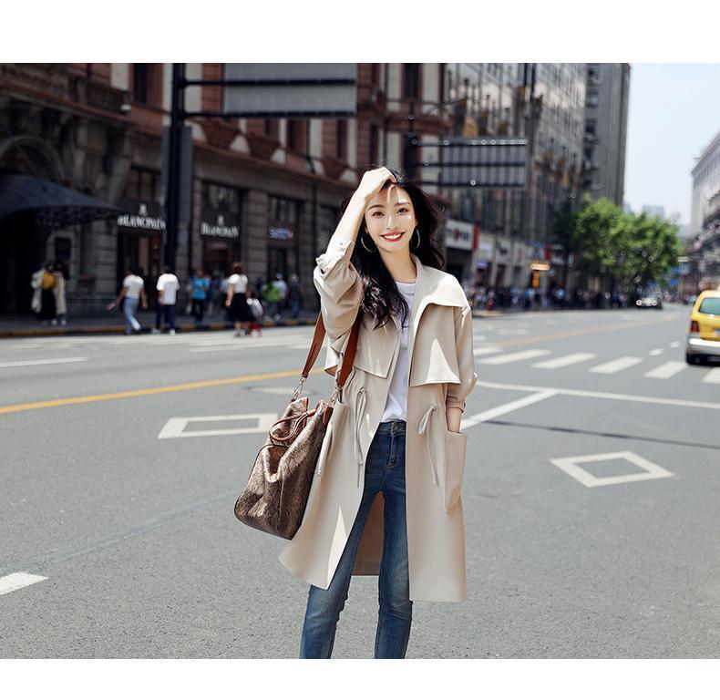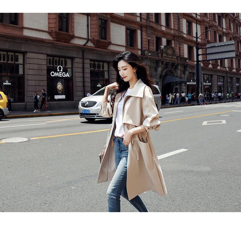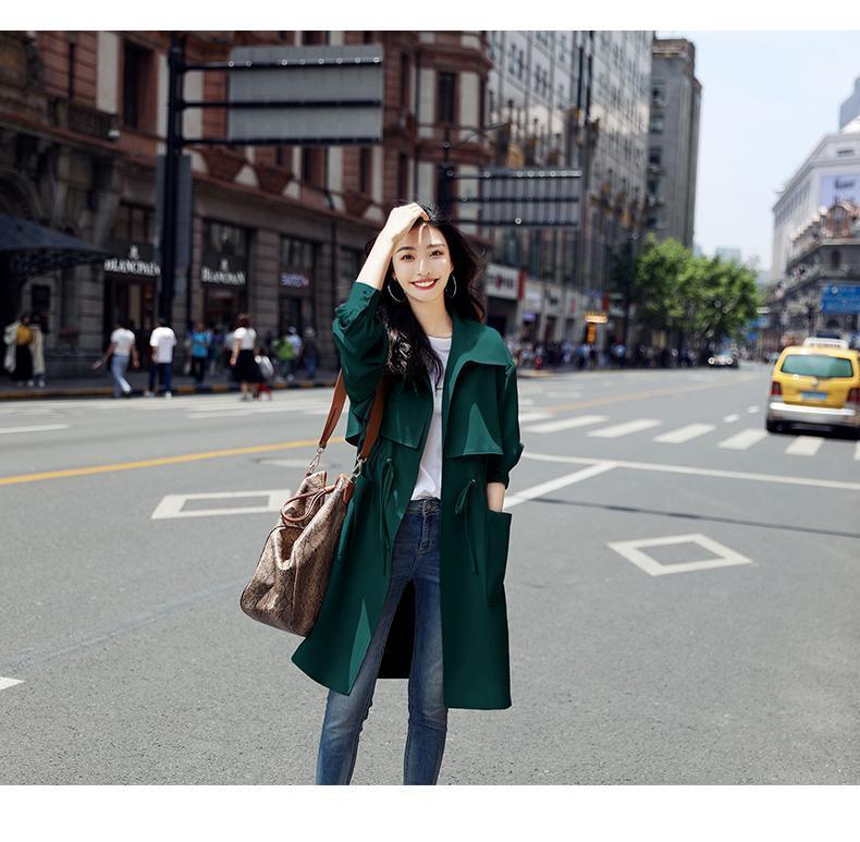 Abrigo de Primavera y Otoño para Mujer 2025 Nuevo Estilo Coreano Moda Delgada Estilo Británico Abrigo Adelgazante de Cintura Largo Medio Cortavientos para Mujer