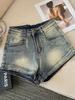Pantalones cortos vaqueros ajustados estilo Hong Kong vintage para mujer, de verano, de cintura alta, finos y elásticos, de corte entallado y súper cortos.