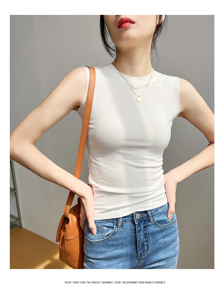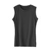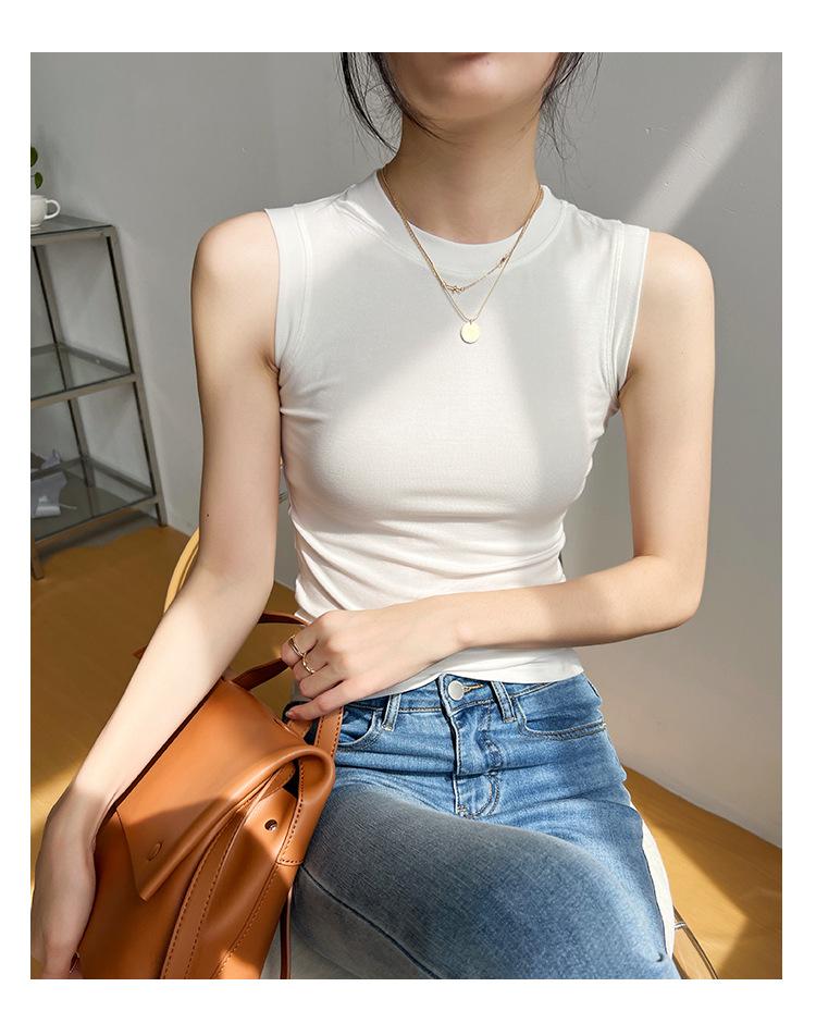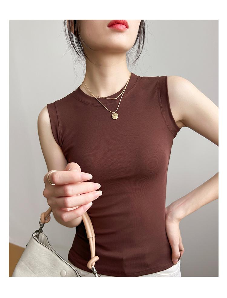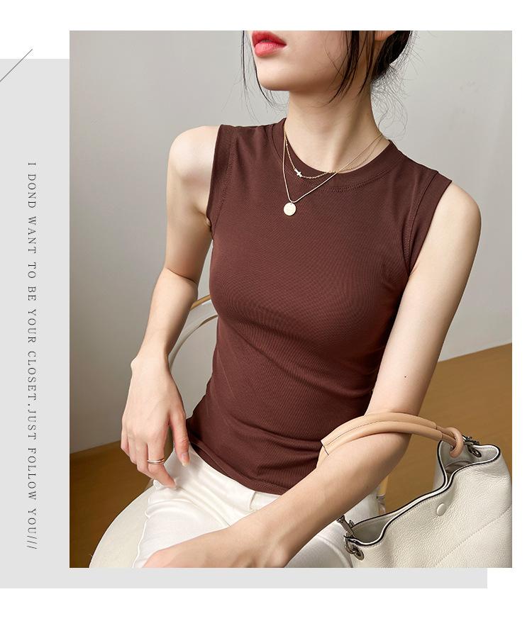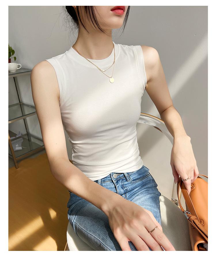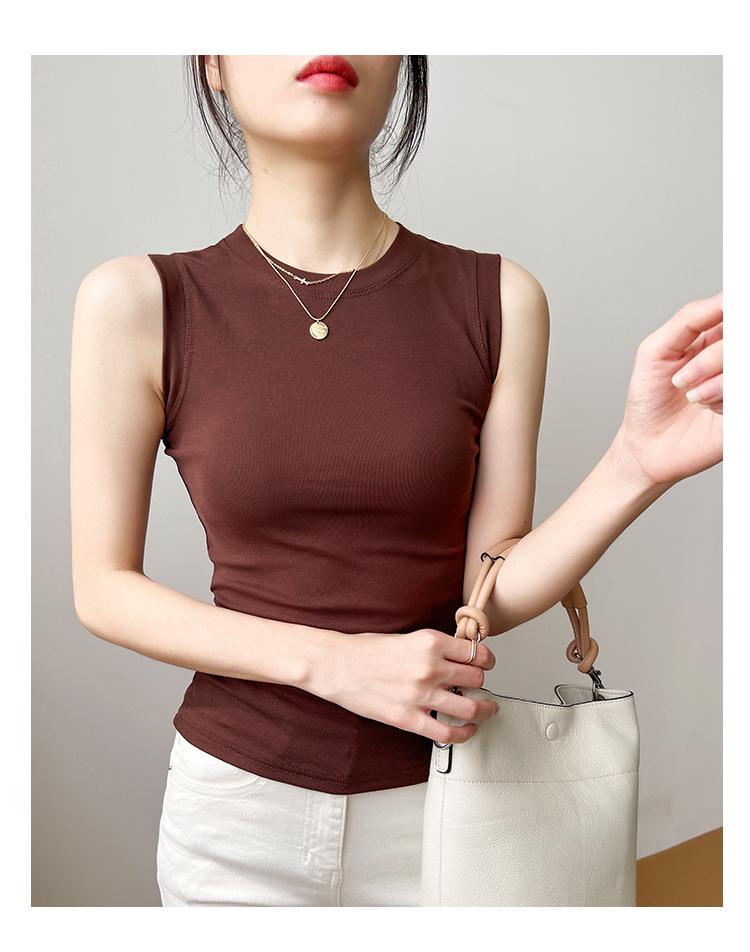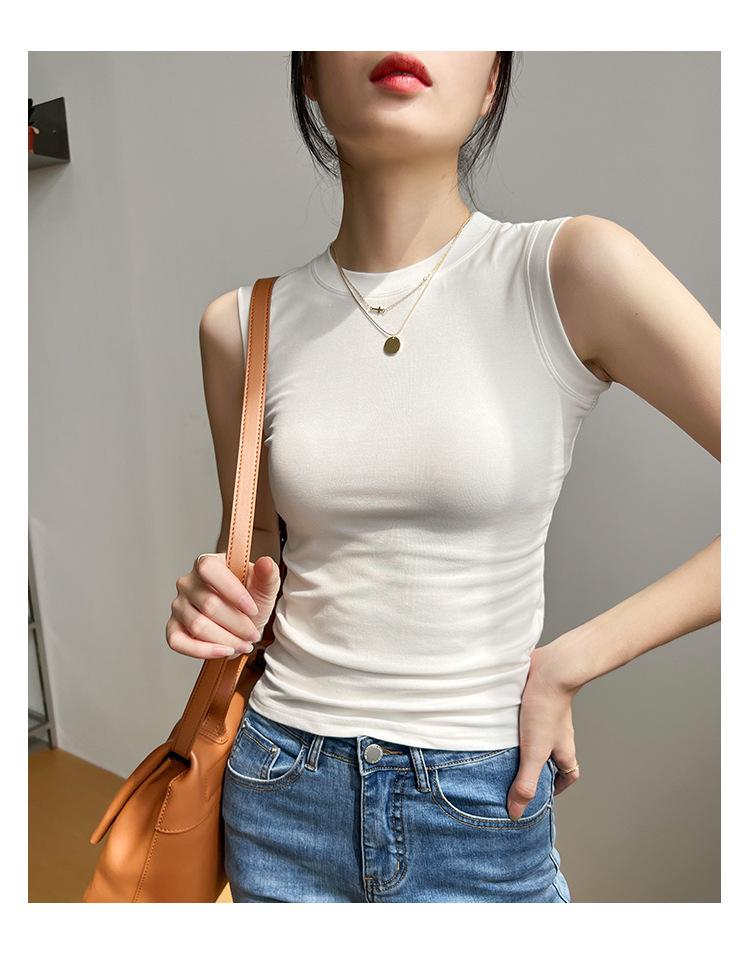Playera sin mangas de cobertura interior de fondo alto para senos laterales y antiexposición para mujer 2025 verano nuevo estilo chaleco cuello redondo top ajustado de fondo