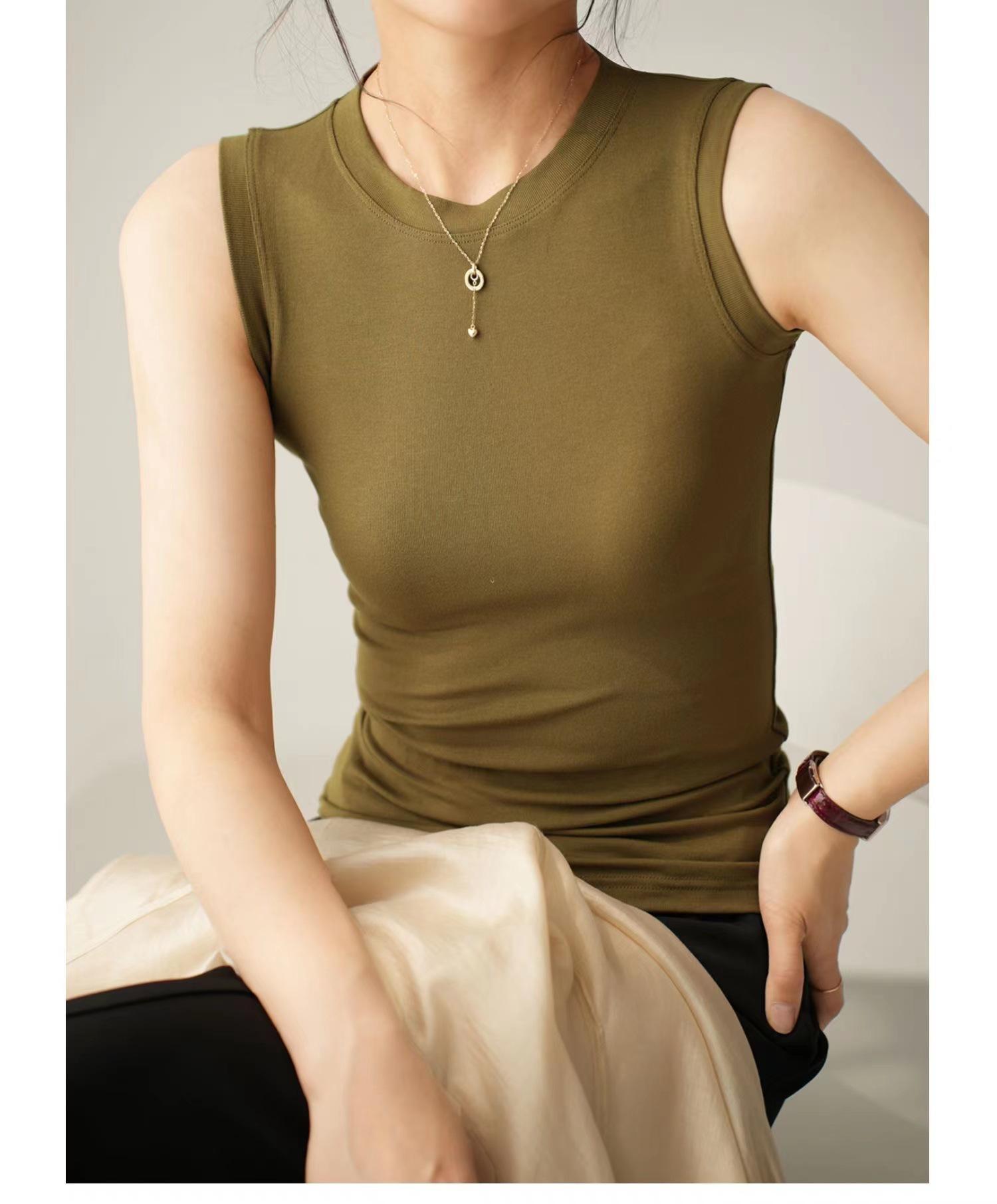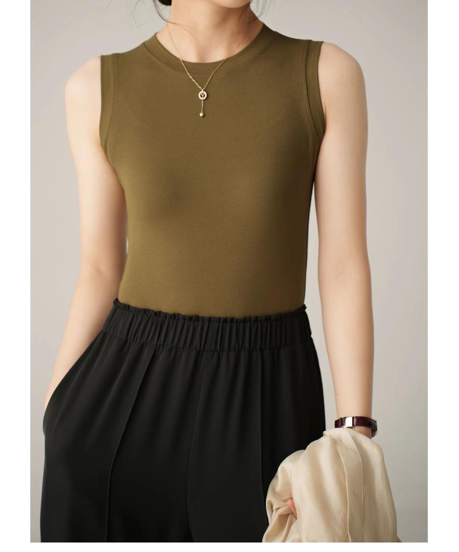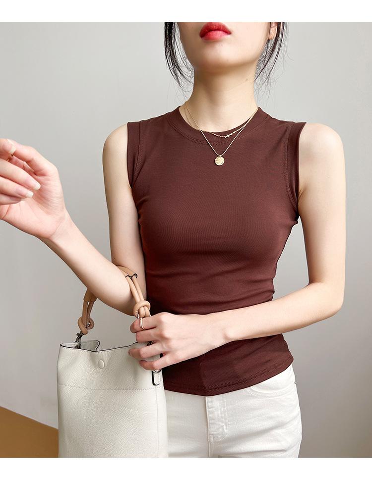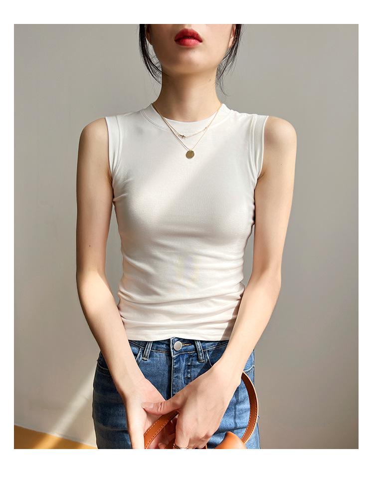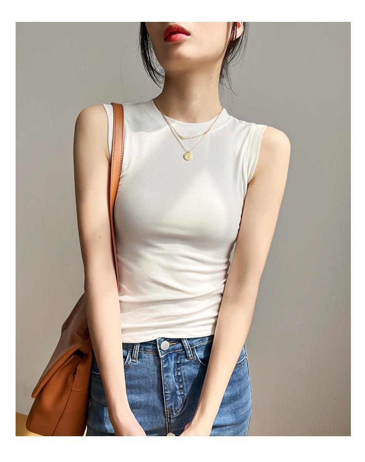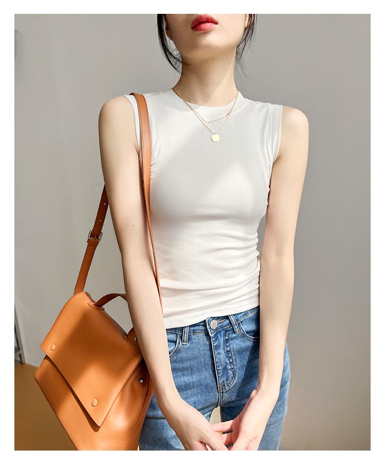 Playera sin mangas de cobertura interior de fondo alto para senos laterales y antiexposición para mujer 2025 verano nuevo estilo chaleco cuello redondo top ajustado de fondo