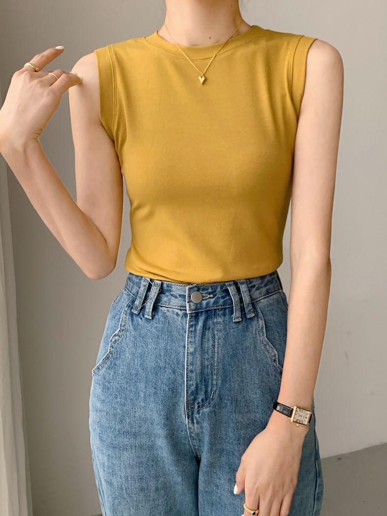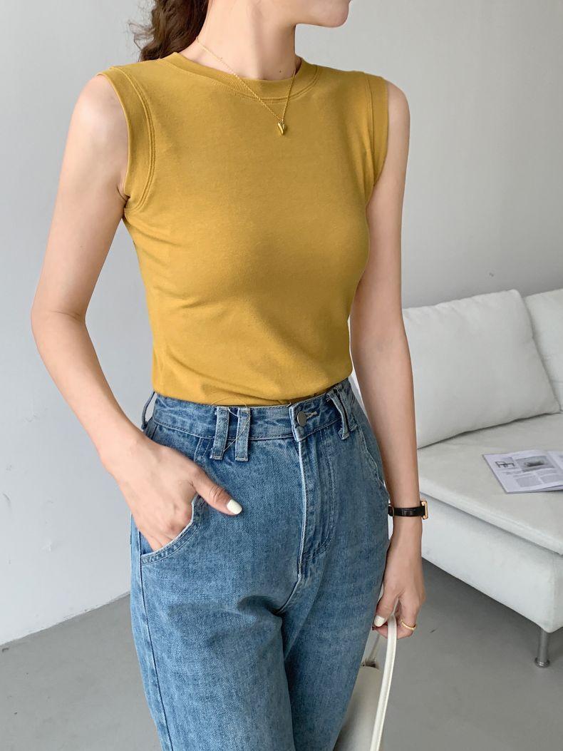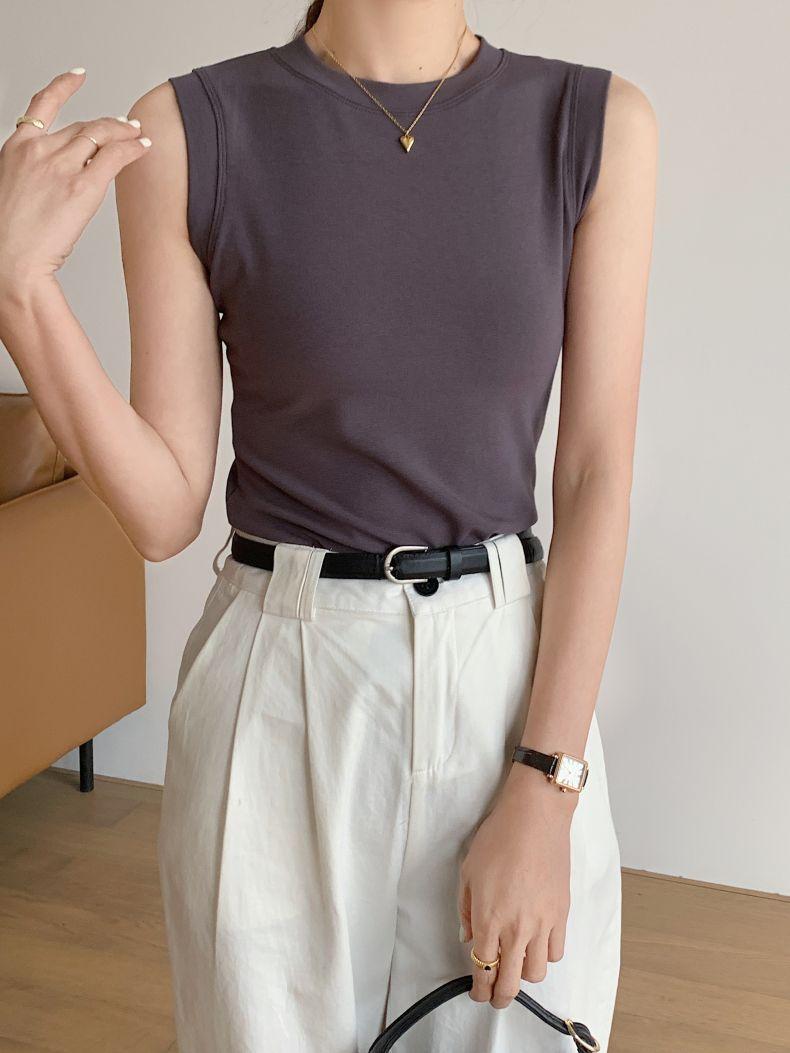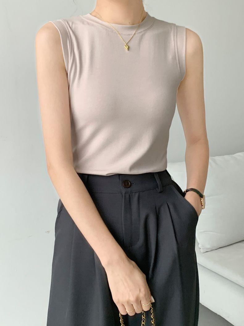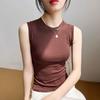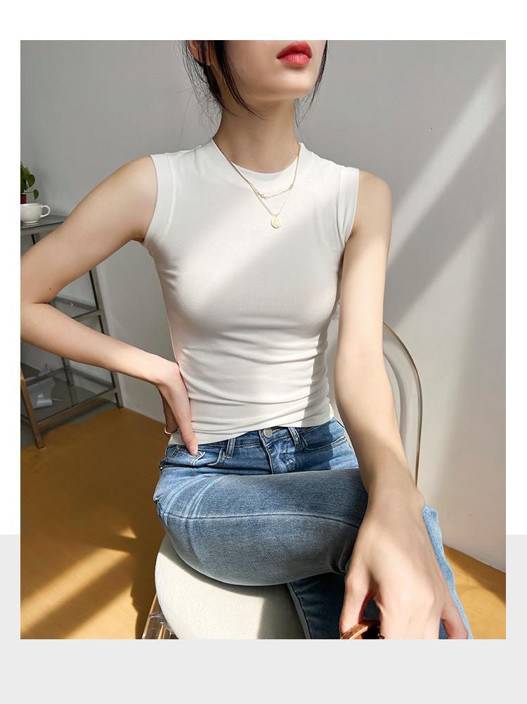 Playera sin mangas de cobertura interior de fondo alto para senos laterales y antiexposición para mujer 2025 verano nuevo estilo chaleco cuello redondo top ajustado de fondo