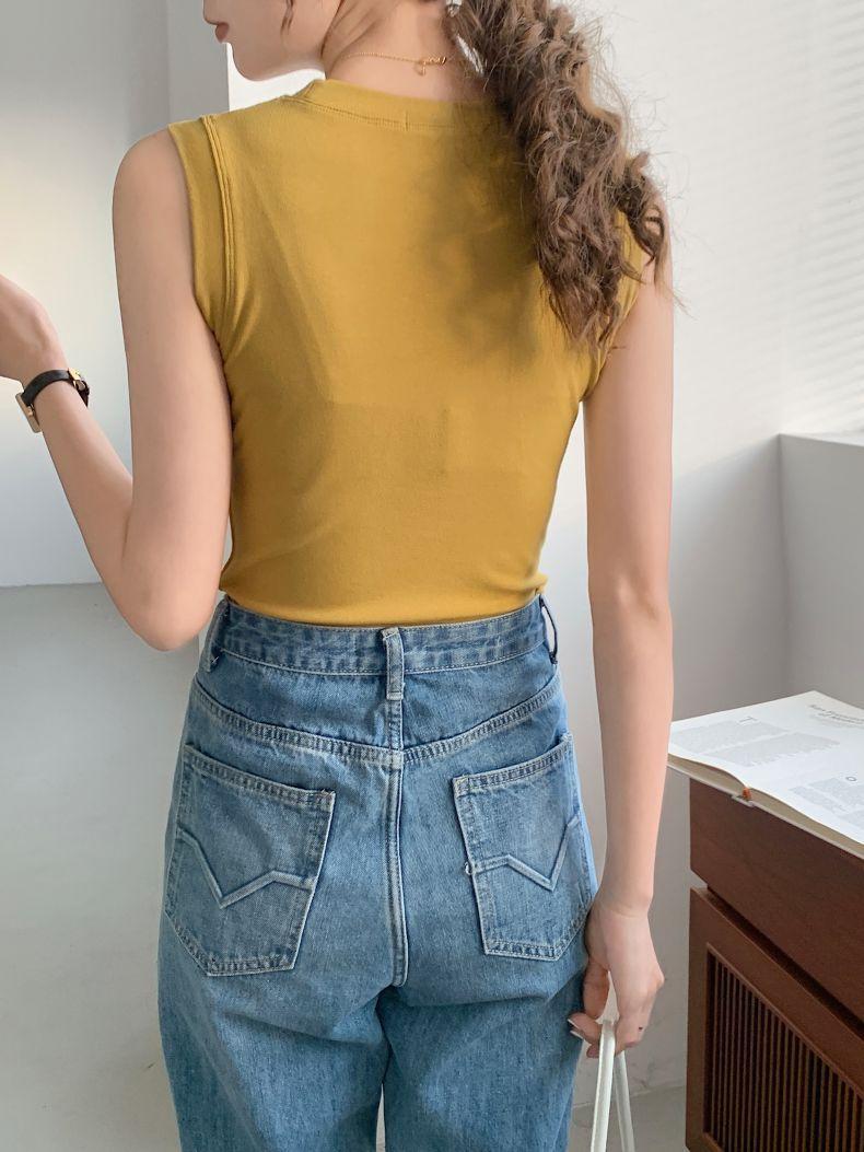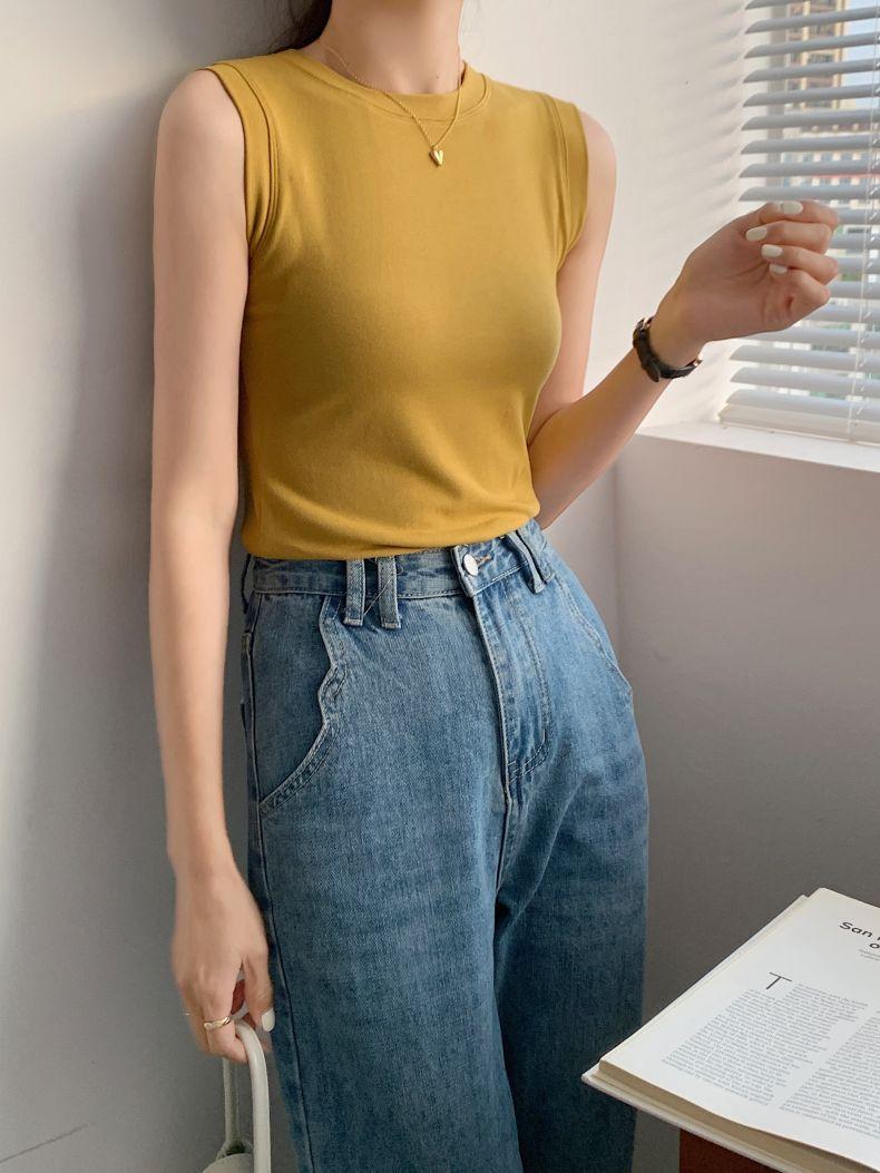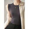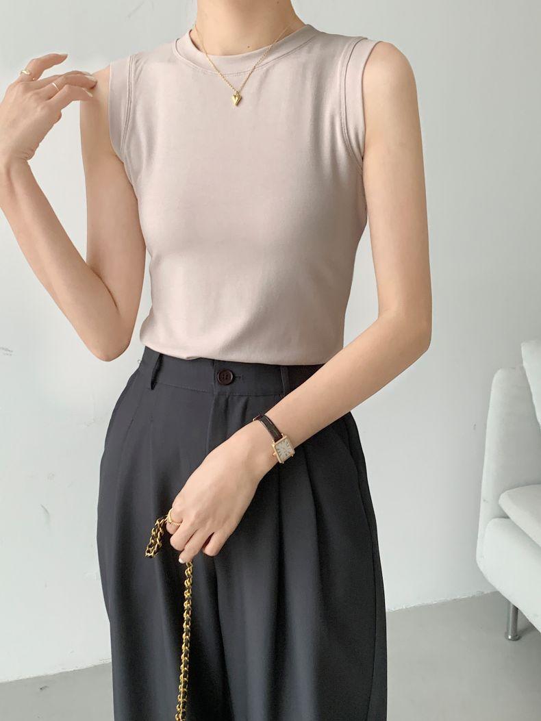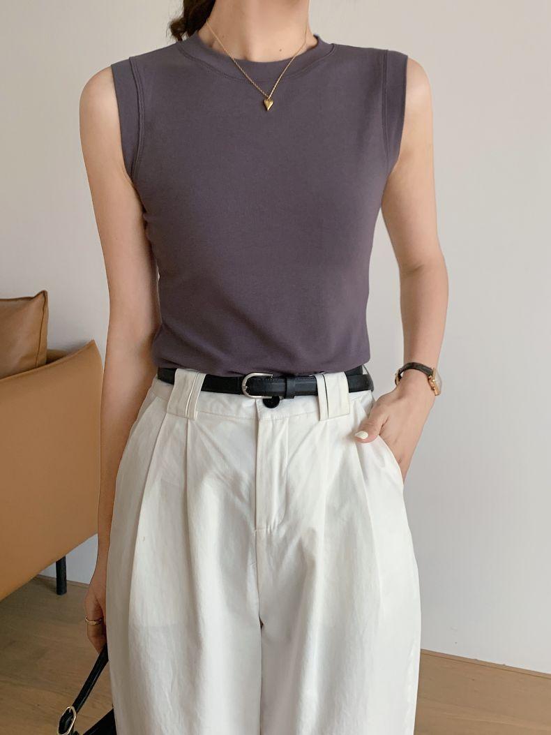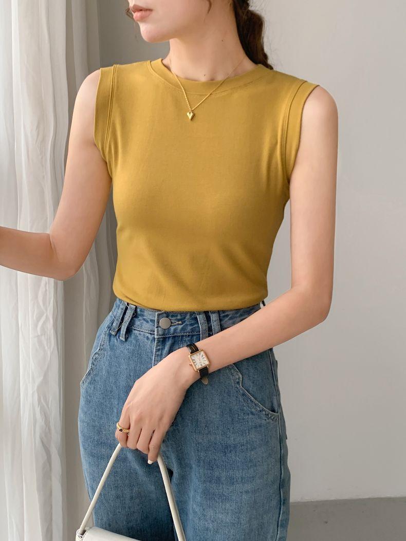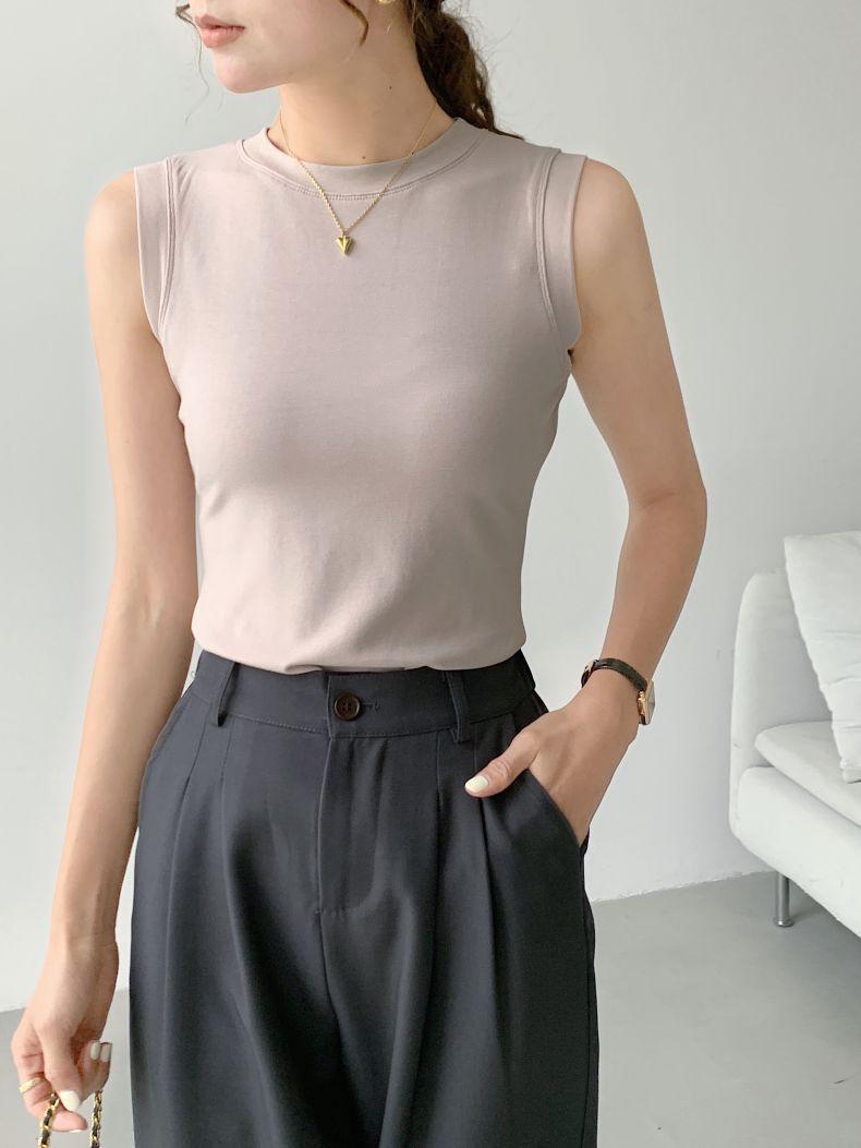 Playera sin mangas de cobertura interior de fondo alto para senos laterales y antiexposición para mujer 2025 verano nuevo estilo chaleco cuello redondo top ajustado de fondo