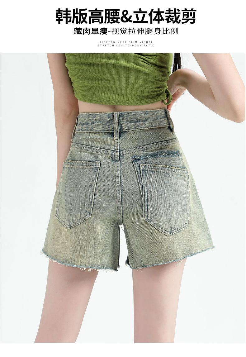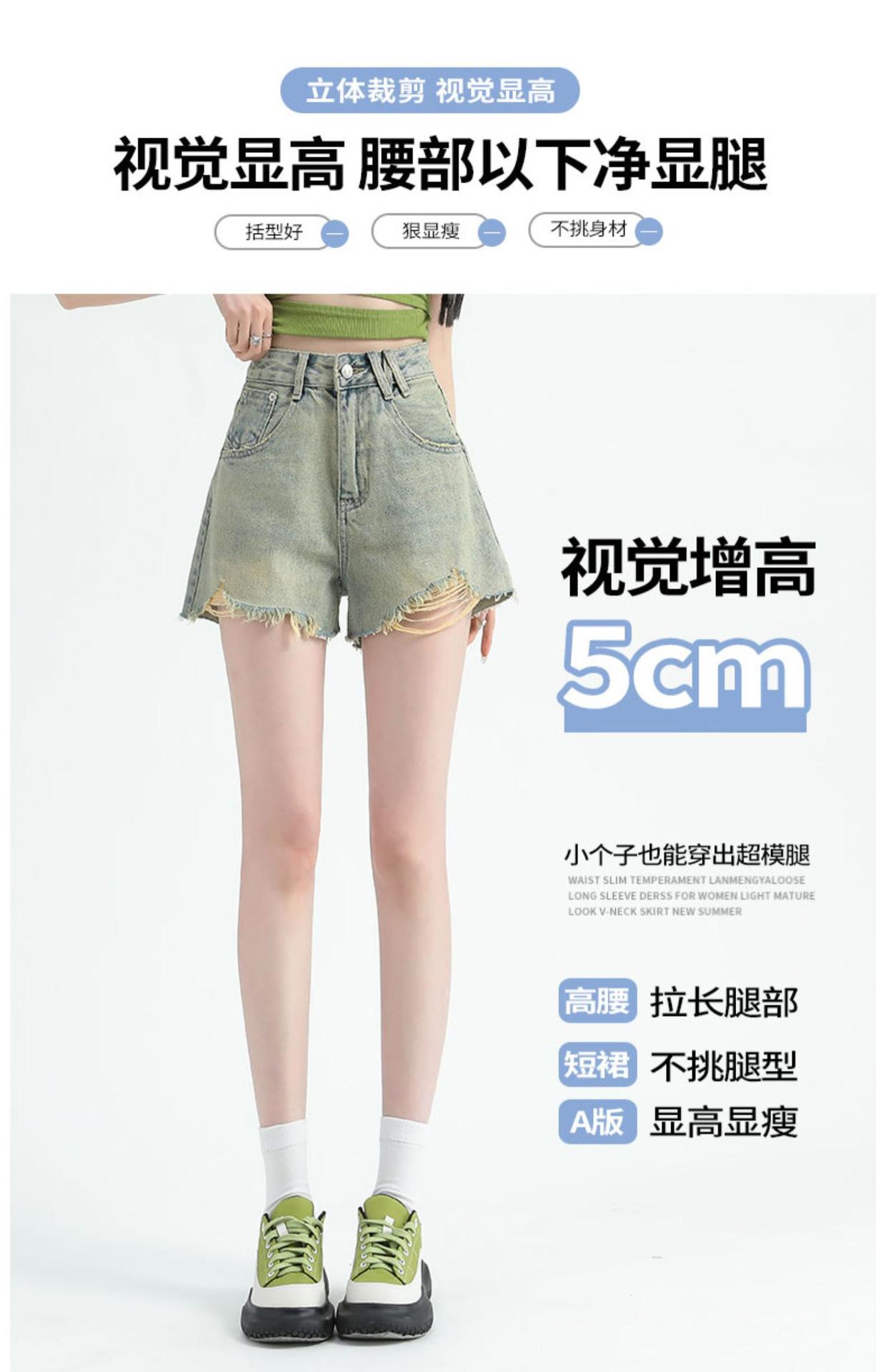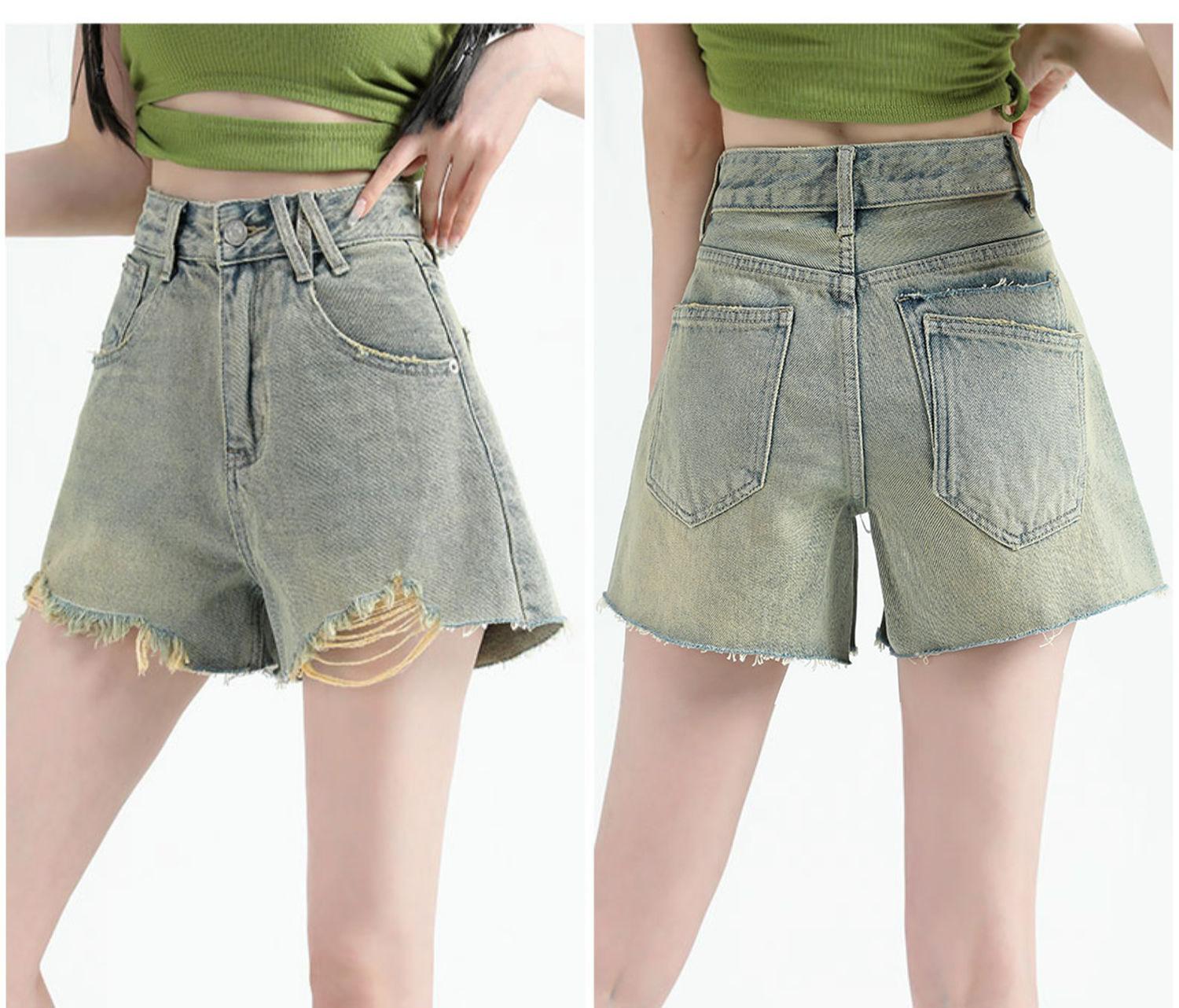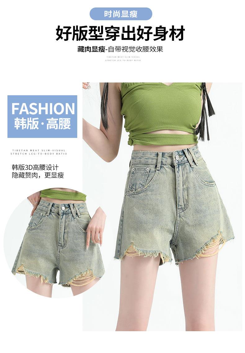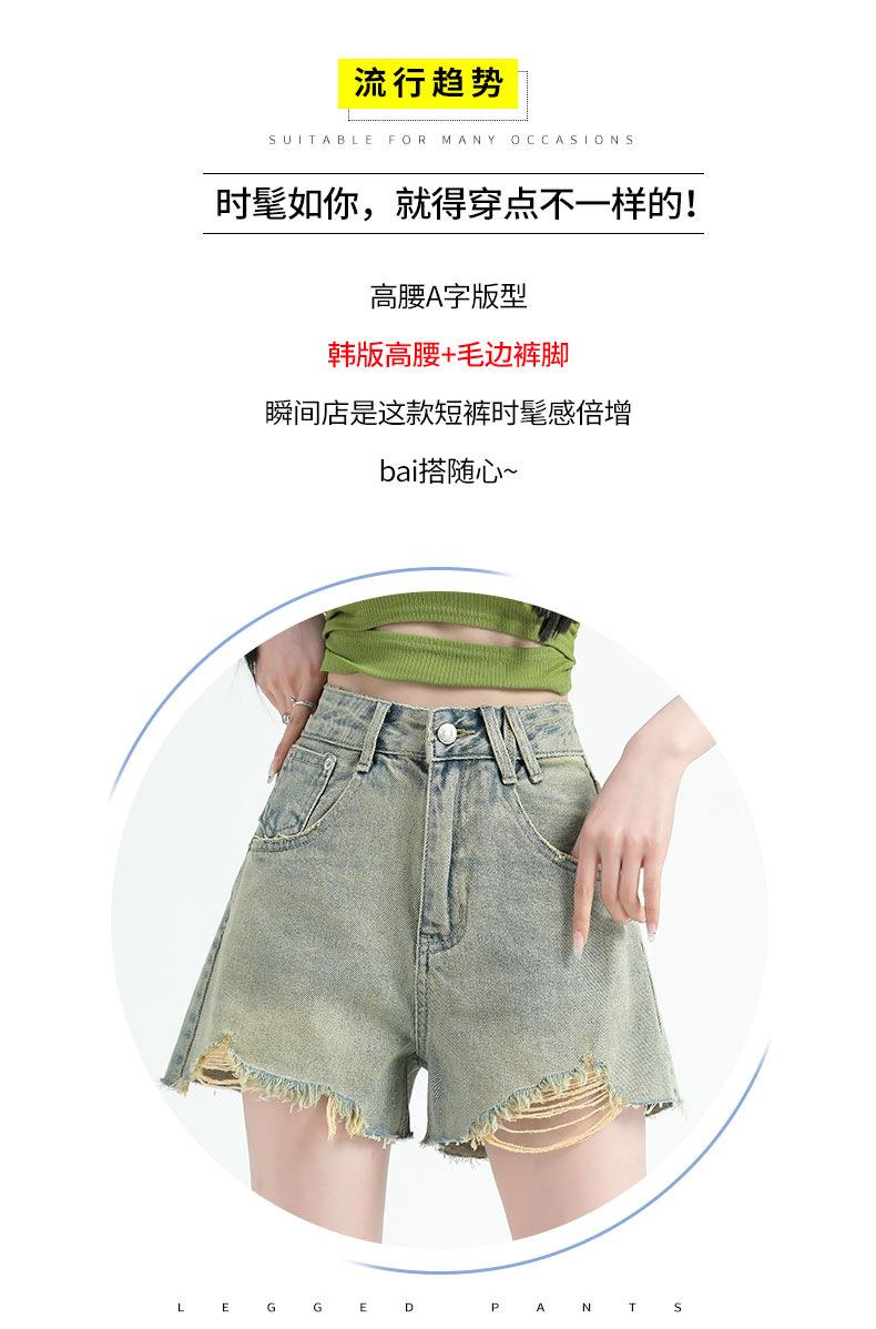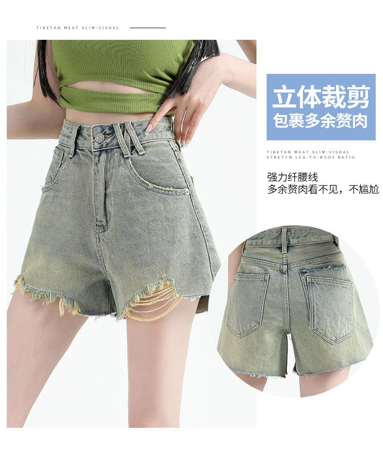 Pantalones cortos vaqueros nostálgicos de cintura alta estilo coreano para mujer, de verano 2023, holgados, ajustados, con pequeños agujeros retro