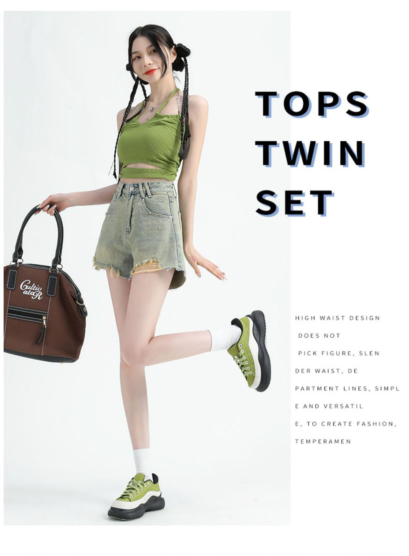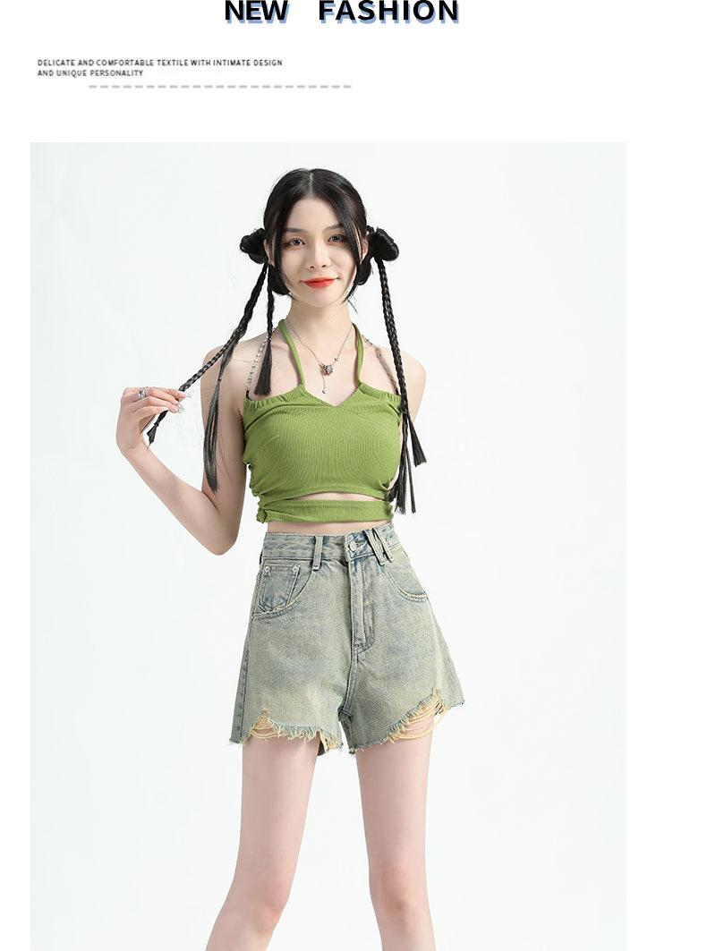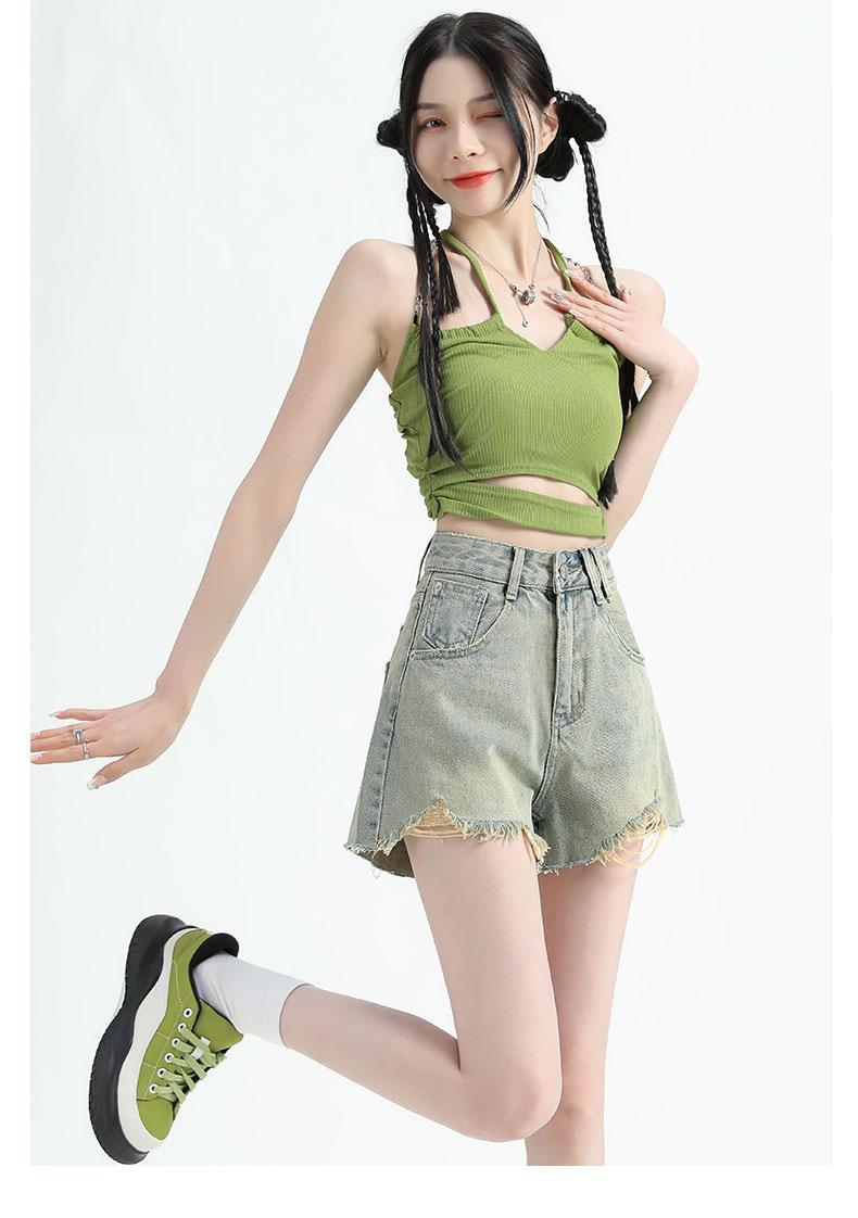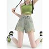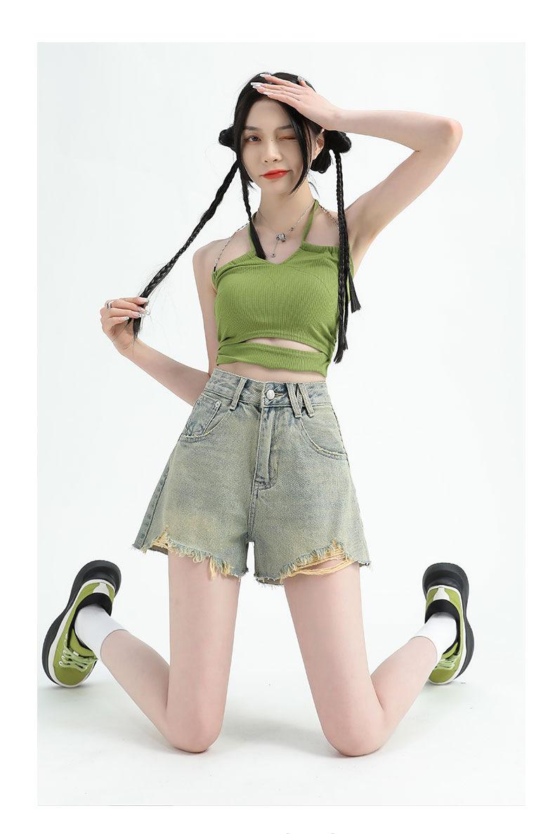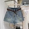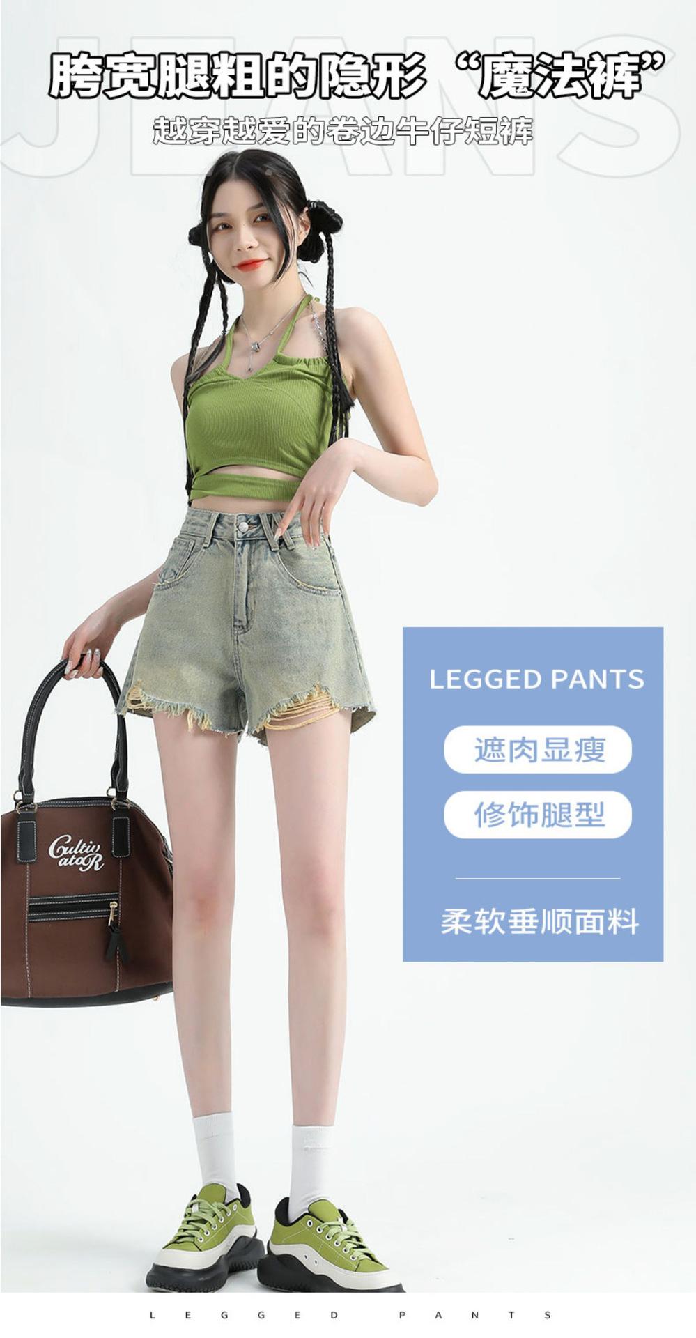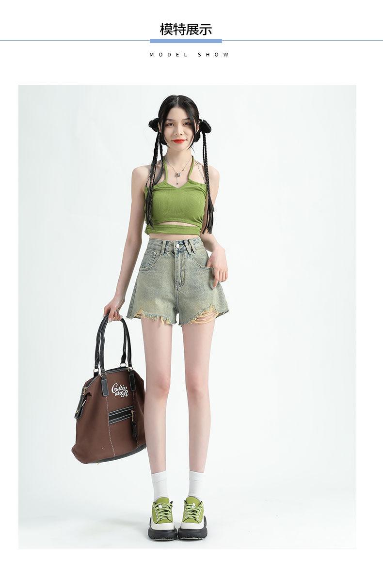 Pantalones cortos vaqueros nostálgicos de cintura alta estilo coreano para mujer, de verano 2023, holgados, ajustados, con pequeños agujeros retro