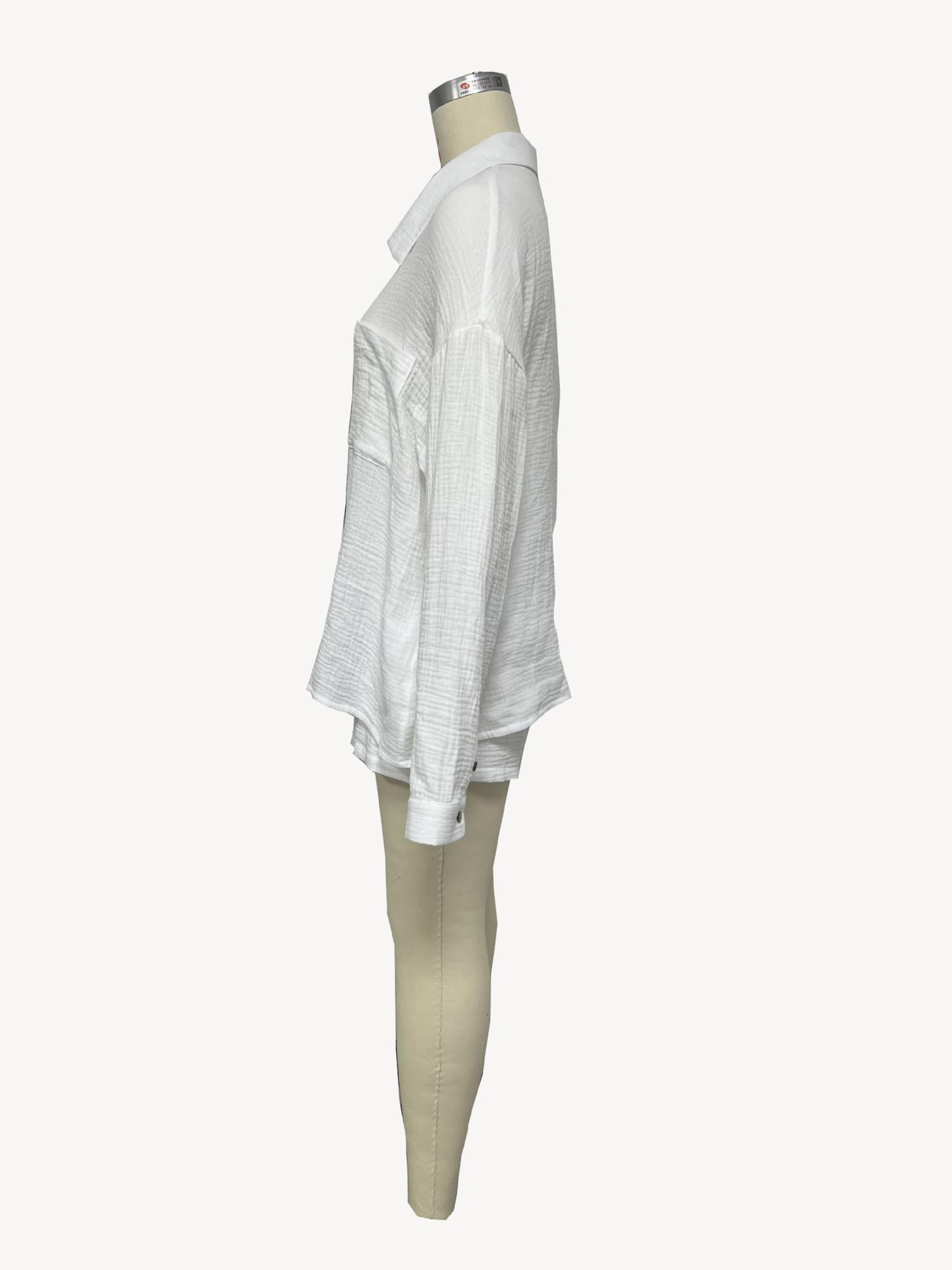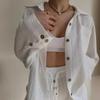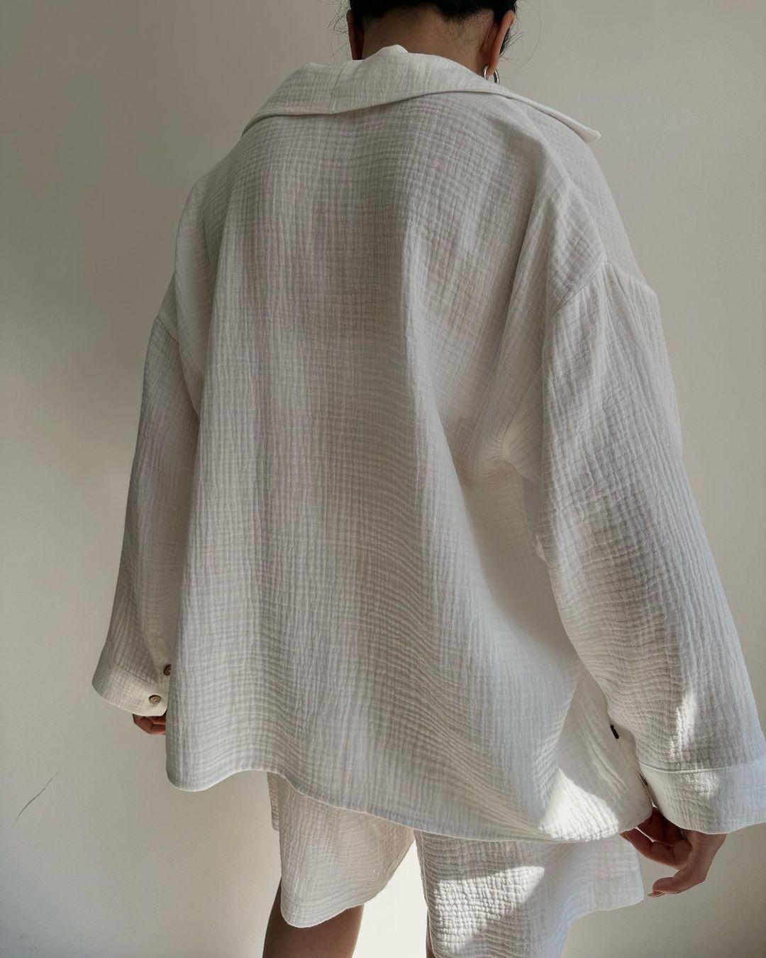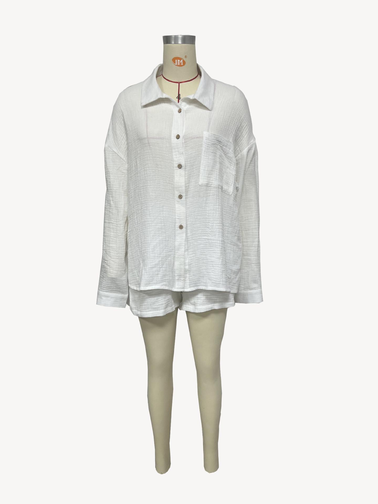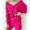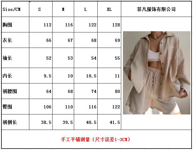 Conjunto de dos piezas informal de moda para mujer europea y americana de Amazon, camisa de manga larga con solapa arrugada y pantalones cortos de cintura alta con cordón ajustable, 2023