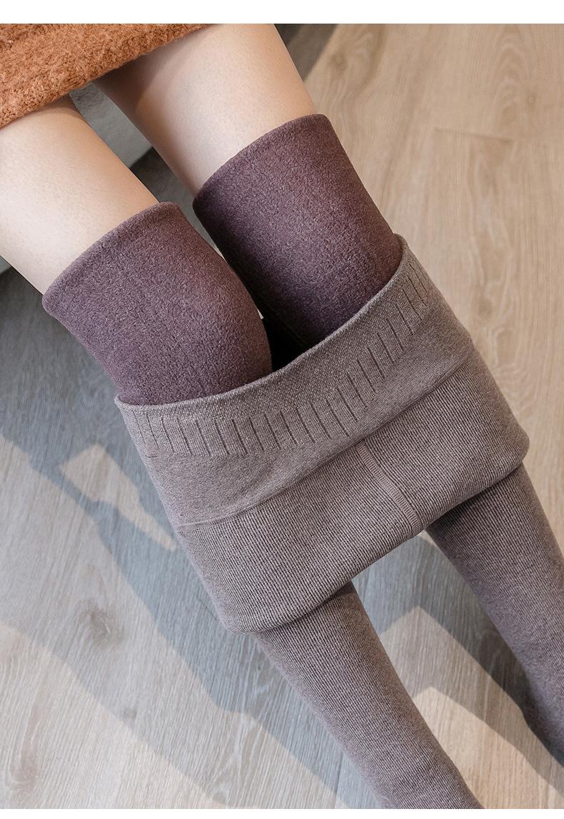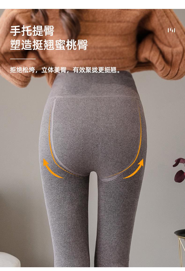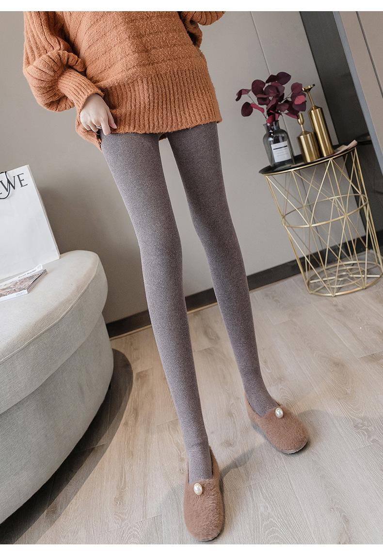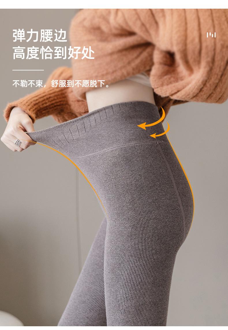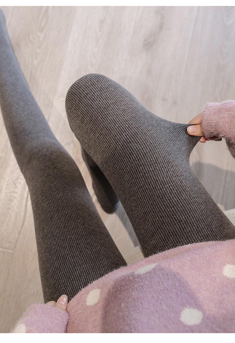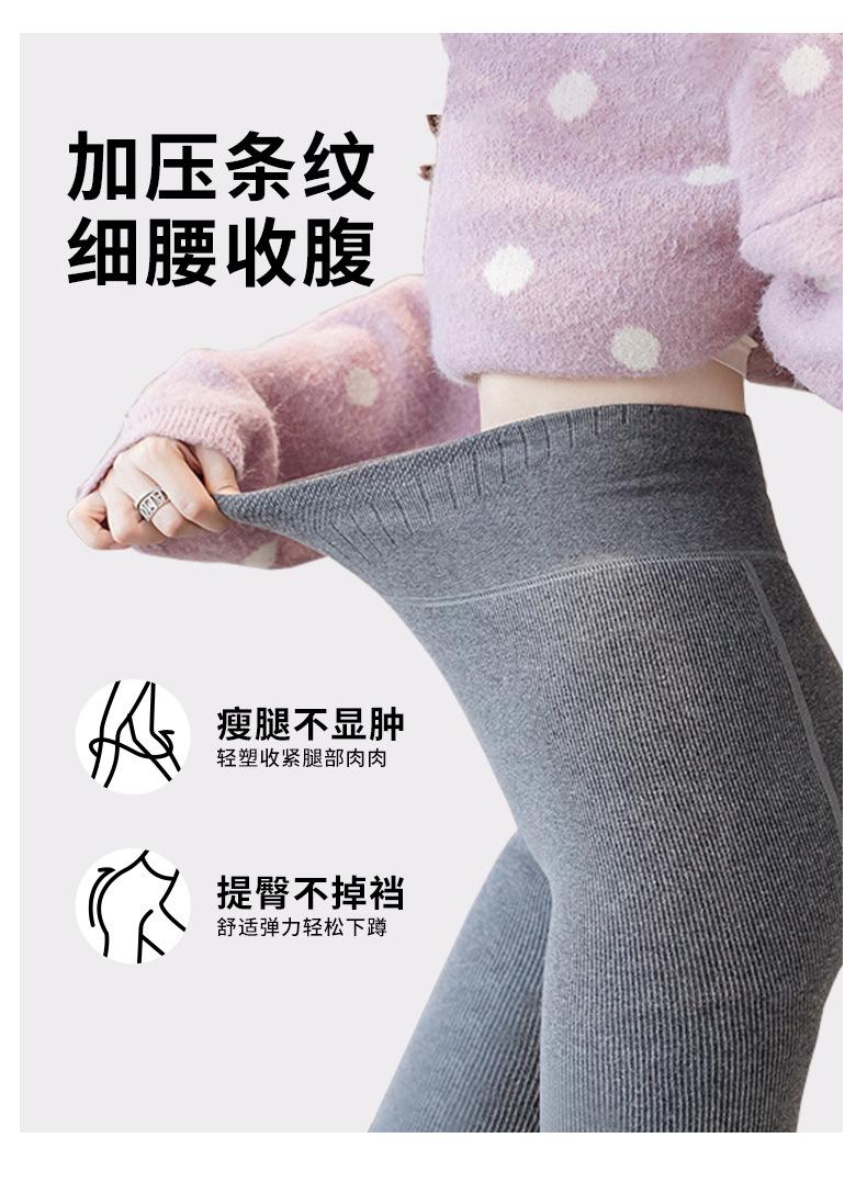 Pantalones de una pieza a rayas verticales para mujer, leggings acanalados de cintura alta con forro polar de imitación cachemira, mallas térmicas de algodón cálido con alta elasticidad