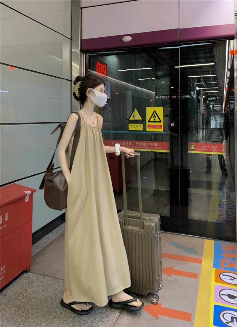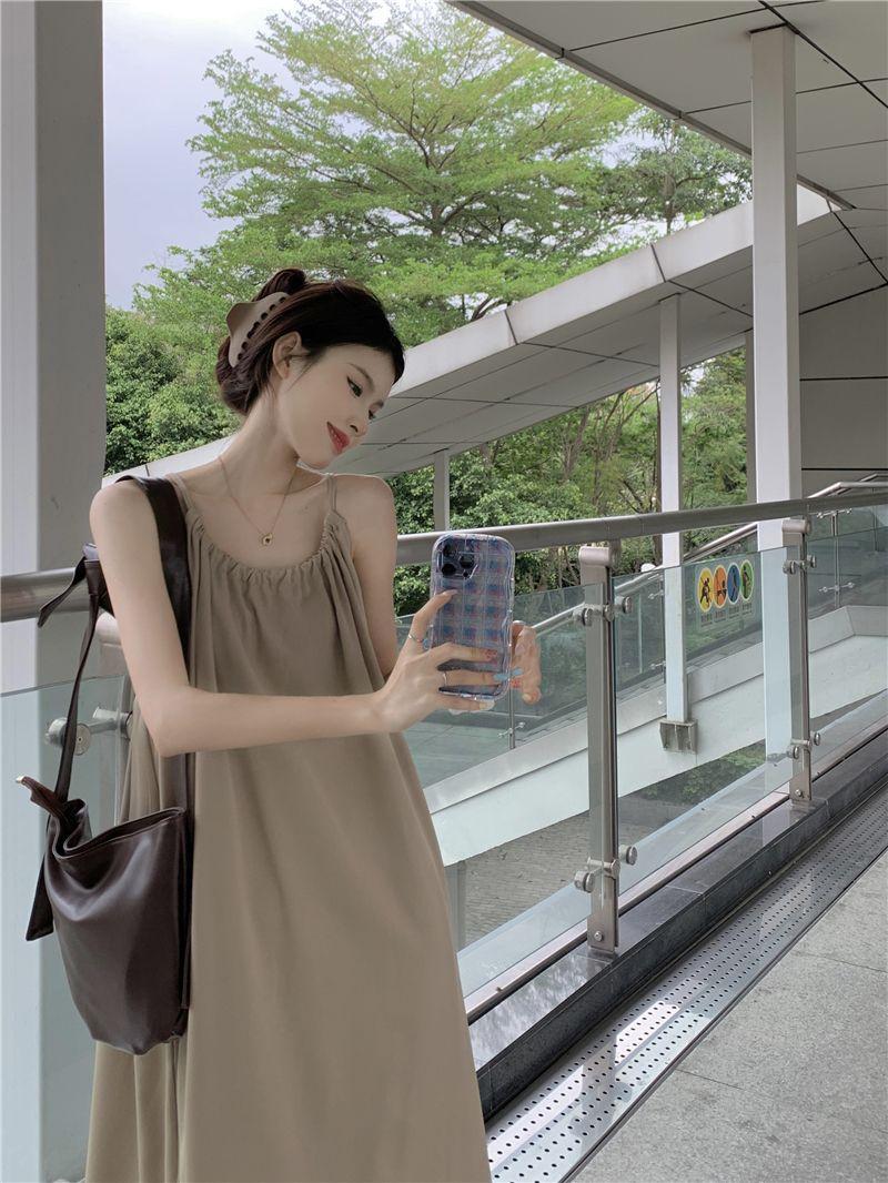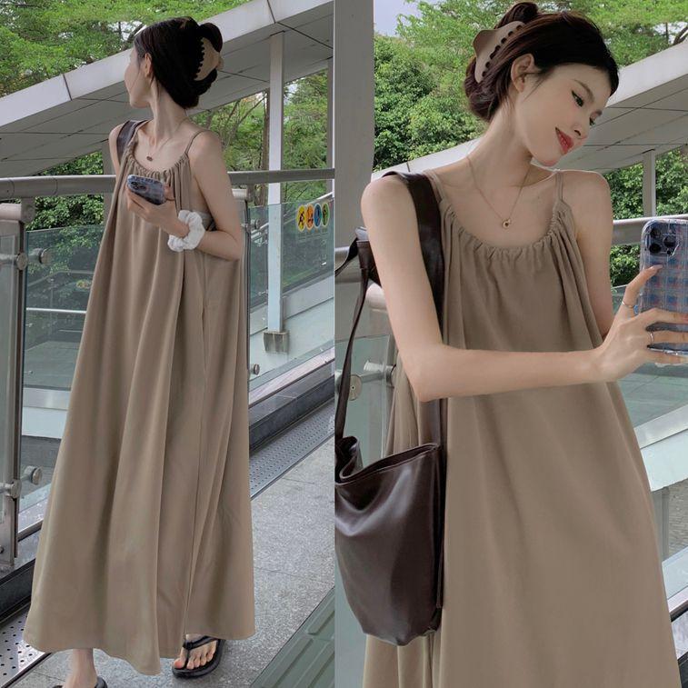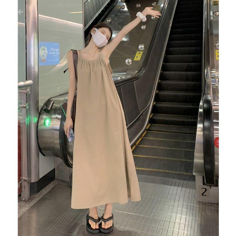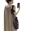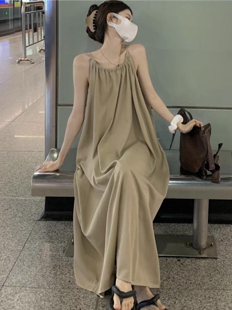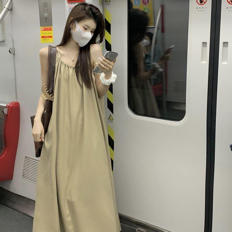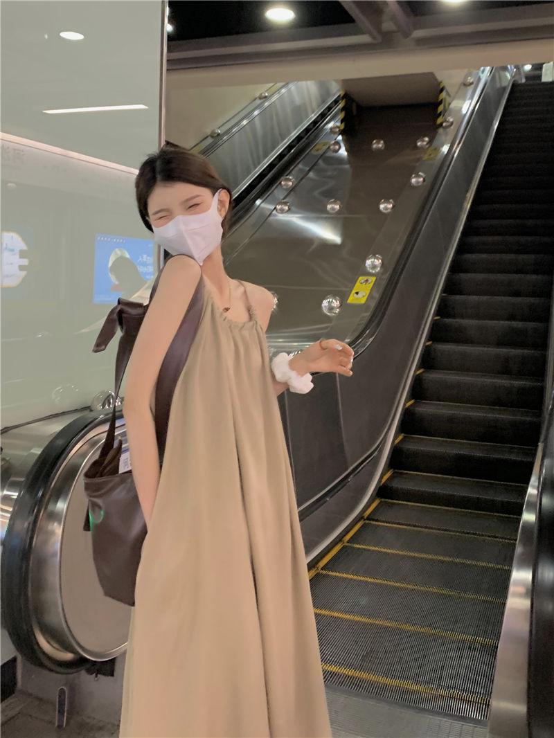 Vestido Largo Francés Tea Break Verano 2024 Estilo Cuello Halter Cintura Suelta Adelgazante Vestido Base Moda Nuevo