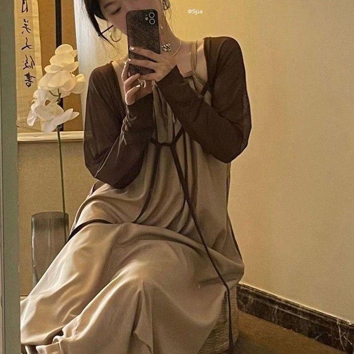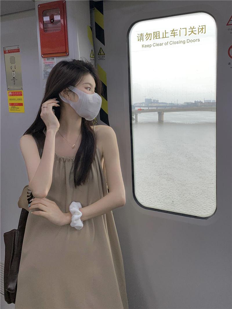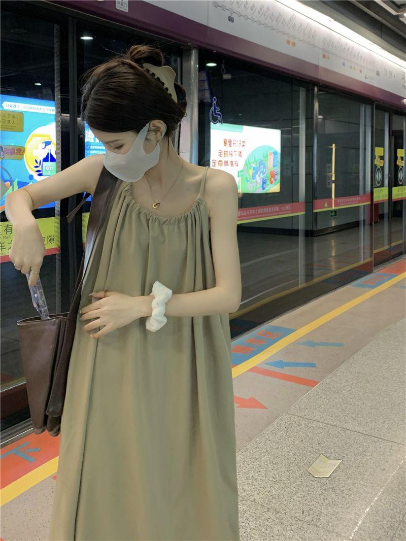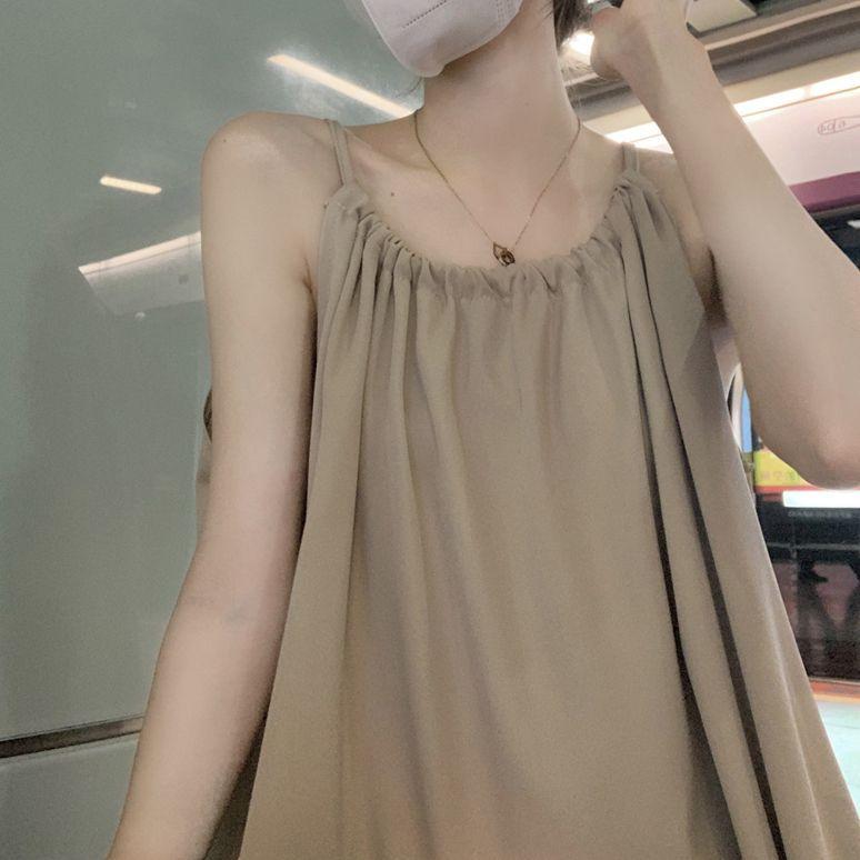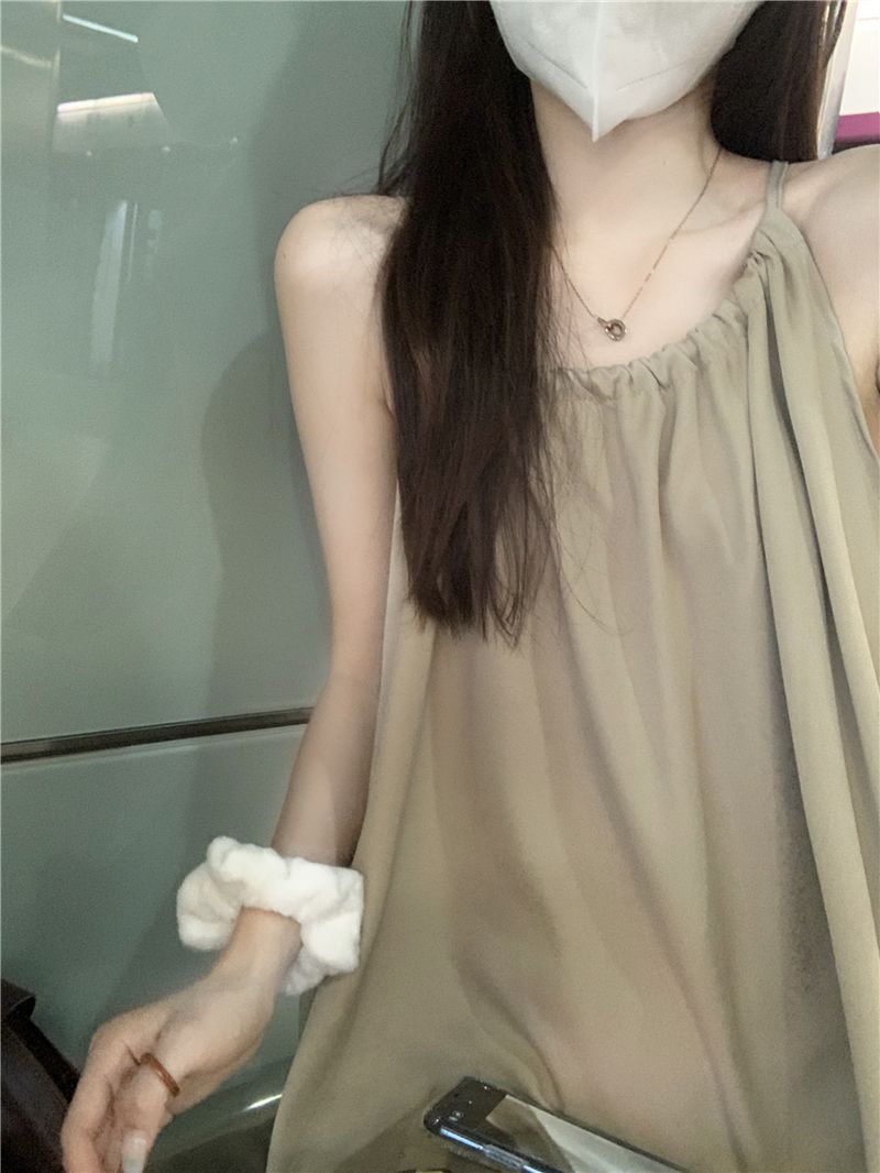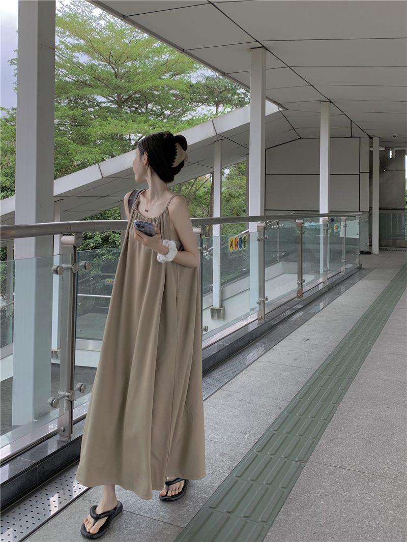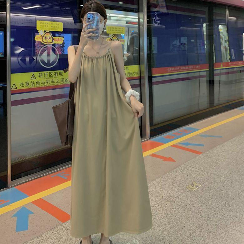 Vestido Largo Francés Tea Break Verano 2024 Estilo Cuello Halter Cintura Suelta Adelgazante Vestido Base Moda Nuevo