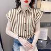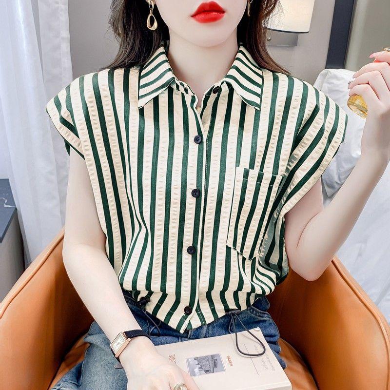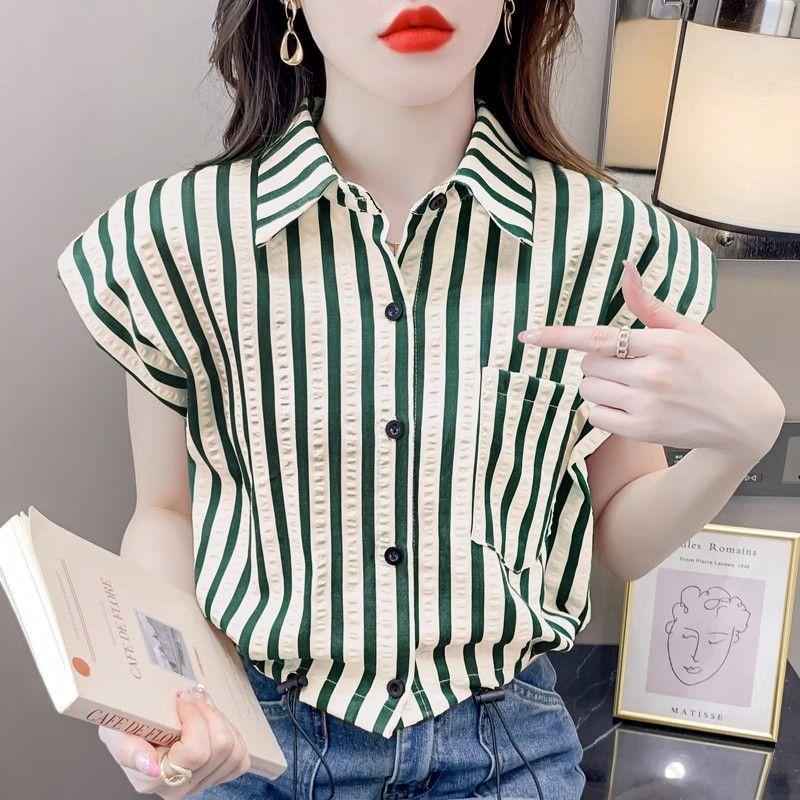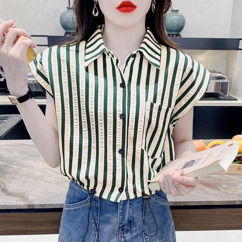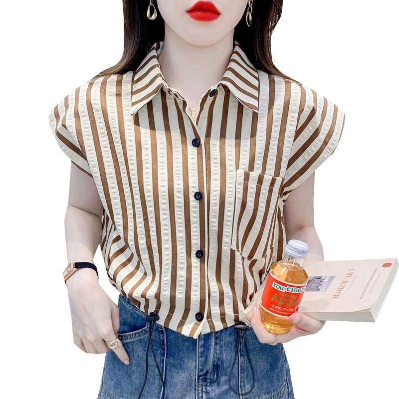 Verano 2024 Nuevo Diseño casual nicho retro a rayas holgado corto chaleco camisa top para mujer