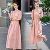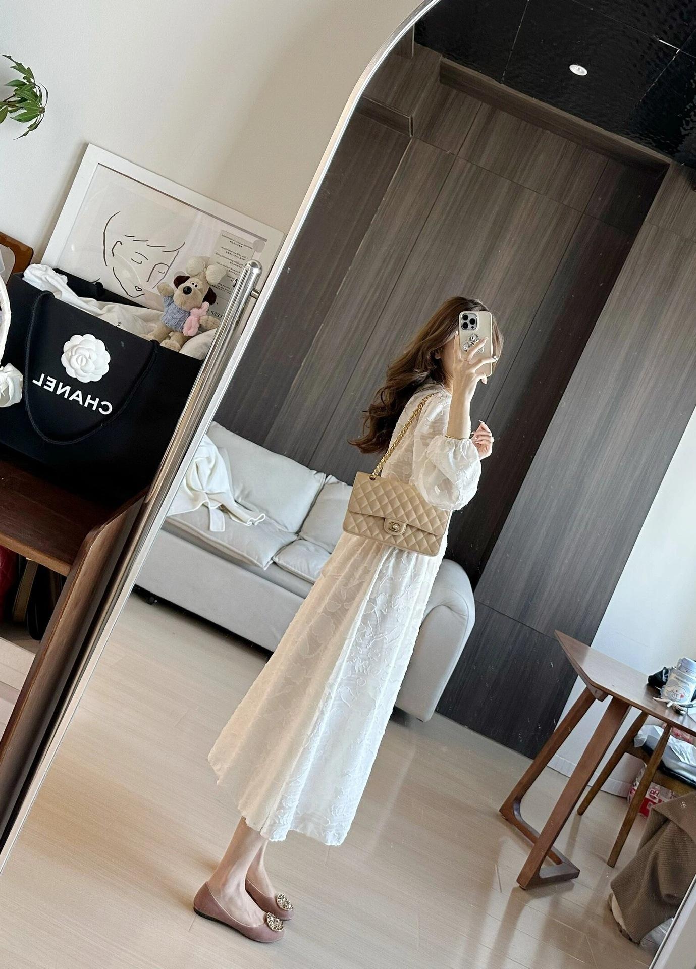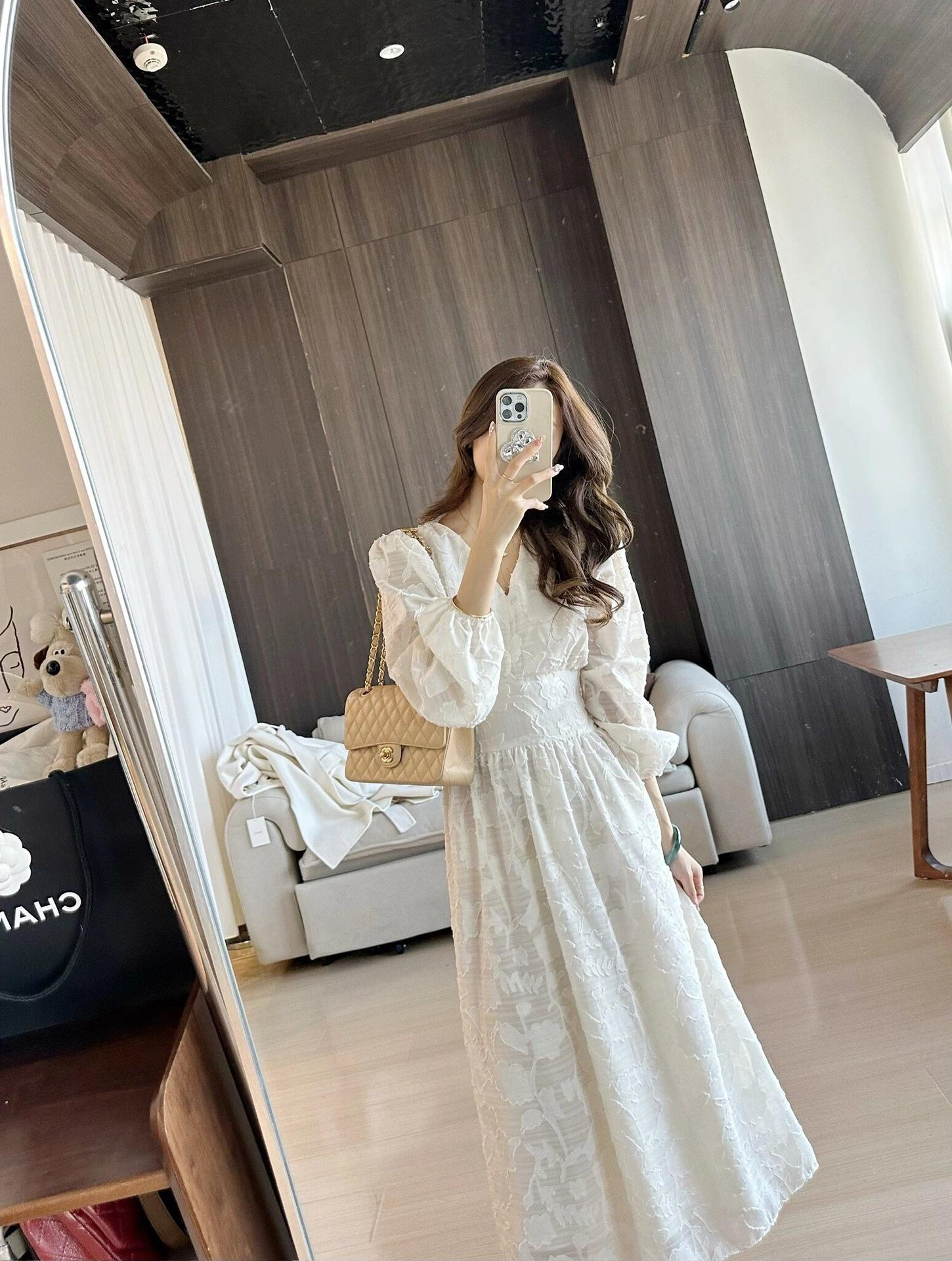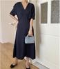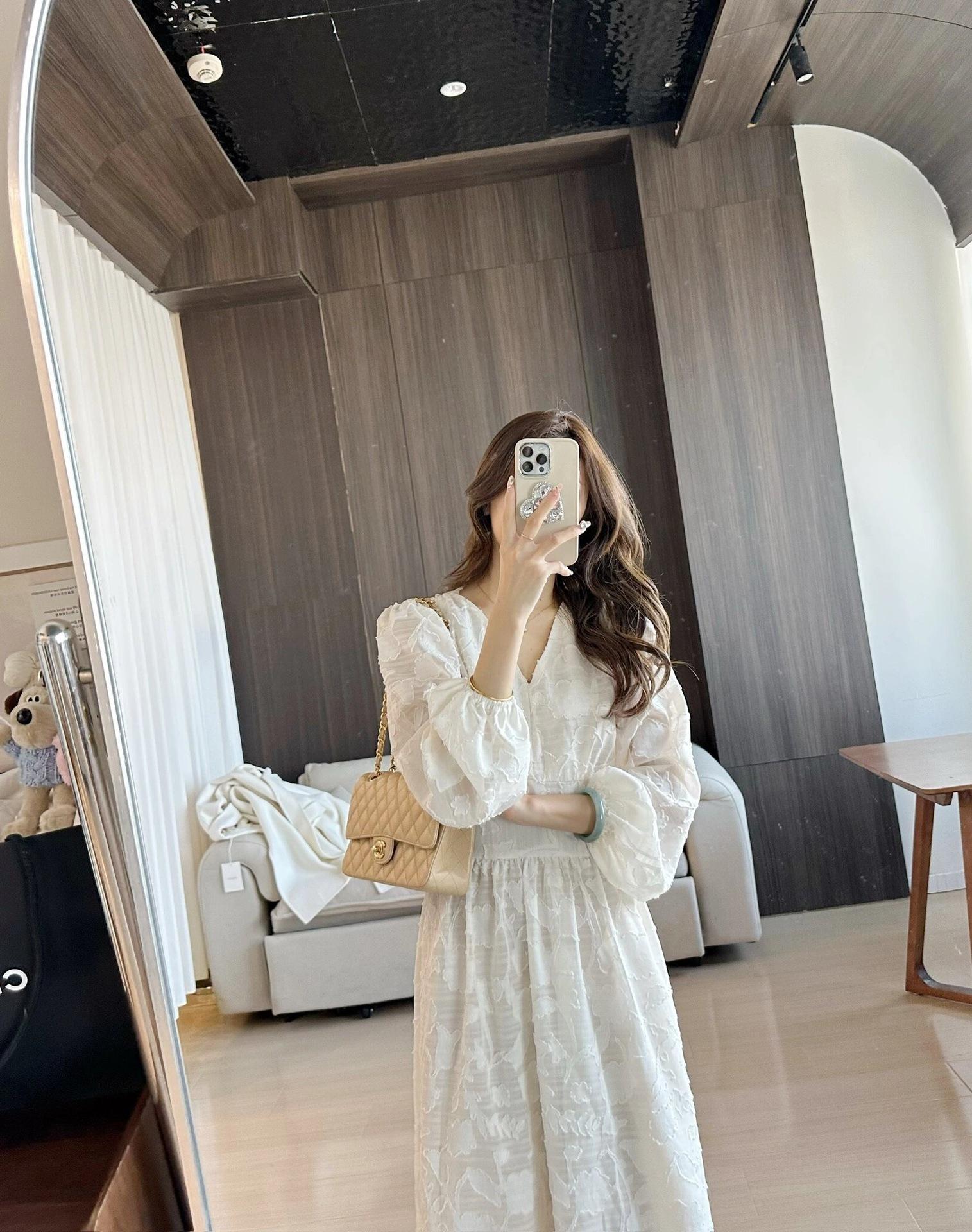 Vestido Coreano Elegante de Primavera Temprana 2025 para Mujer con Cuello en V, Jacquard, Cinturón de Lazo en la Cintura, Manga Larga, Largo Medio, Corte A para Mujer
