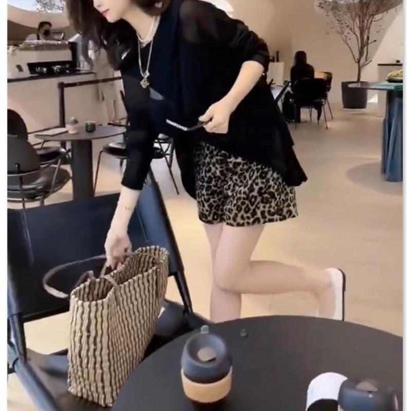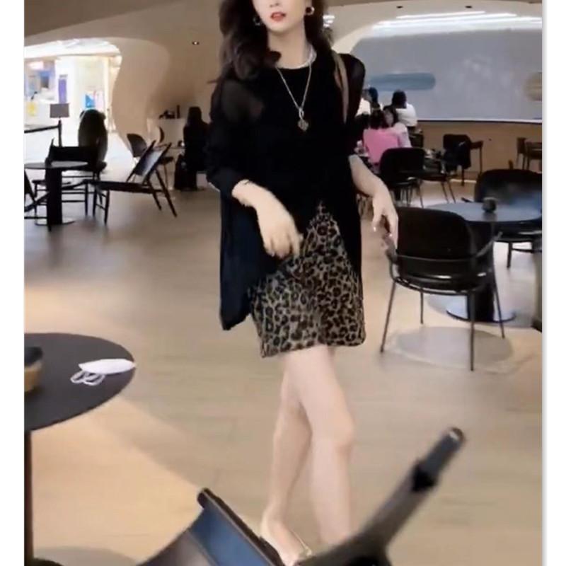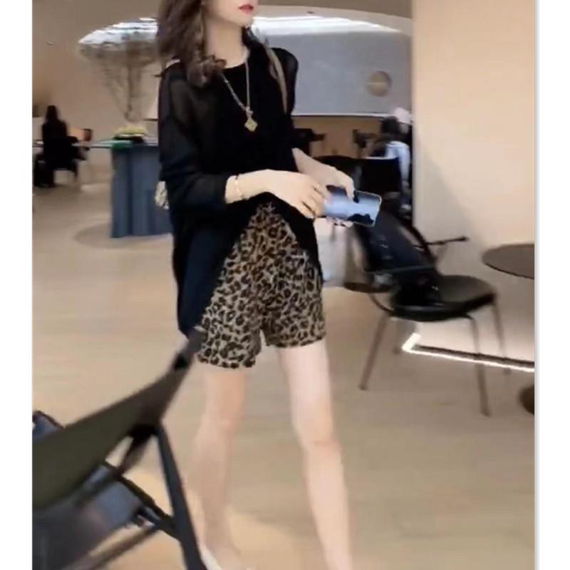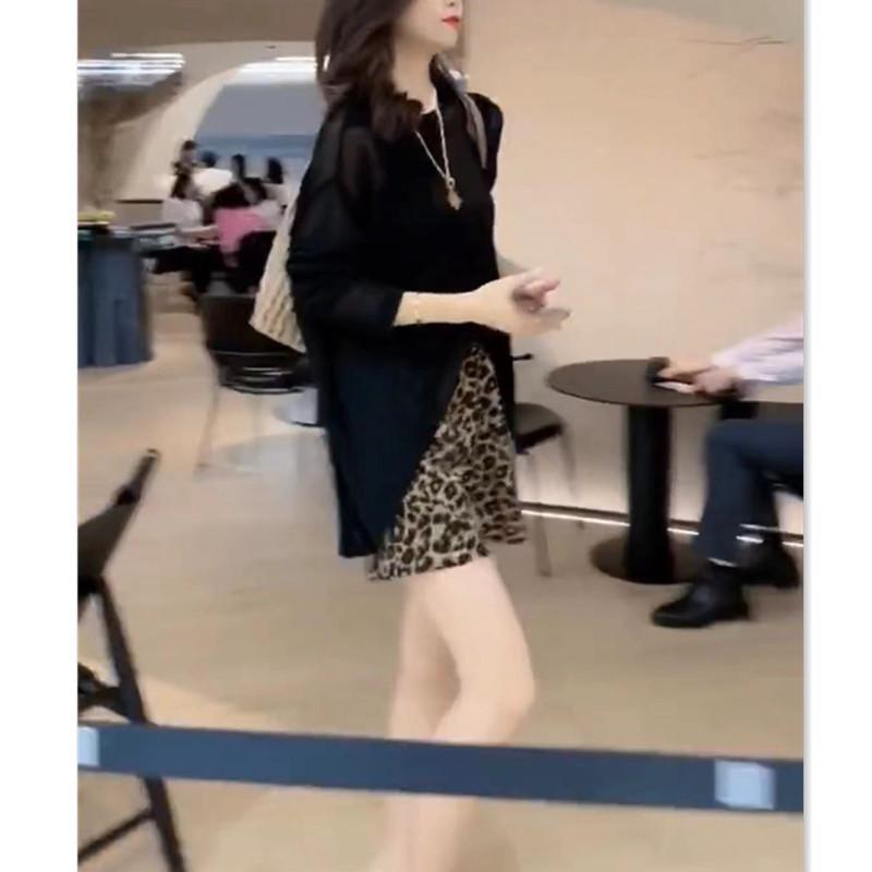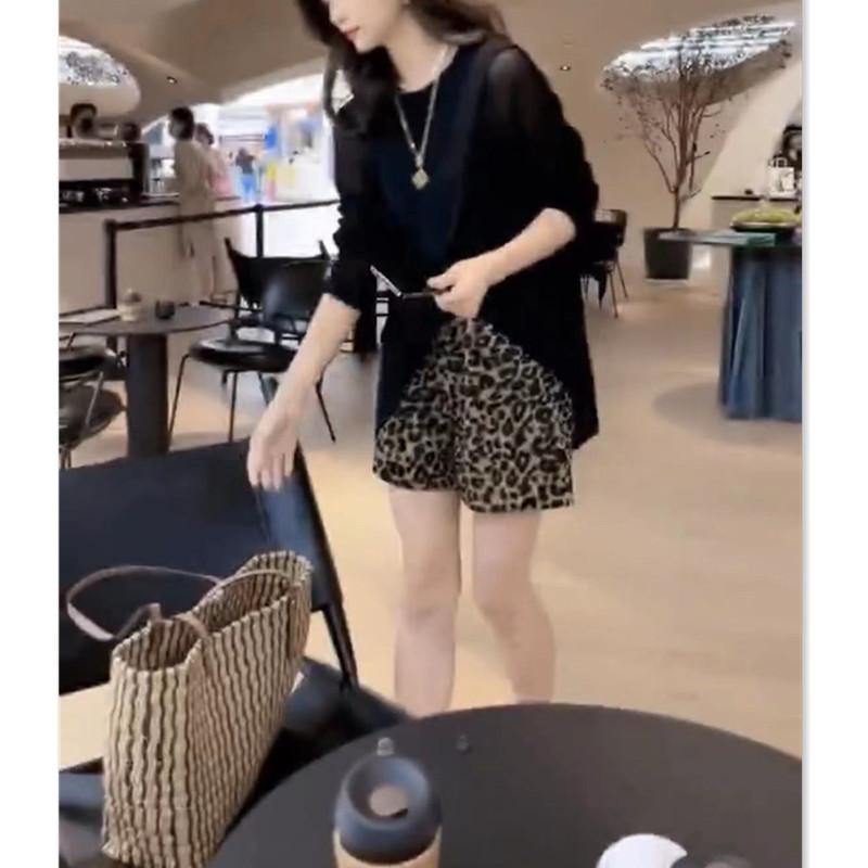 22532 Dai Meiyuan 2025 Verano Nuevo Negro Manga Larga Protección Solar Top Holgado Leopardo Lunares Shorts para Mujer Moderno