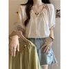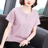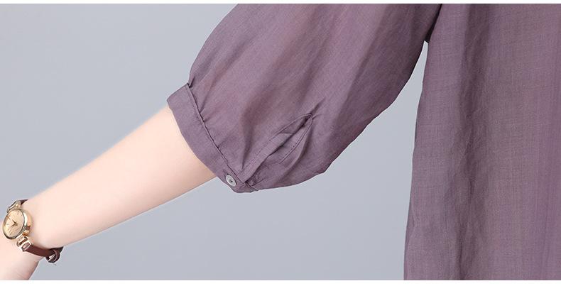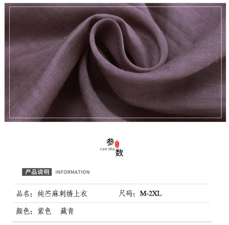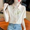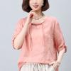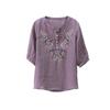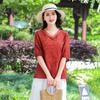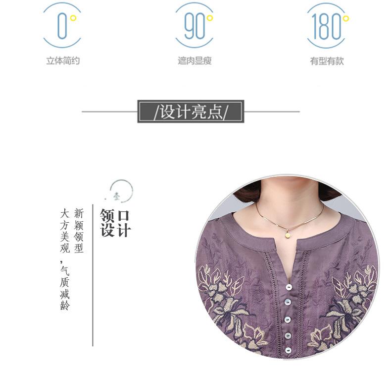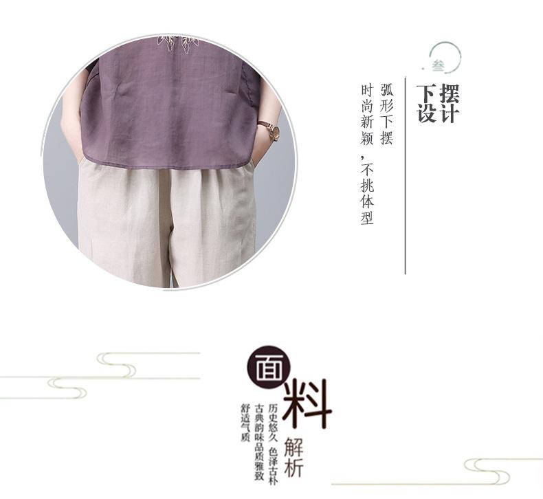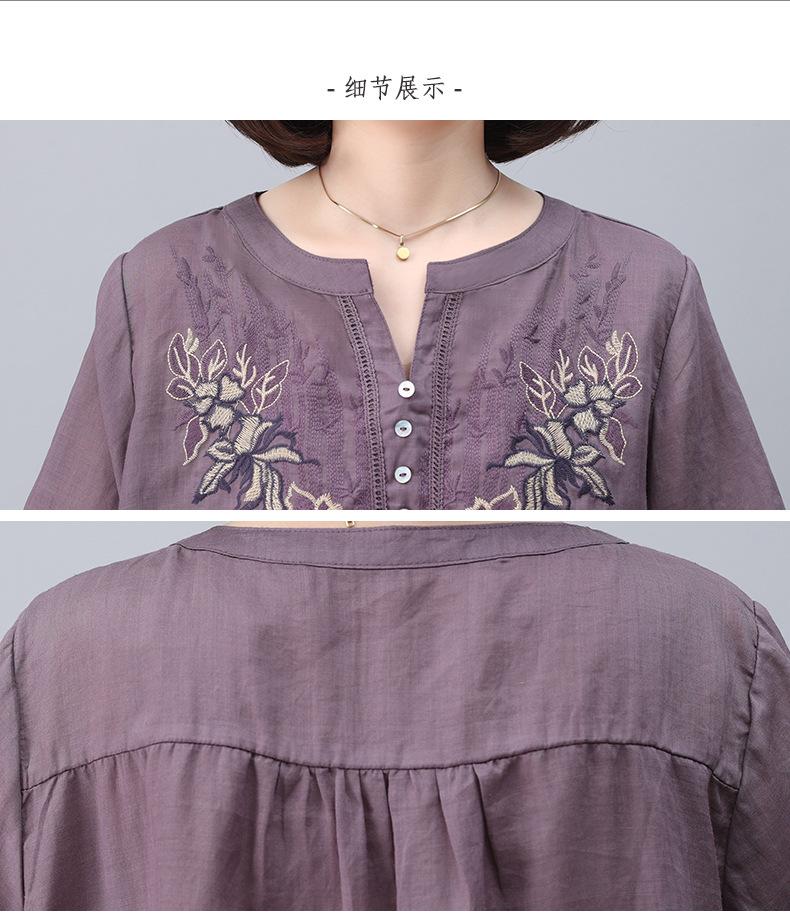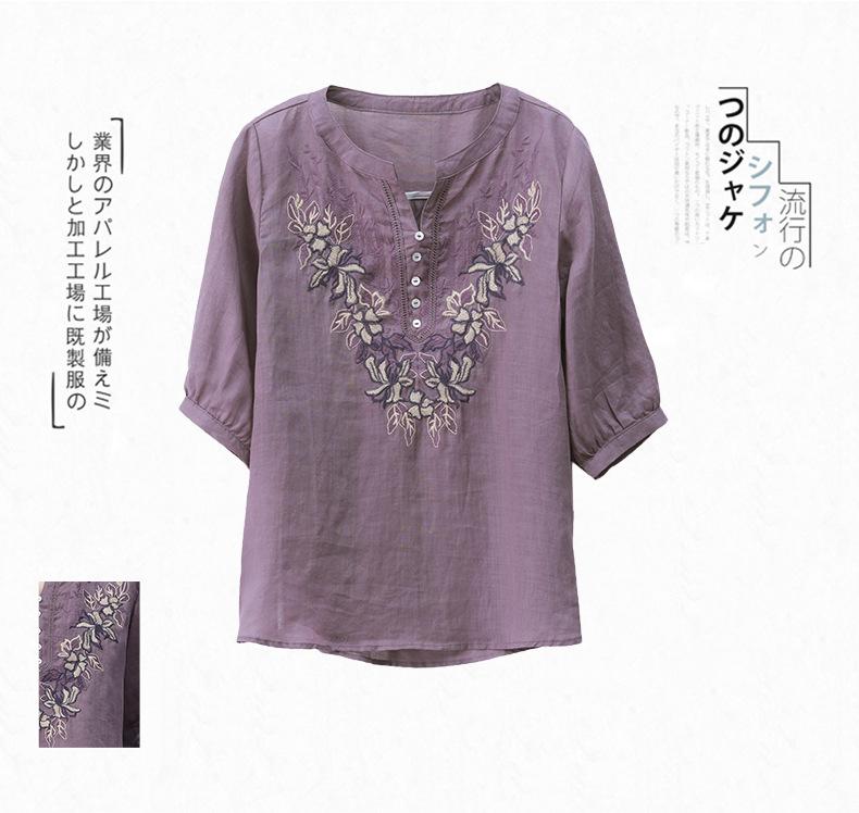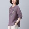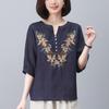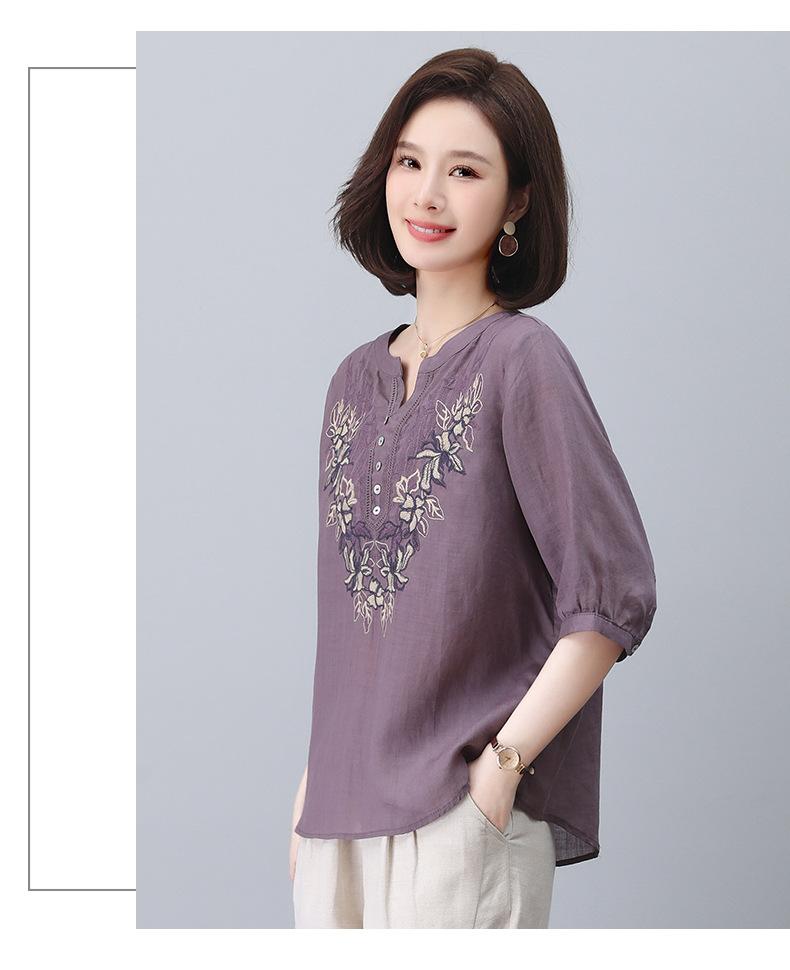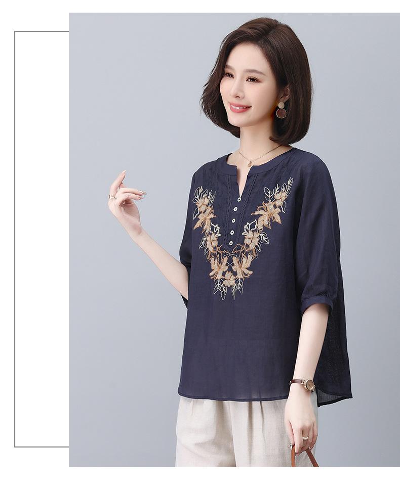 Camisa de Manga Corta para Mujer 2024 Nueva Verano Bordada Pura Ramio Camisa Retro Madre de Mediana Edad Hermosa Camiseta Pequeña Top