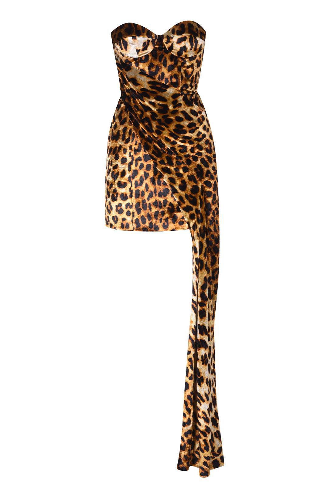 Nuevo vestido transfronterizo de Amazon, estilo europeo y americano, con diseño adelgazante, falda corta, top de tubo sexy salvaje, vestido con estampado de leopardo