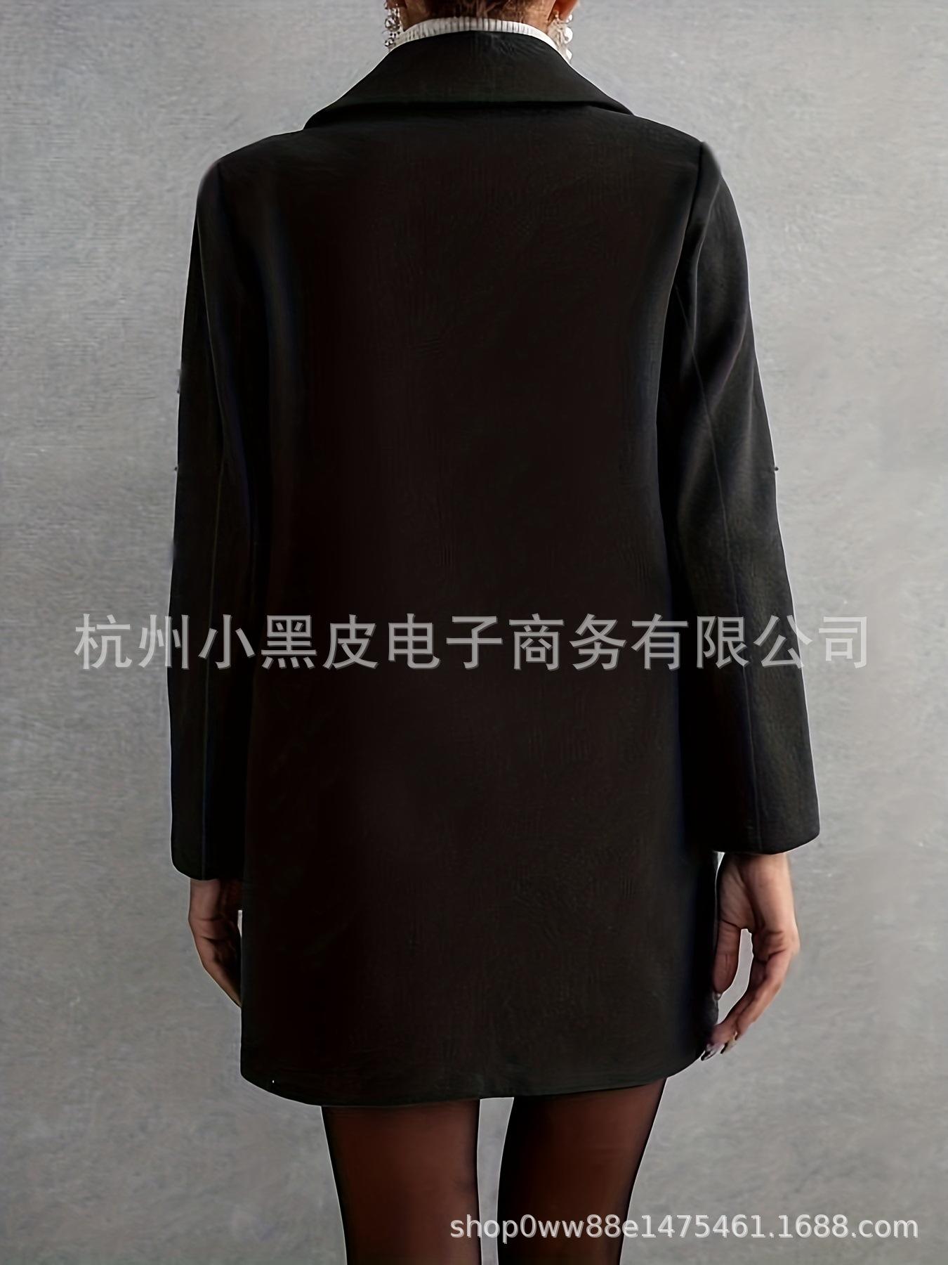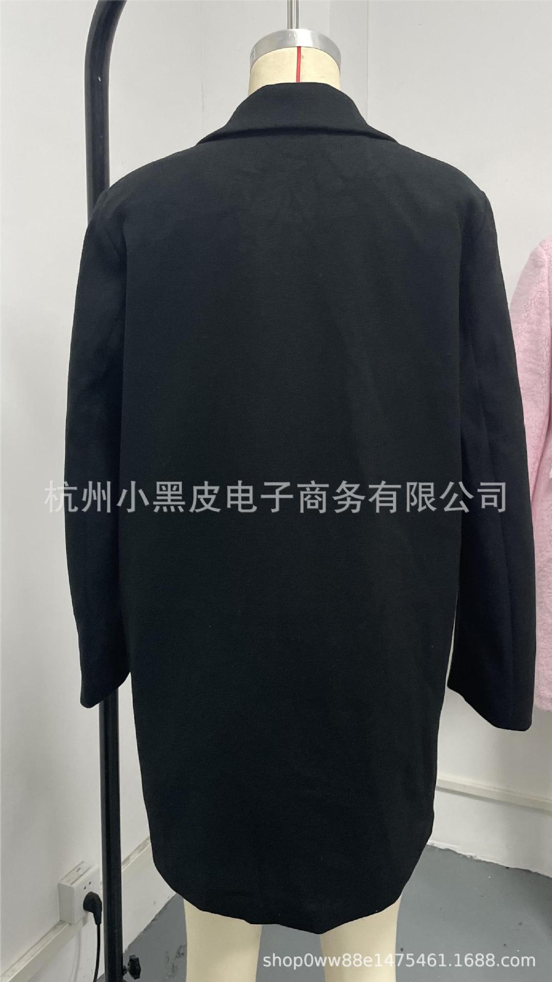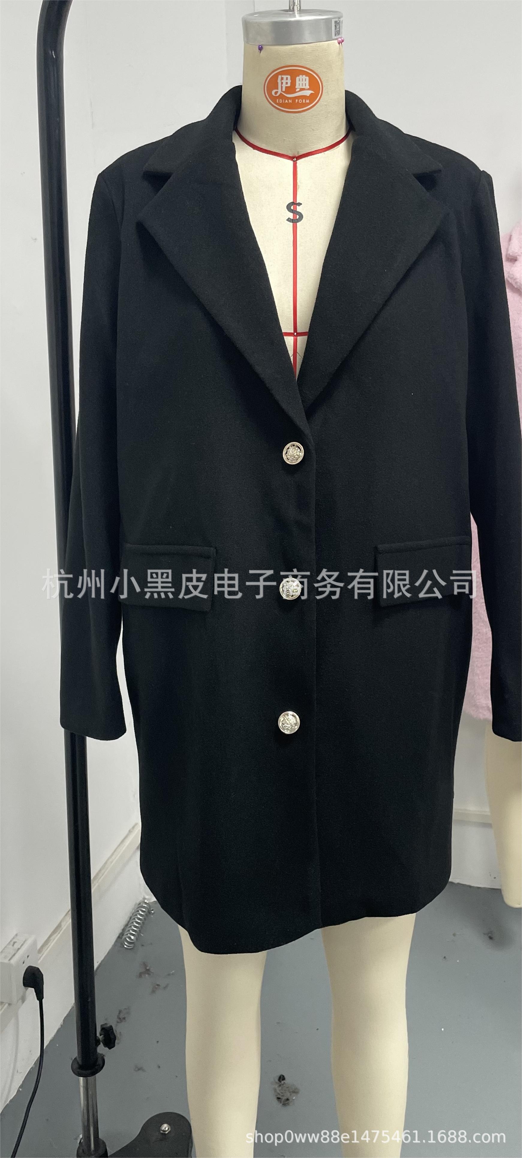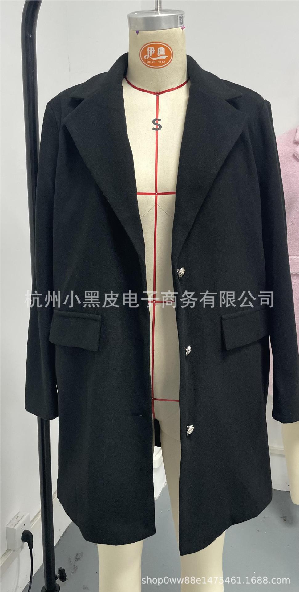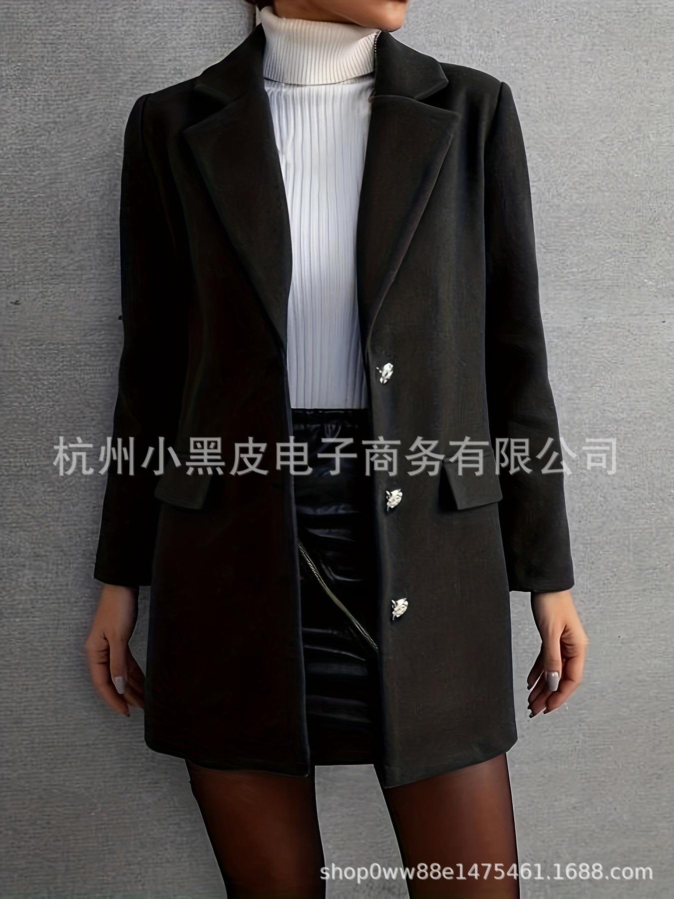 Ropa de mujer transfronteriza europea y americana moda casual color sólido solapa un solo botón bolsillo simulado abrigo de longitud media otoño e invierno Nuevo