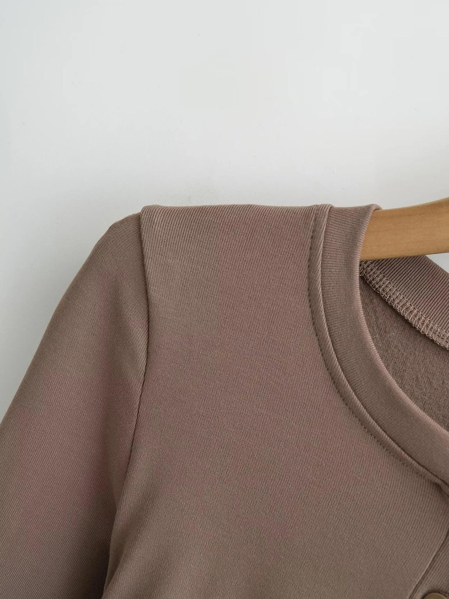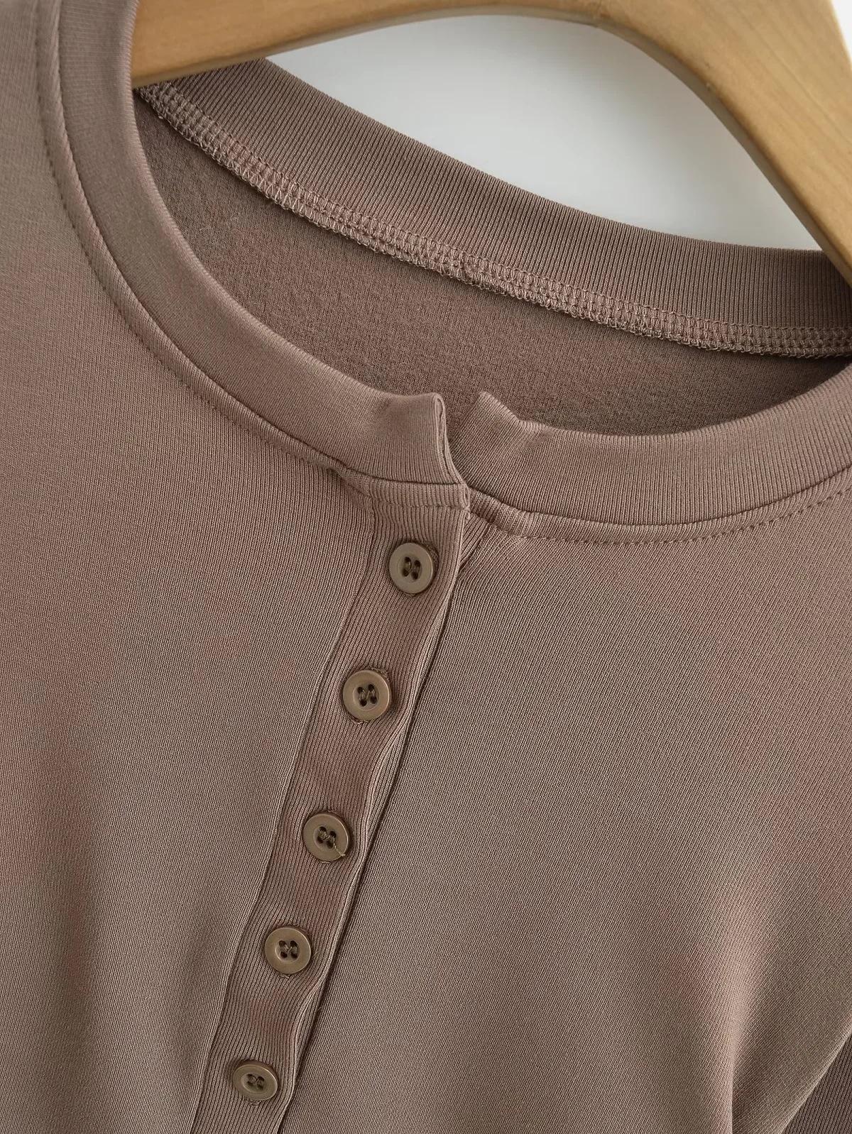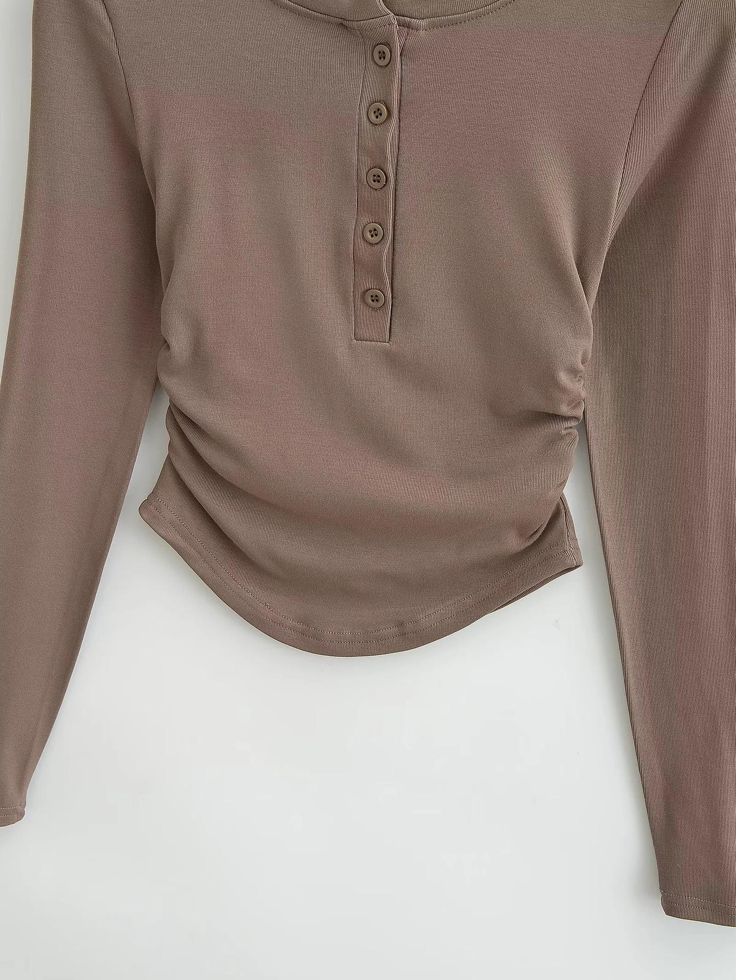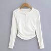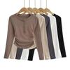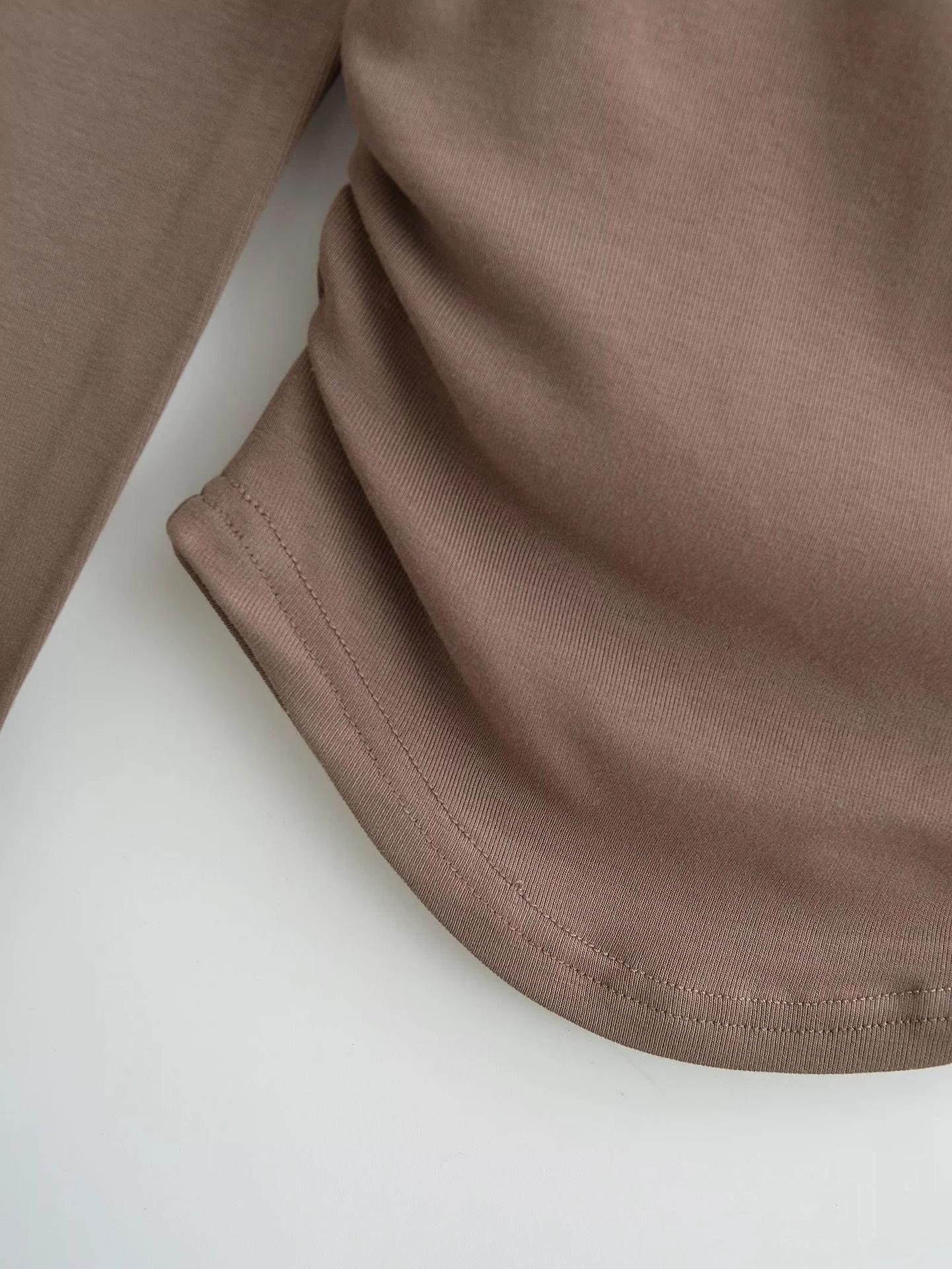 Camisa de manga larga con cuello redondo grueso y forro polar para mujer, otoño e invierno, 2023, nueva camiseta plisada con dobladillo de un solo pecho y cuello redondo pequeño