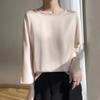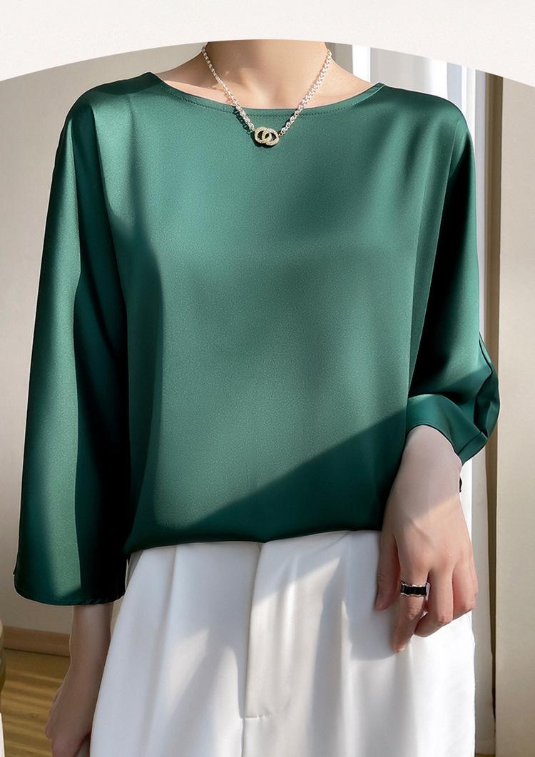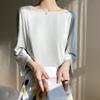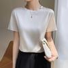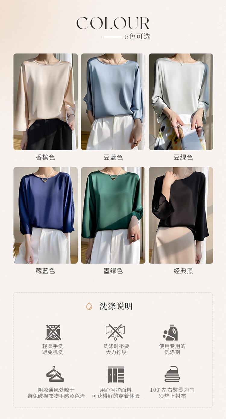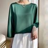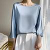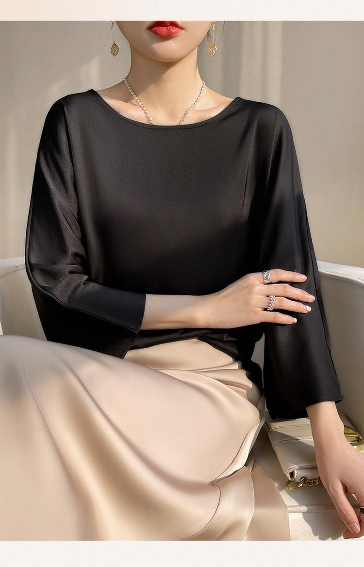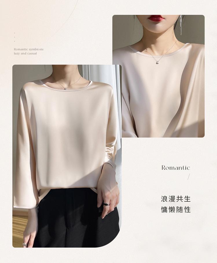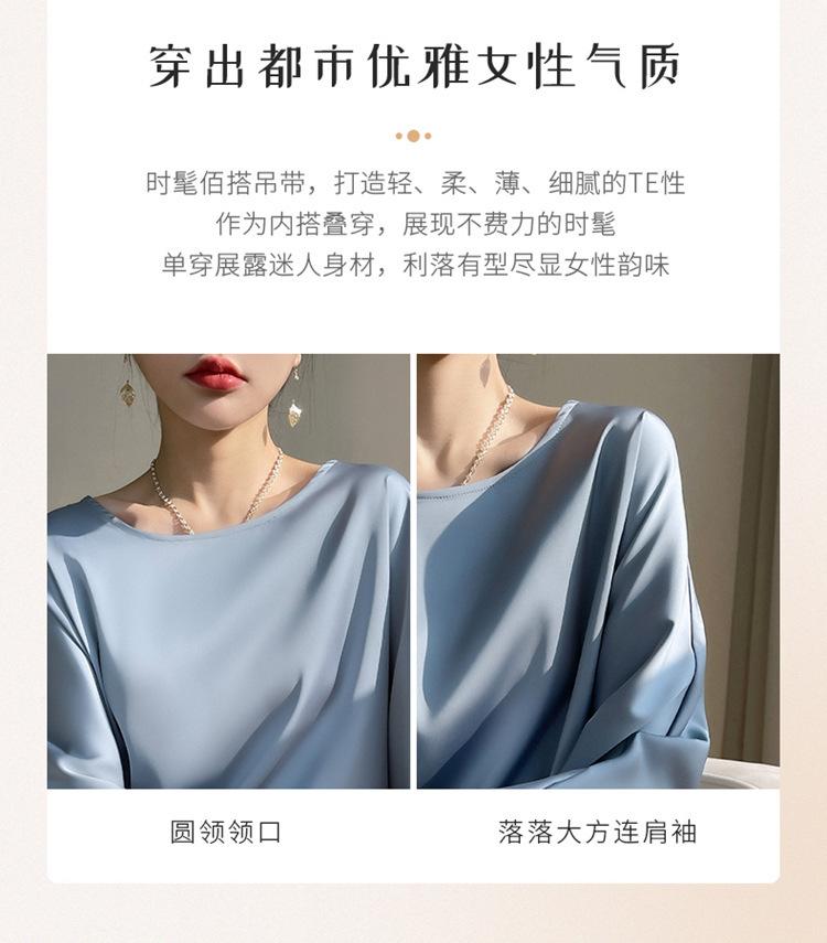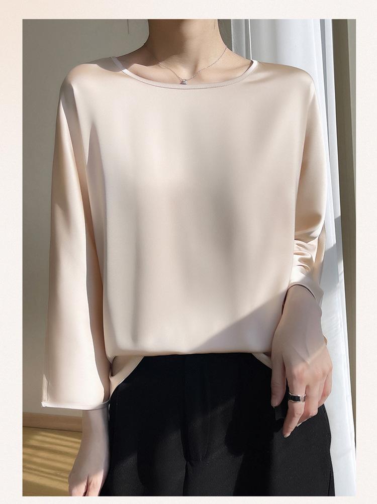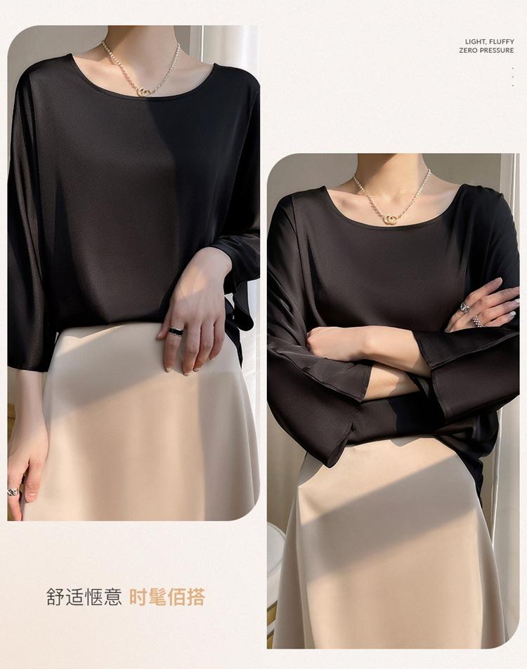 2023 Verano nuevo pesado cuello redondo seda artificial manga 7/4 para mujer suelto casual combinable fino satén camiseta top