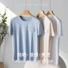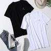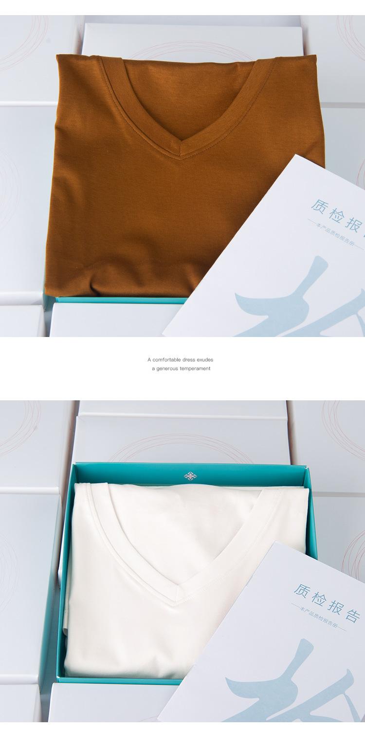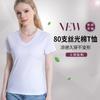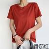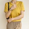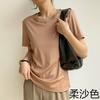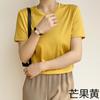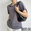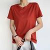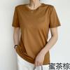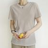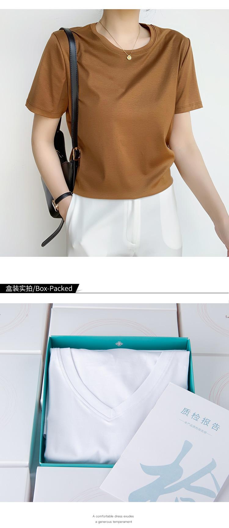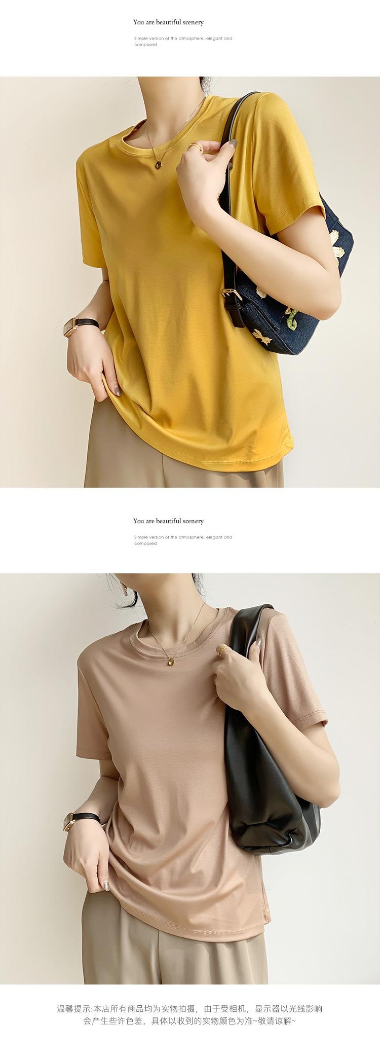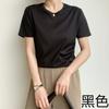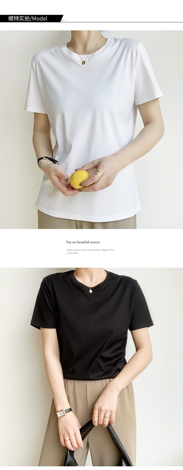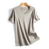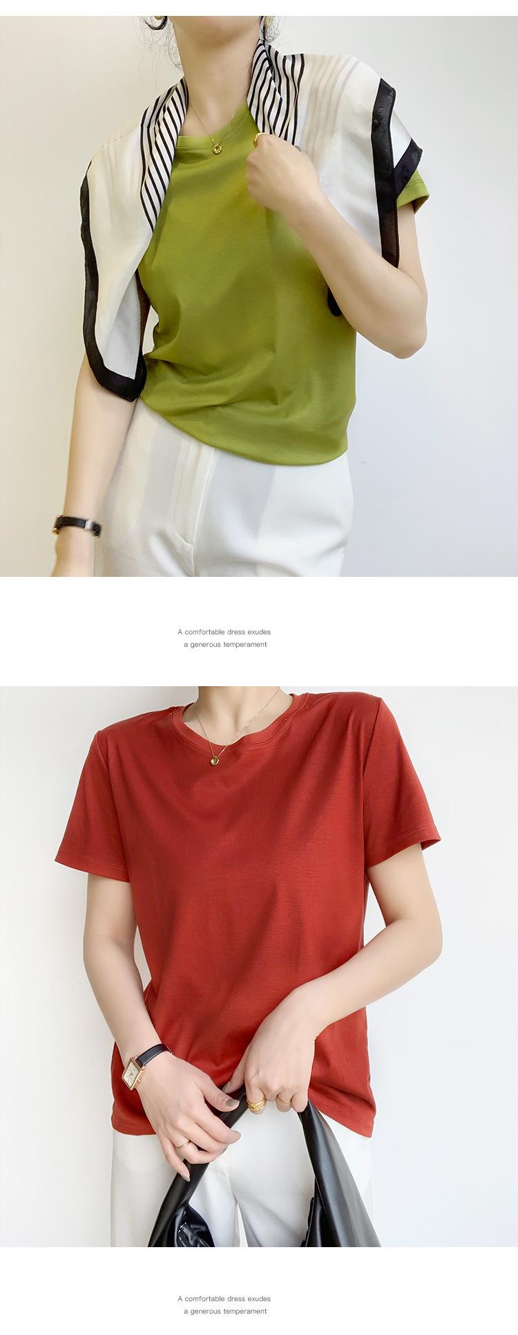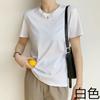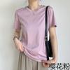 Playera de Algodón Mercerizado para Mujer Estilo Coreano Holgada Cuello en V Cuello Redondo 80 Hilos Slim Ajustada Manga Corta Color Puro para Mujer