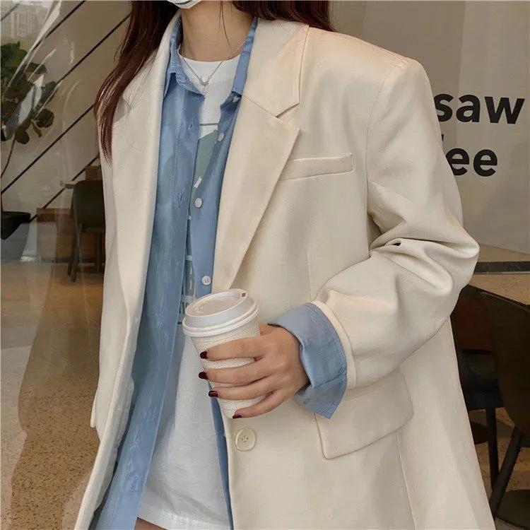 Chaqueta de Traje Casual para Mujer Primavera y Otoño 2025 Nuevo Estilo Coreano Estudiante Suelto Estilo Hong Kong Traje Pequeño Top Versátil Trendy