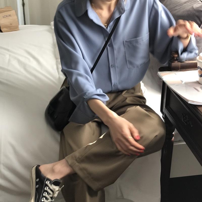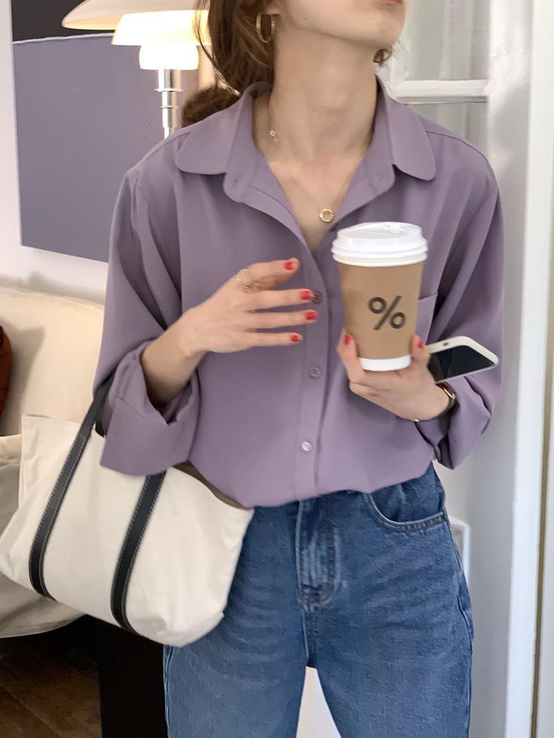 Camisa Francesa Elegante para Mujer 2025 Otoño Nuevo Estilo Coreano Color Puro Simple Elegante Camisa de Solapa de Manga Larga para Mujer