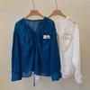 Camisa de Manga Larga con Cuello en V de Color Sólido para Mujer, Diseño Chic Estilo Hong Kong Vintage, Camisa Delgada Estilo Nicho Lazy