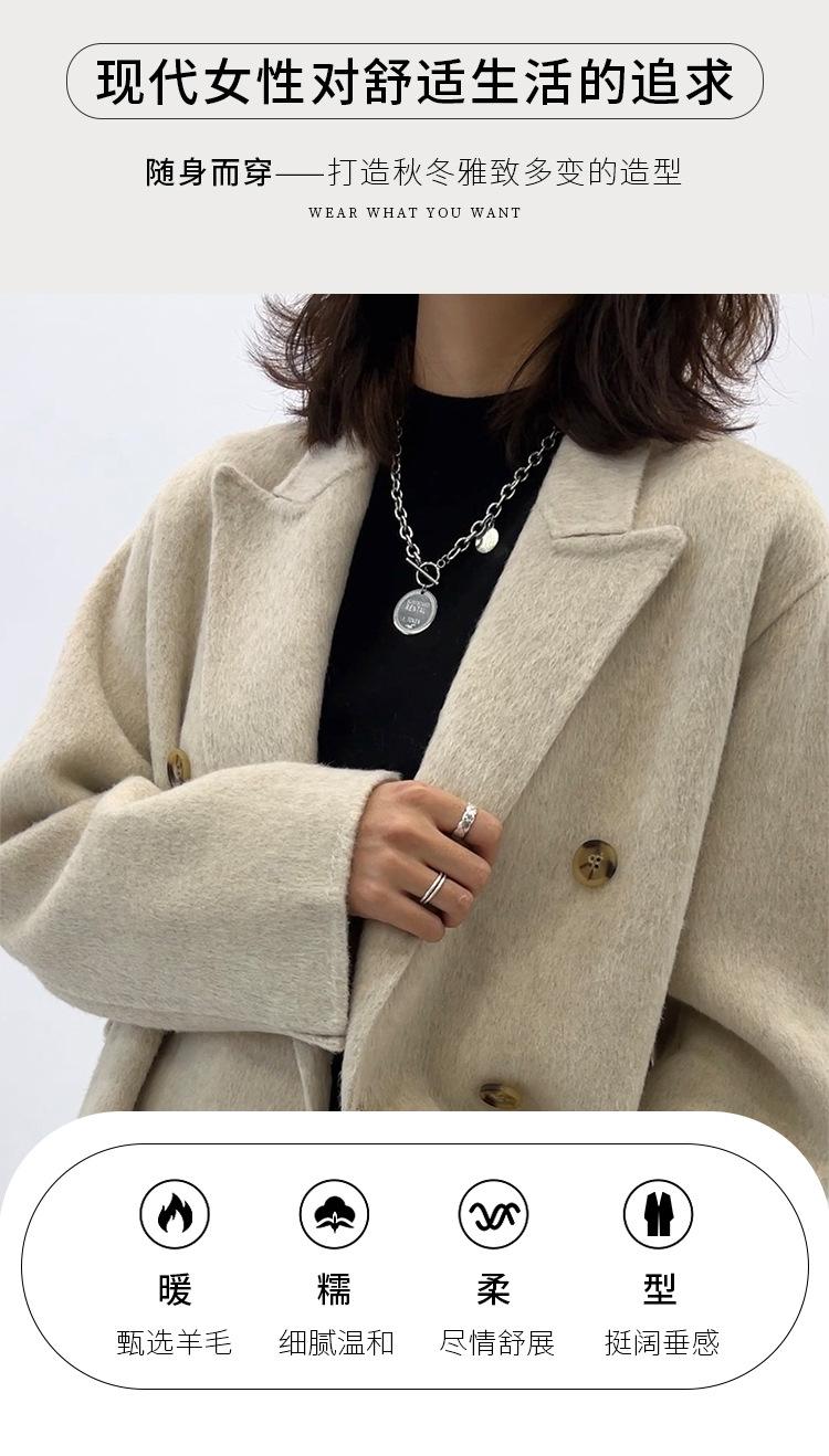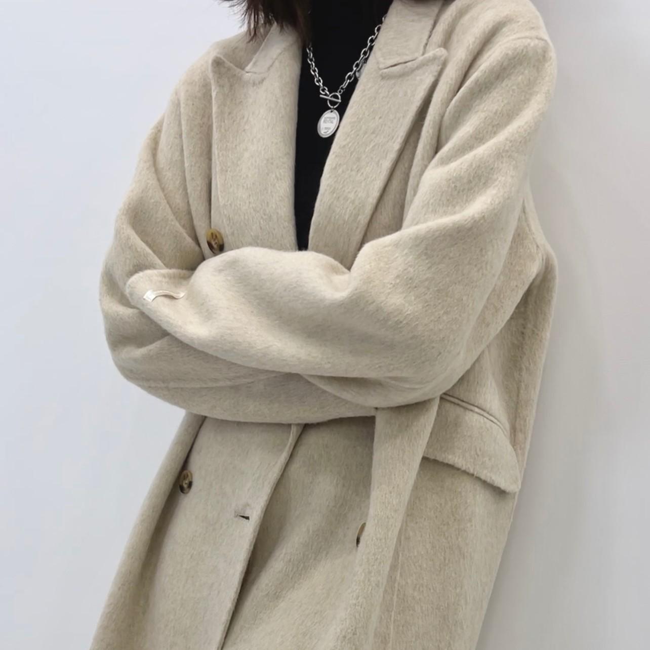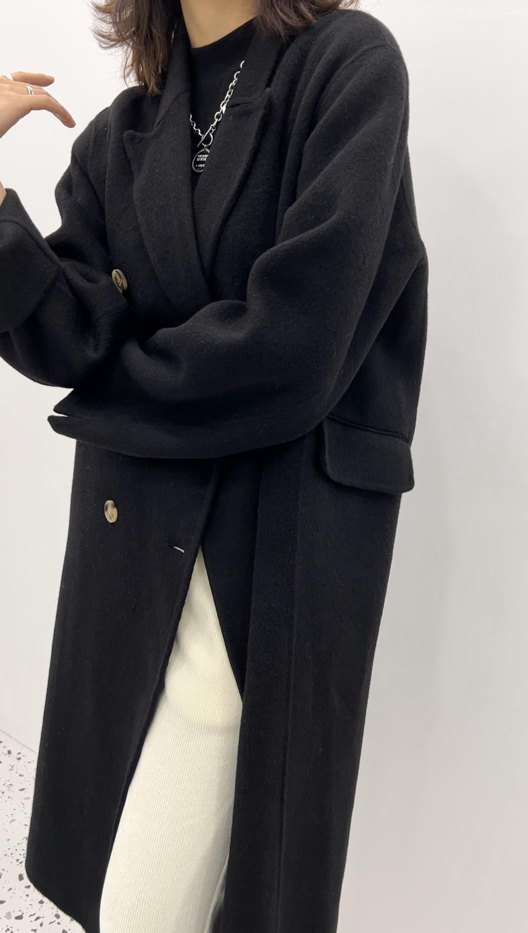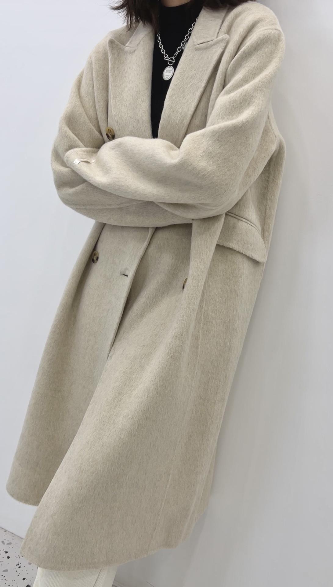 Abrigo de lana holgado de longitud media con bolsillos laterales, elegante y a la moda, para otoño e invierno, estilo coreano.