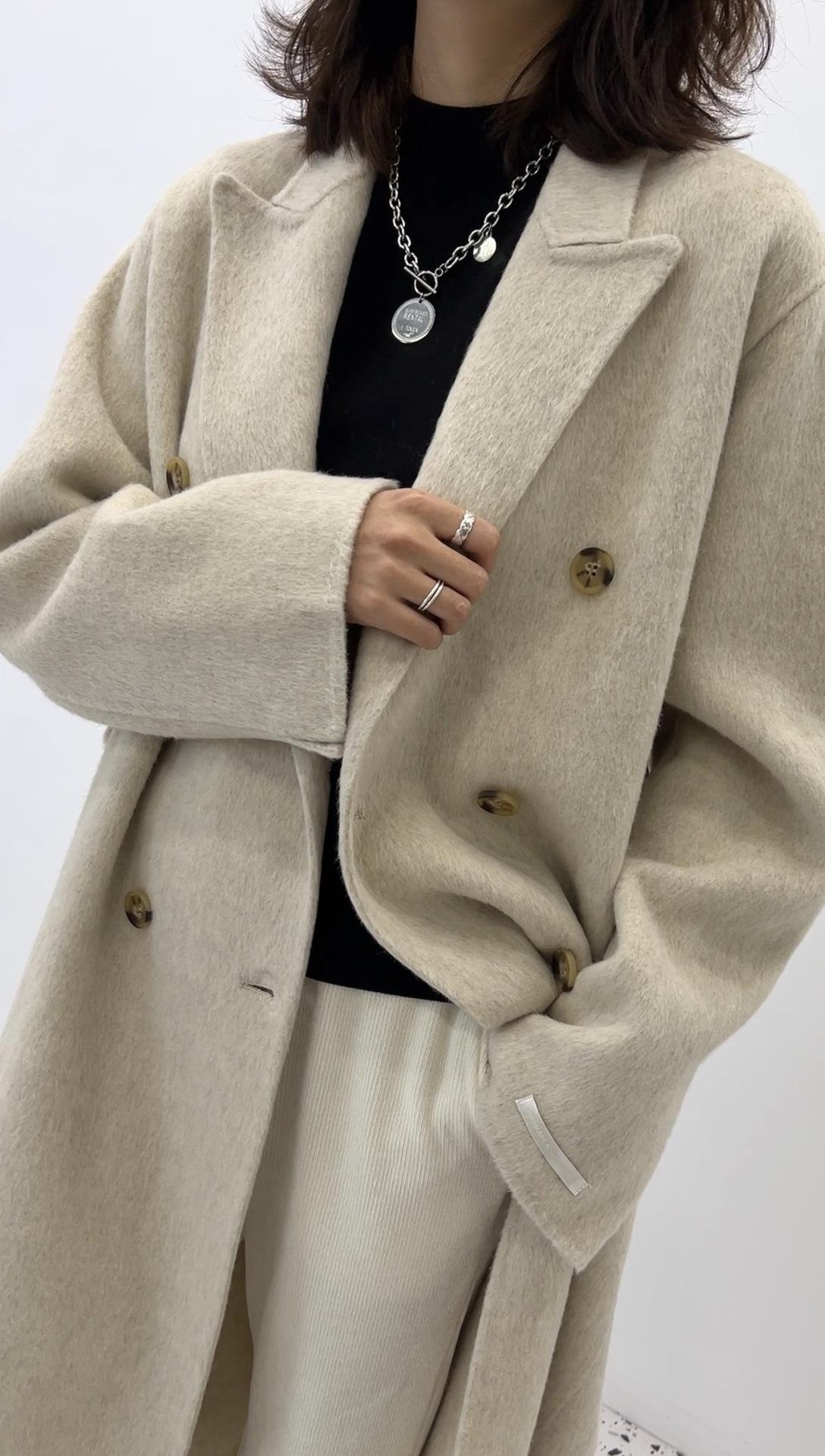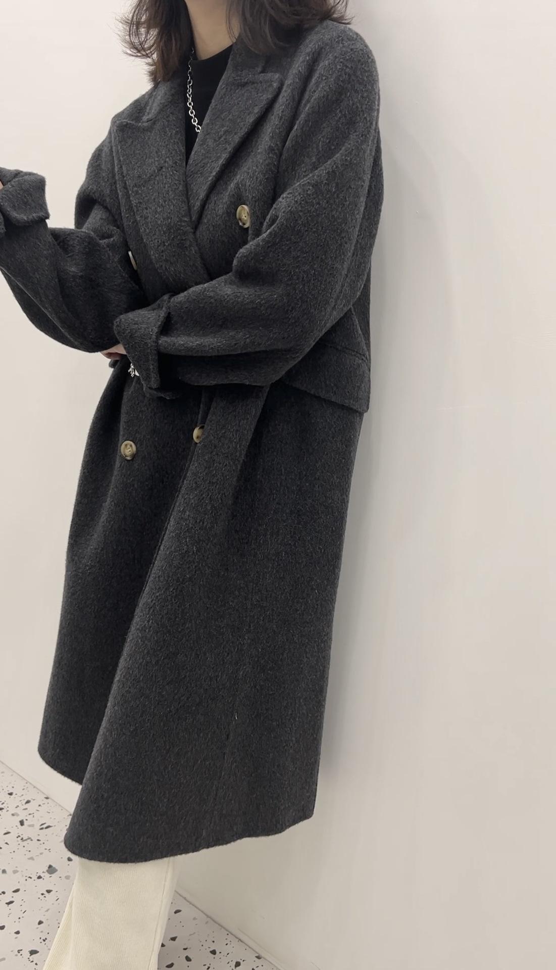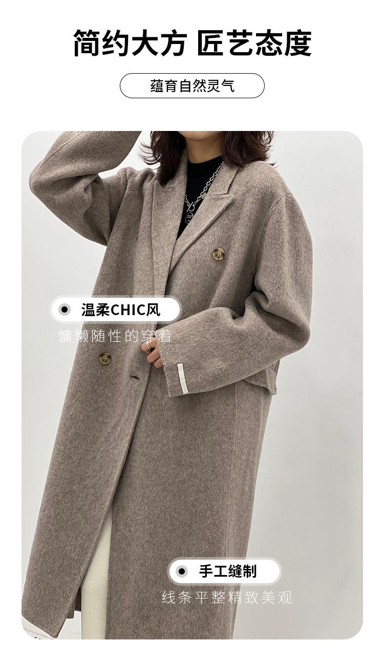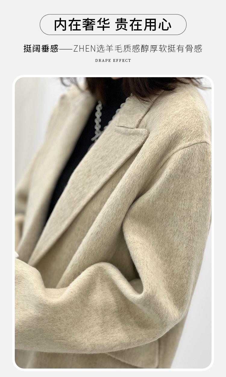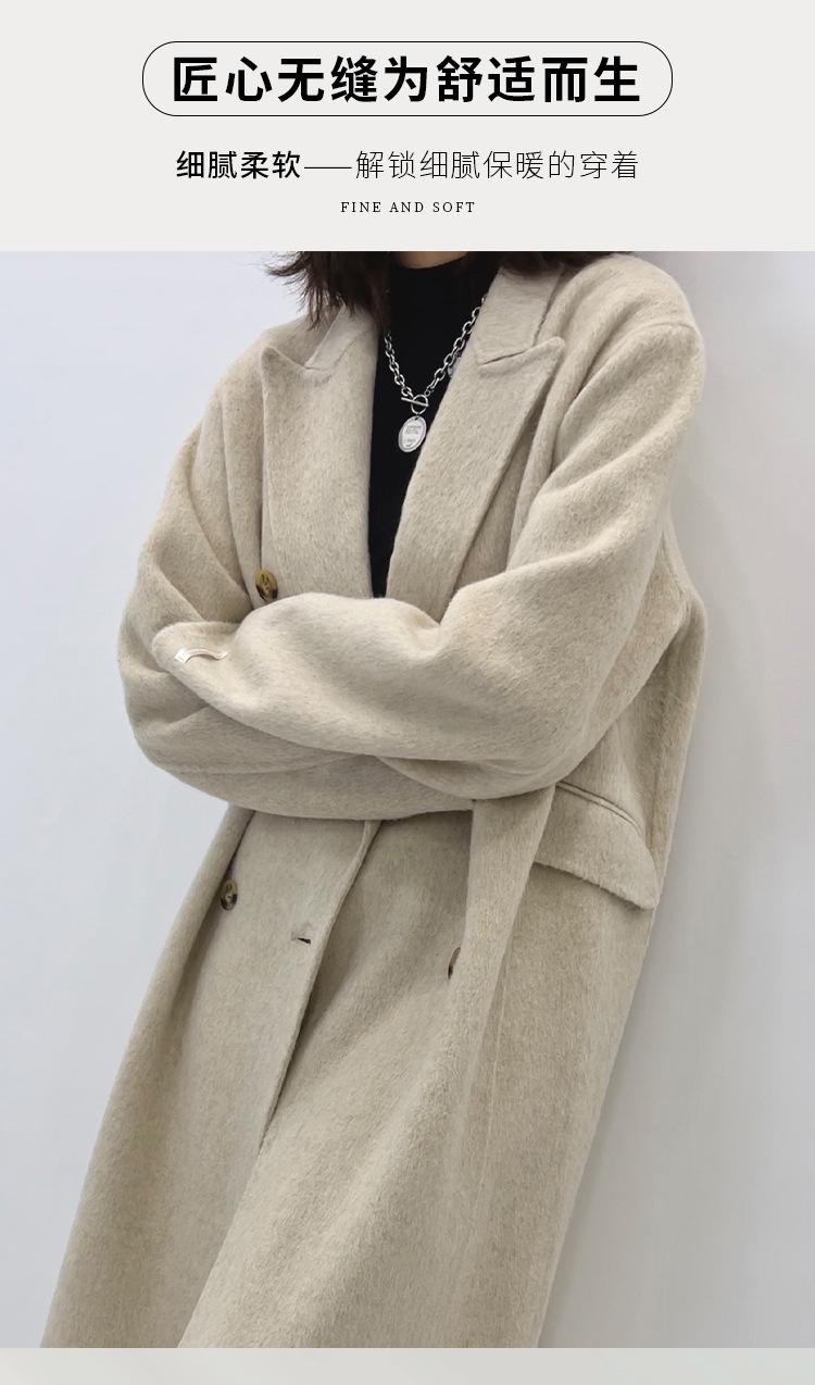 Abrigo de lana holgado de longitud media con bolsillos laterales, elegante y a la moda, para otoño e invierno, estilo coreano.