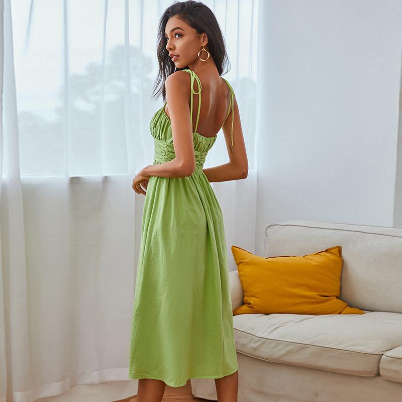 2025 nuevo vestido de tirantes irregular para mujer transfronterizo, sexy sin espalda, cintura alta, vestido europeo y americano
