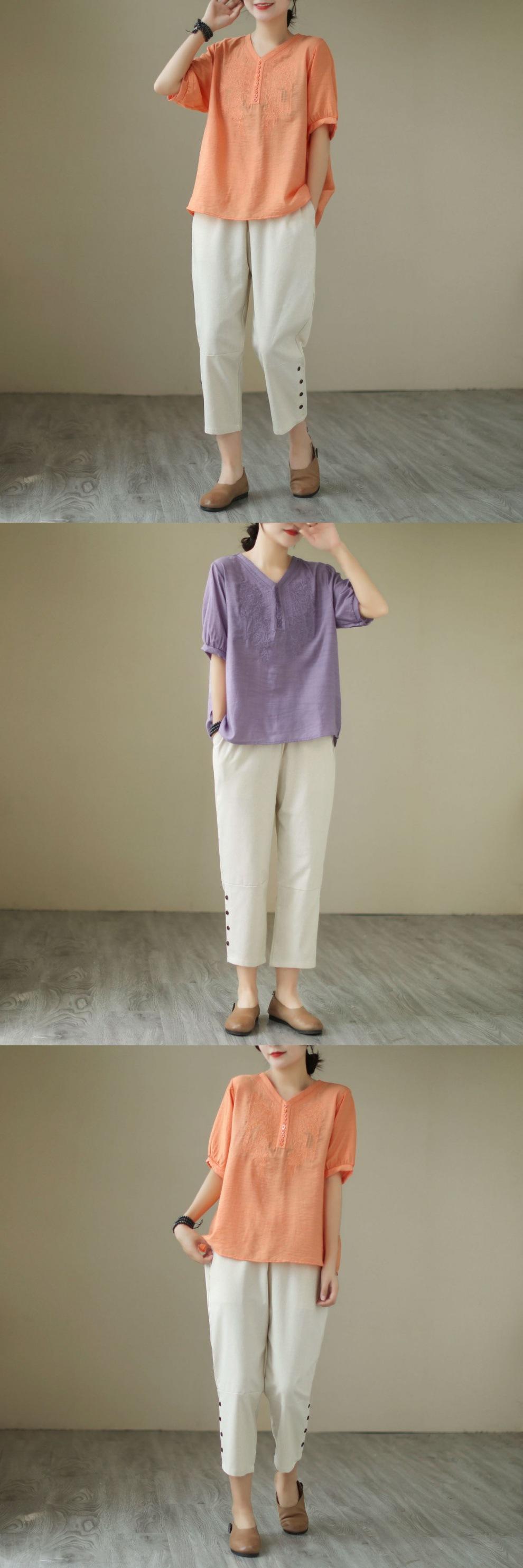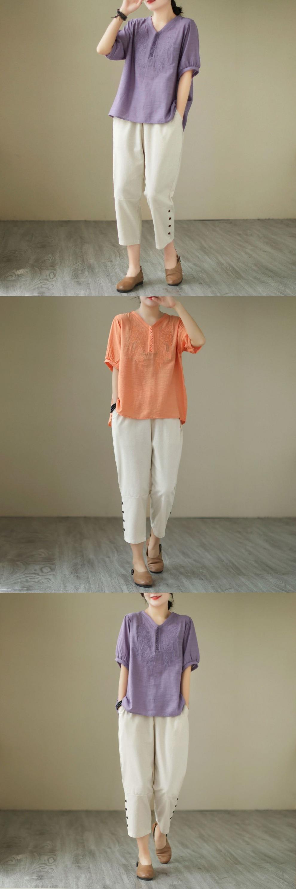 Purple Top White Pants suit, Orange top white pants suit, Purple top single piece, Orange blouse single piece,...