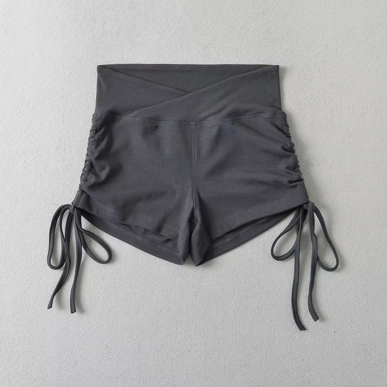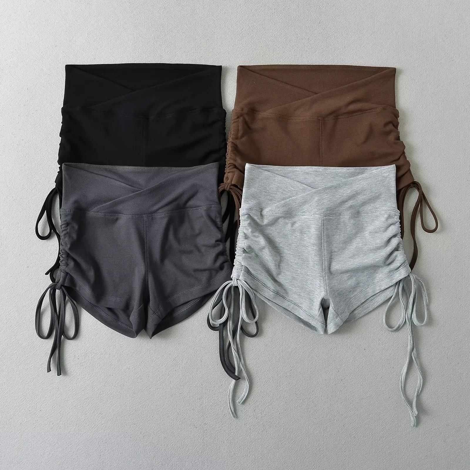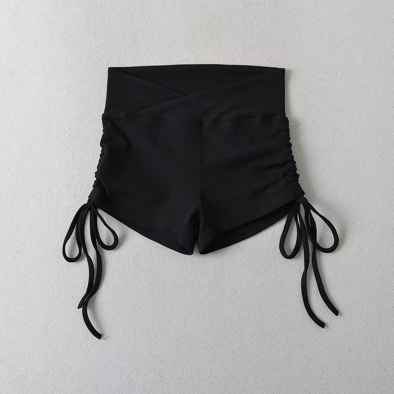 Pantalones cortos deportivos de cintura alta con cordón ajustable para mujer, pantalones cortos de yoga ajustados de tres puntos, transpirables y de fitness, para verano de 2024