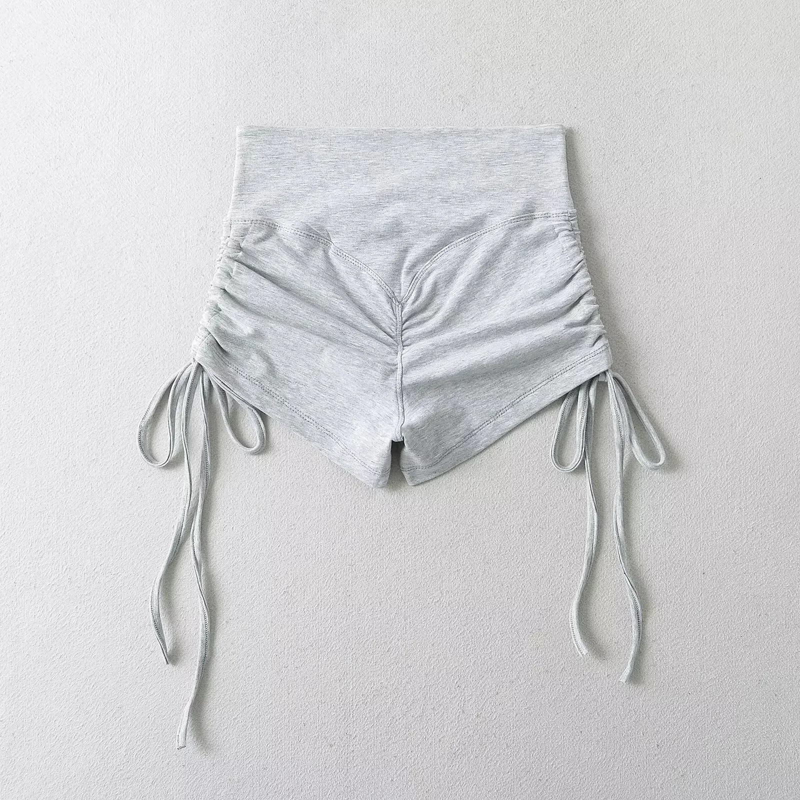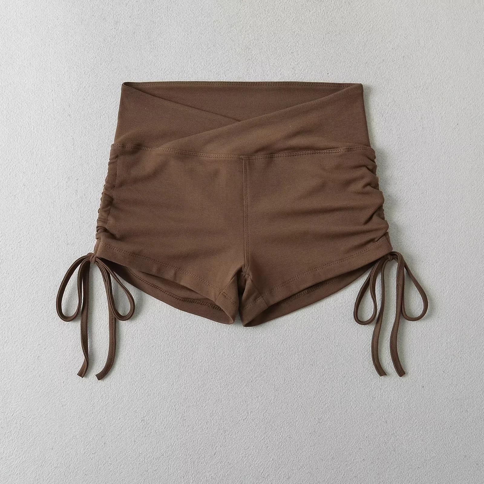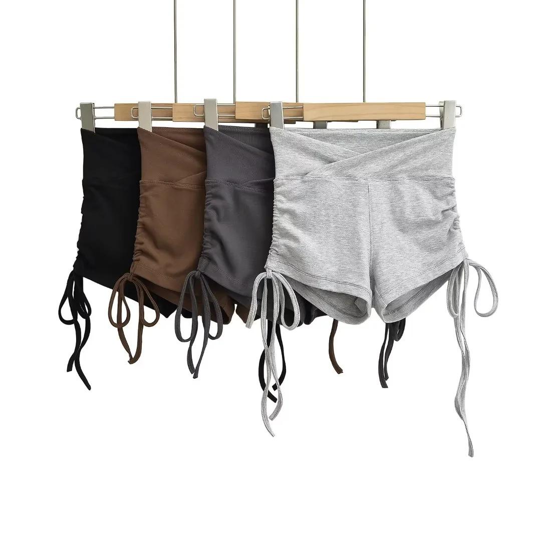 Pantalones cortos deportivos de cintura alta con cordón ajustable para mujer, pantalones cortos de yoga ajustados de tres puntos, transpirables y de fitness, para verano de 2024