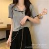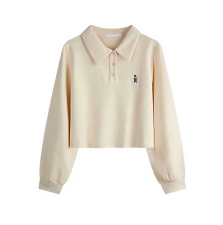 Suéter Polo Corto Estilo Estación Europea para Mujer Nuevo de Primavera Temprana y Otoño Delgado Holgado Estilo Coreano Estudiante Combinable Top de Cintura Alta