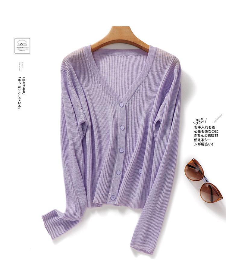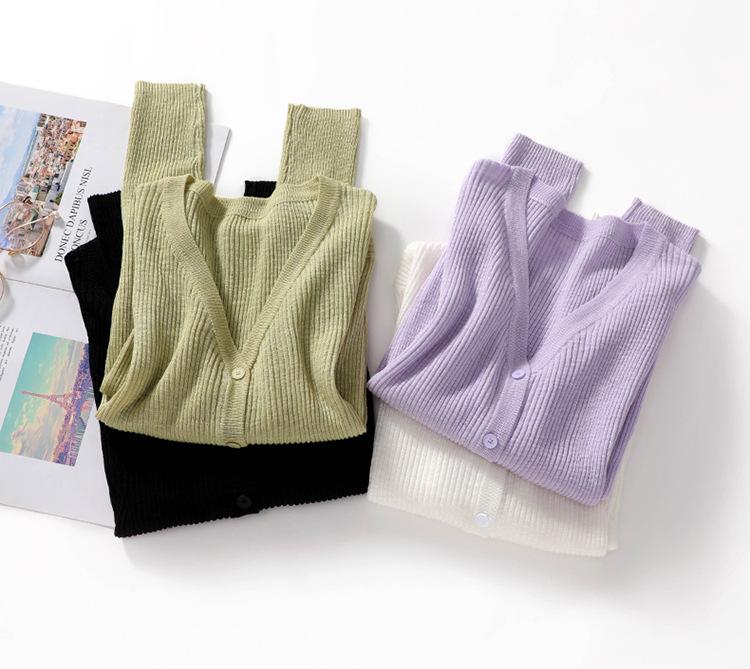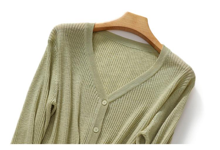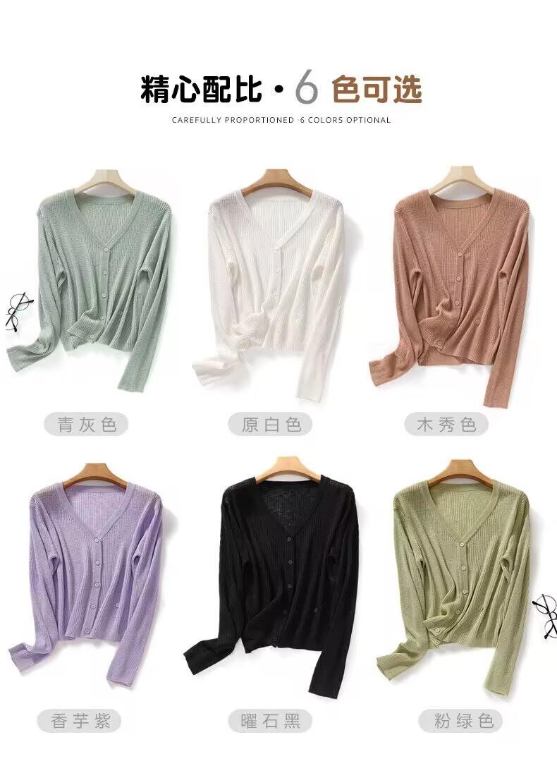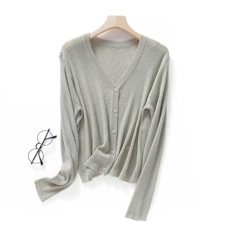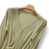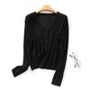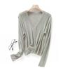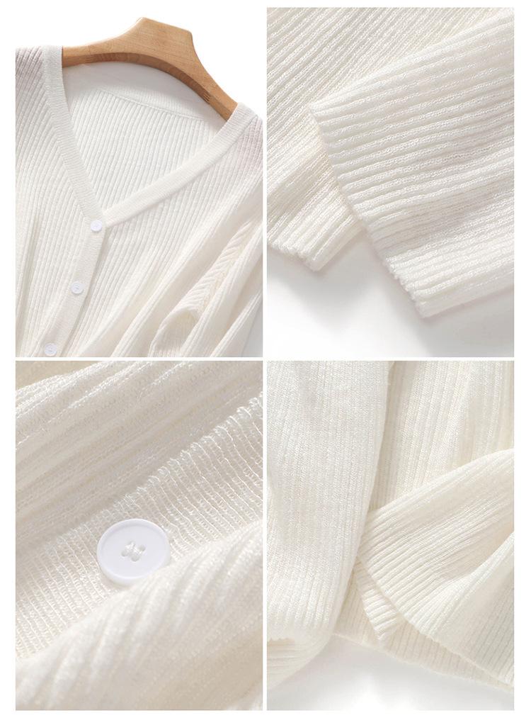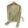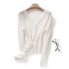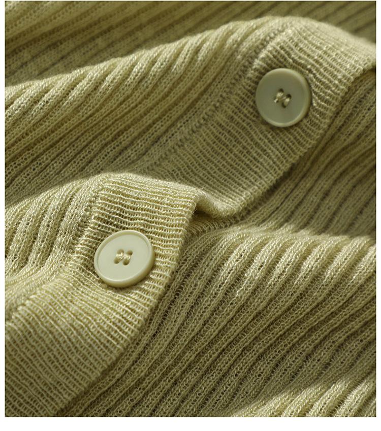 Chaqueta Cárdigan Tejida de Lino de Bambú Holgada de Verano Nueva Estilo Coreano Manga Larga Versátil Cuello en V Recorte Ropa de Protección Solar para Mujer