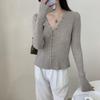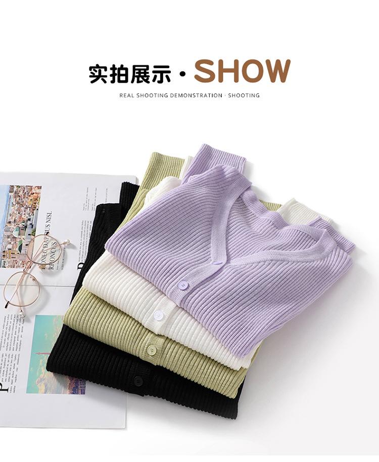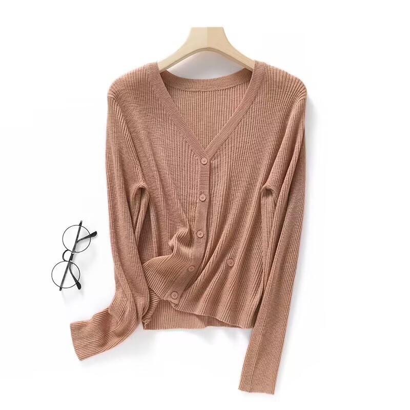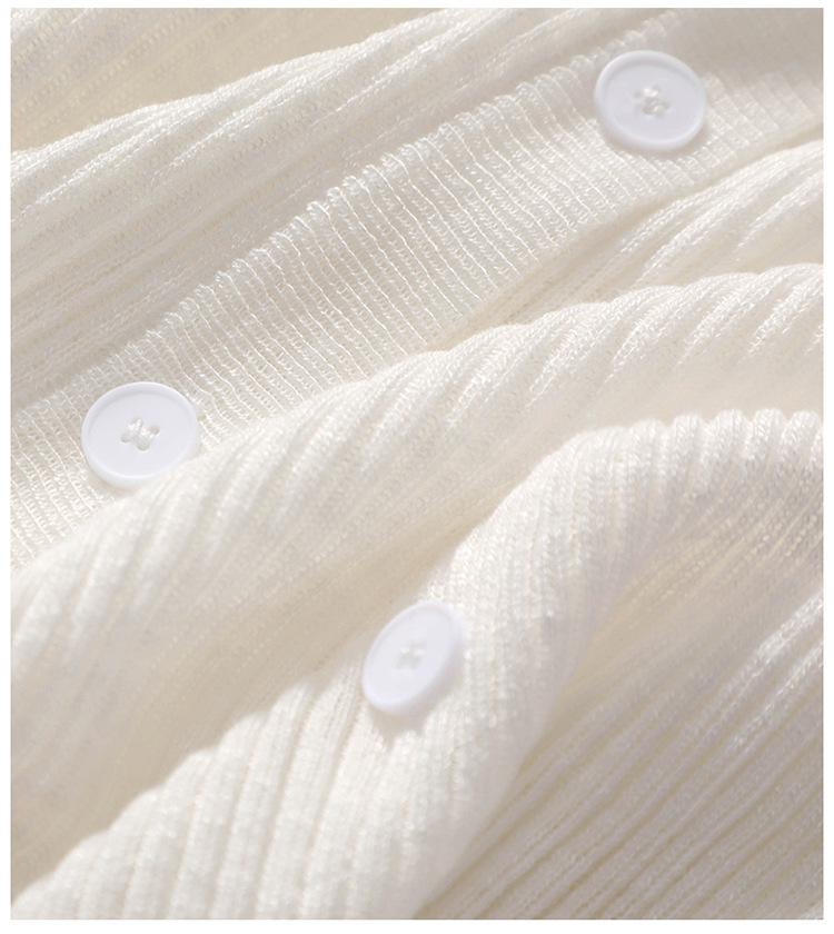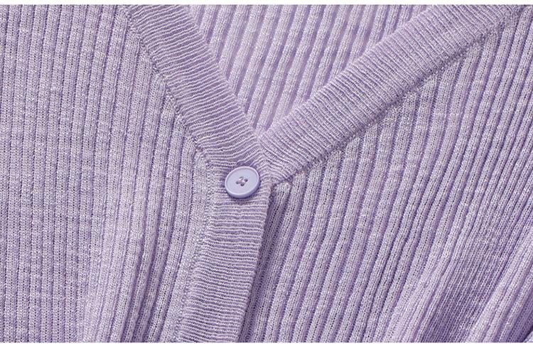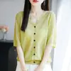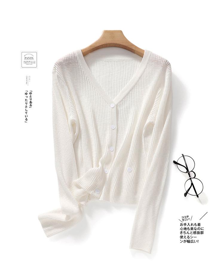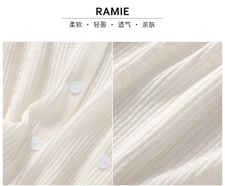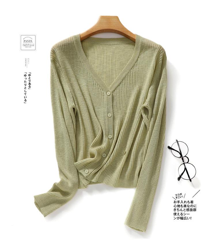 Chaqueta Cárdigan Tejida de Lino de Bambú Holgada de Verano Nueva Estilo Coreano Manga Larga Versátil Cuello en V Recorte Ropa de Protección Solar para Mujer