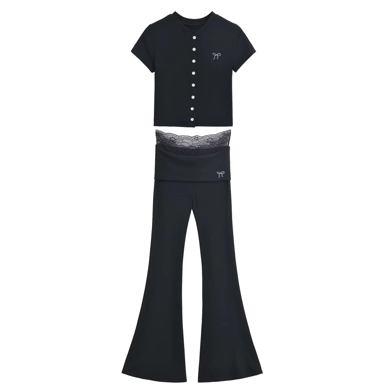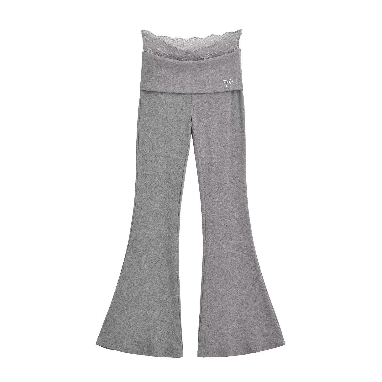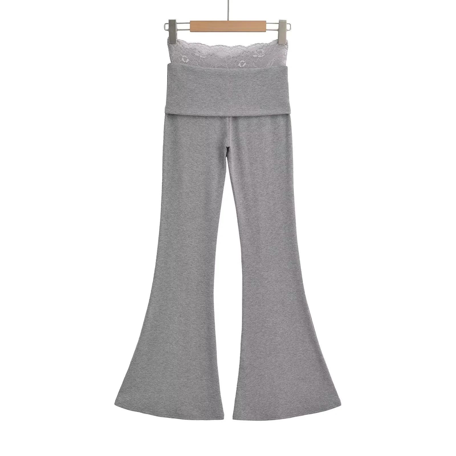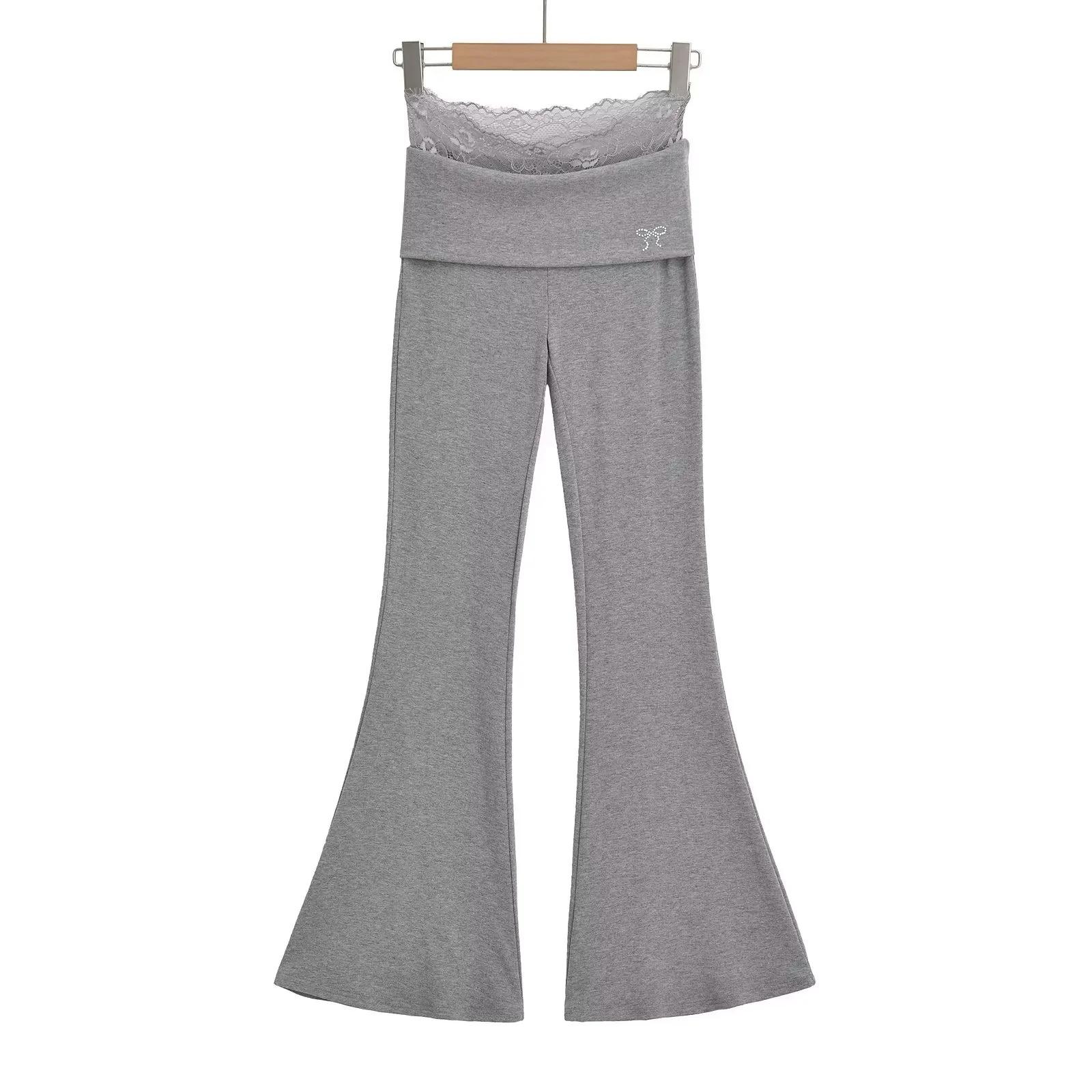 Pantalones Acampanados de Cintura Alta con Costuras de Encaje para Mujer Verano Nuevo Moda Hot Drilling Bolsa Cadera Ajustados Ligeramente Pantalones Calientes Modernos