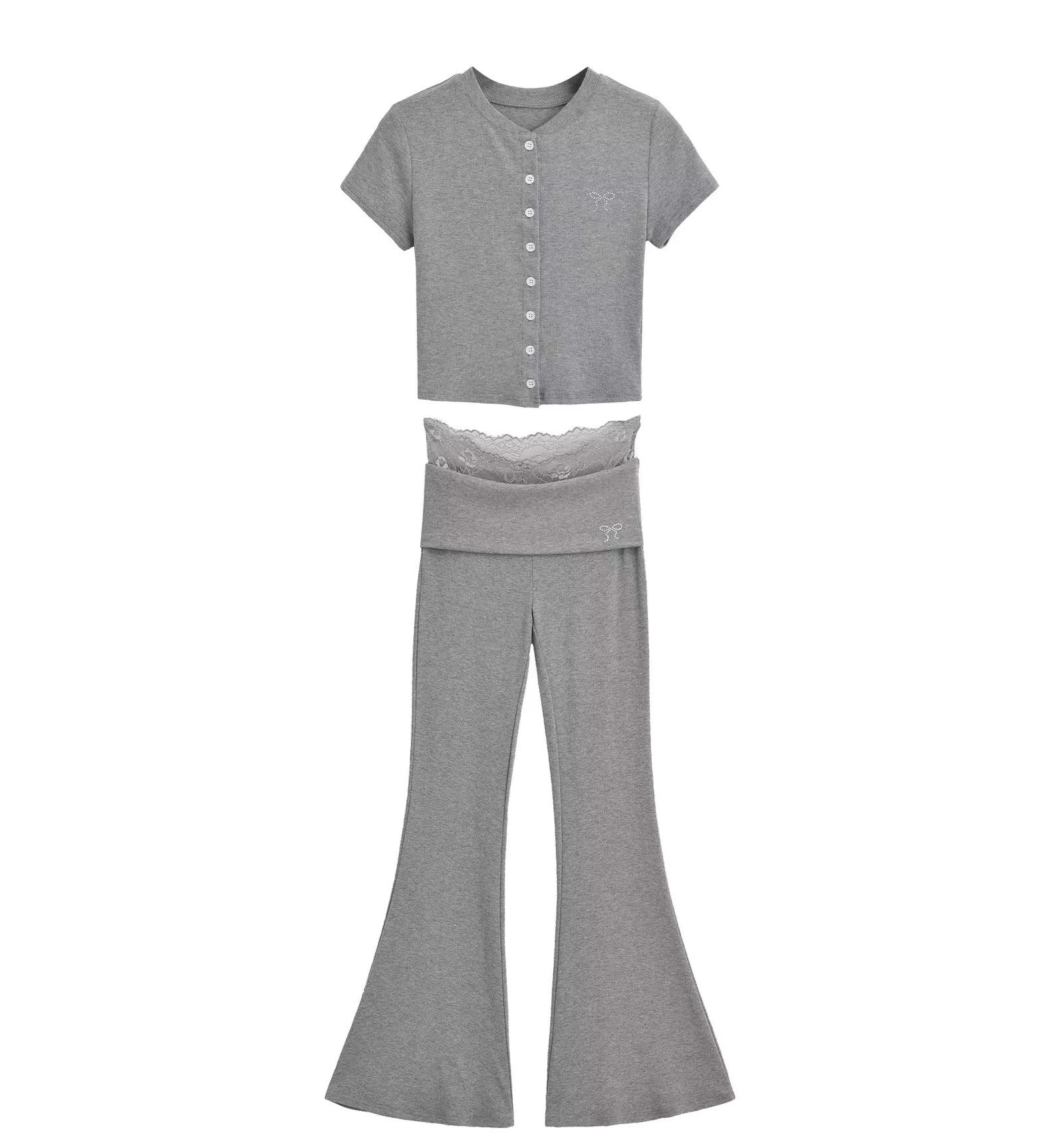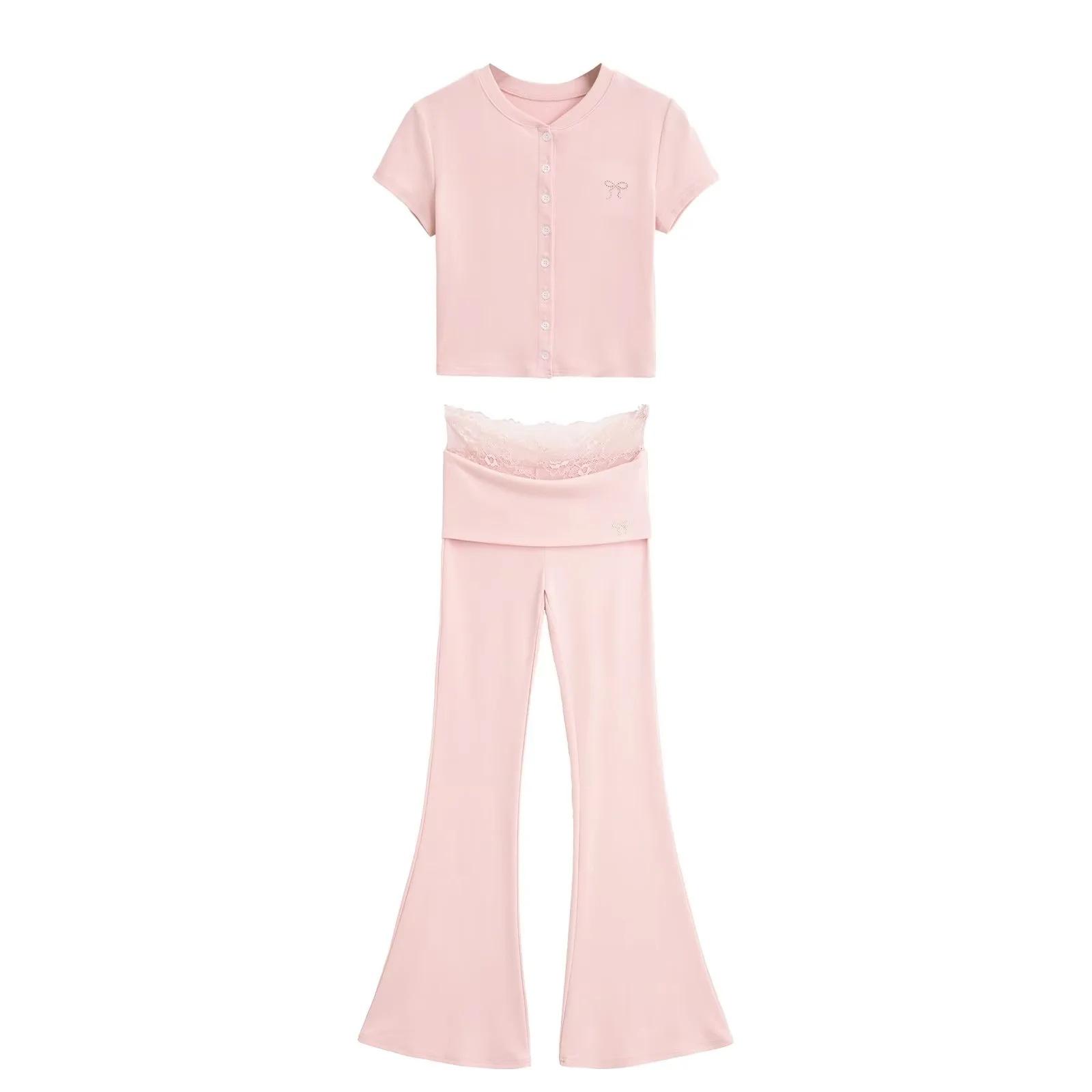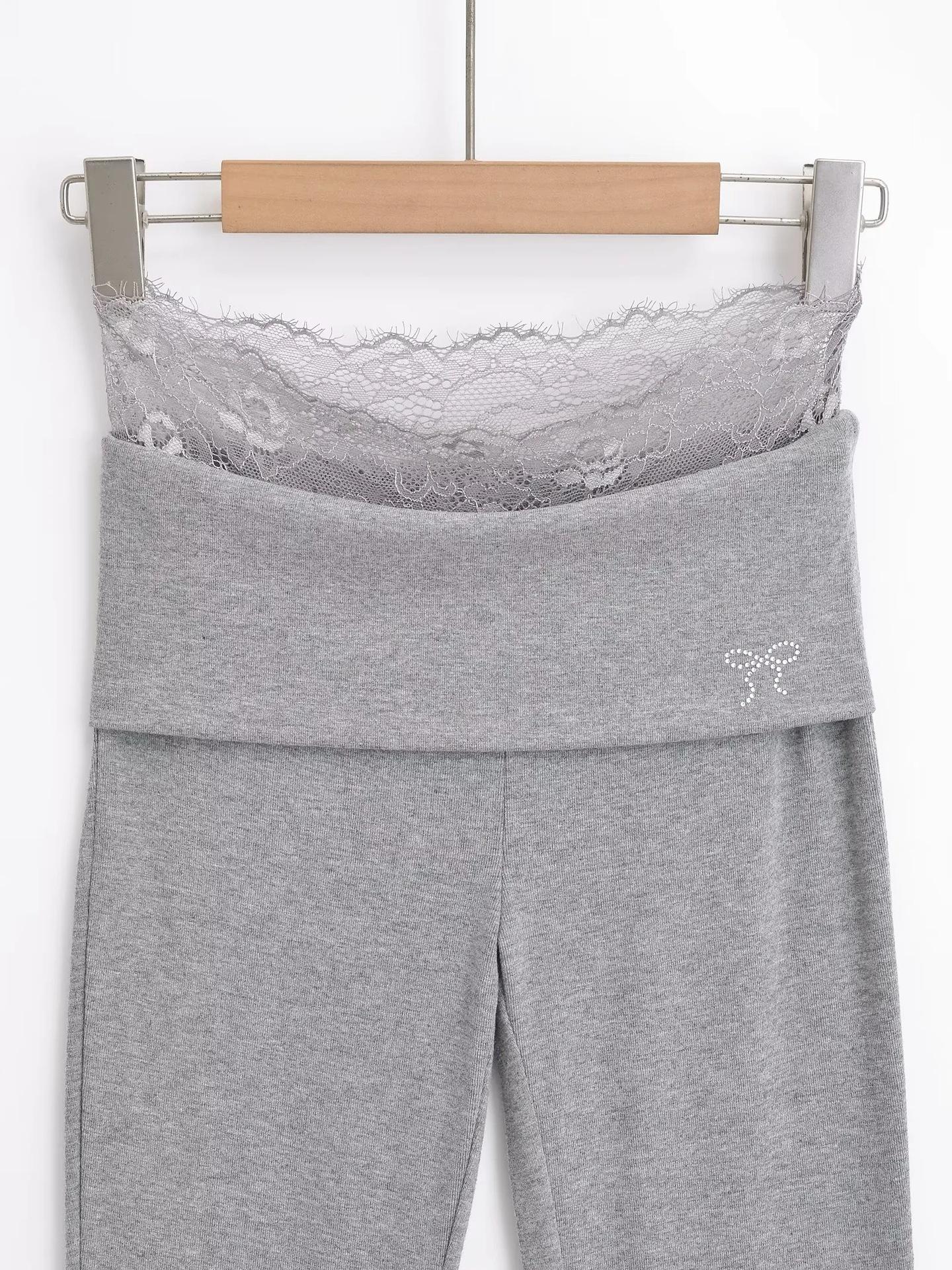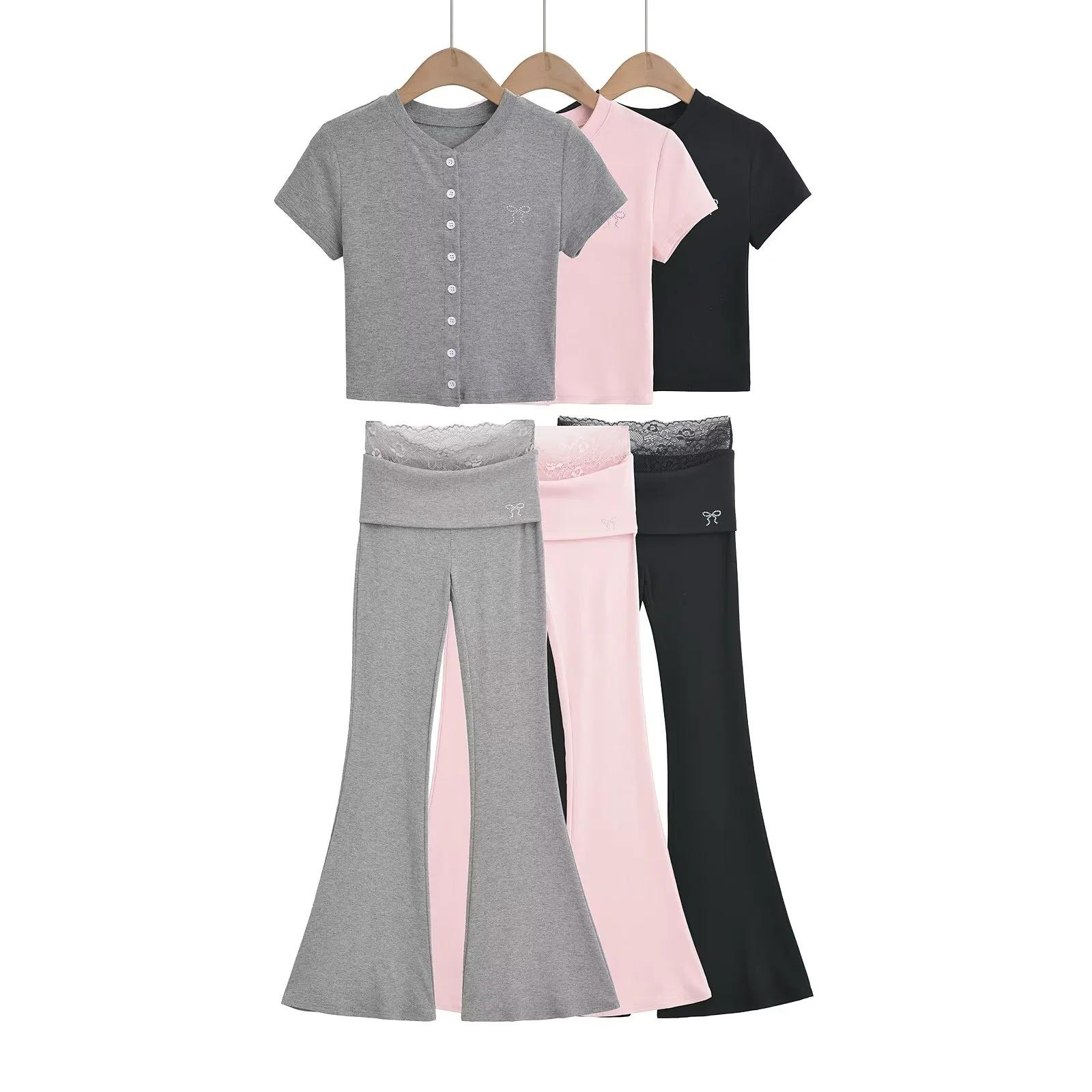 Pantalones Acampanados de Cintura Alta con Costuras de Encaje para Mujer Verano Nuevo Moda Hot Drilling Bolsa Cadera Ajustados Ligeramente Pantalones Calientes Modernos