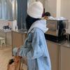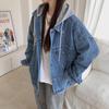 Chamarra de mezclilla con capucha de dos piezas falsas para mujer 2023 Primavera Diseño holgado Versátil Top desmontable Producto nuevo