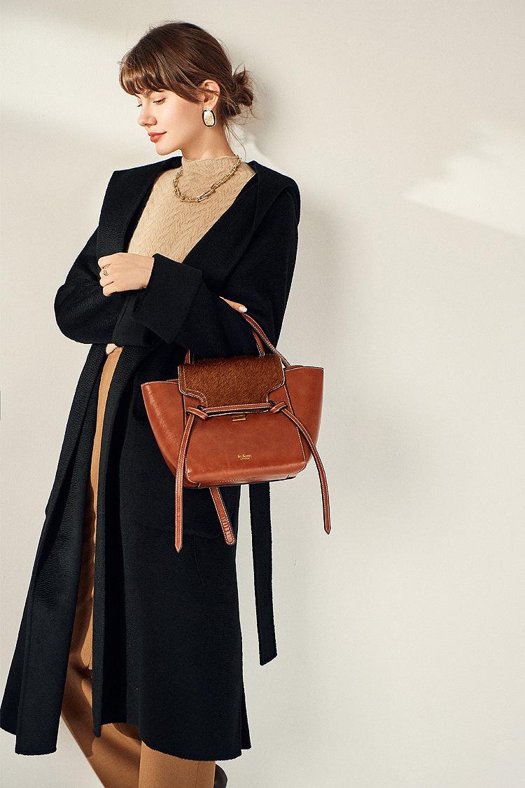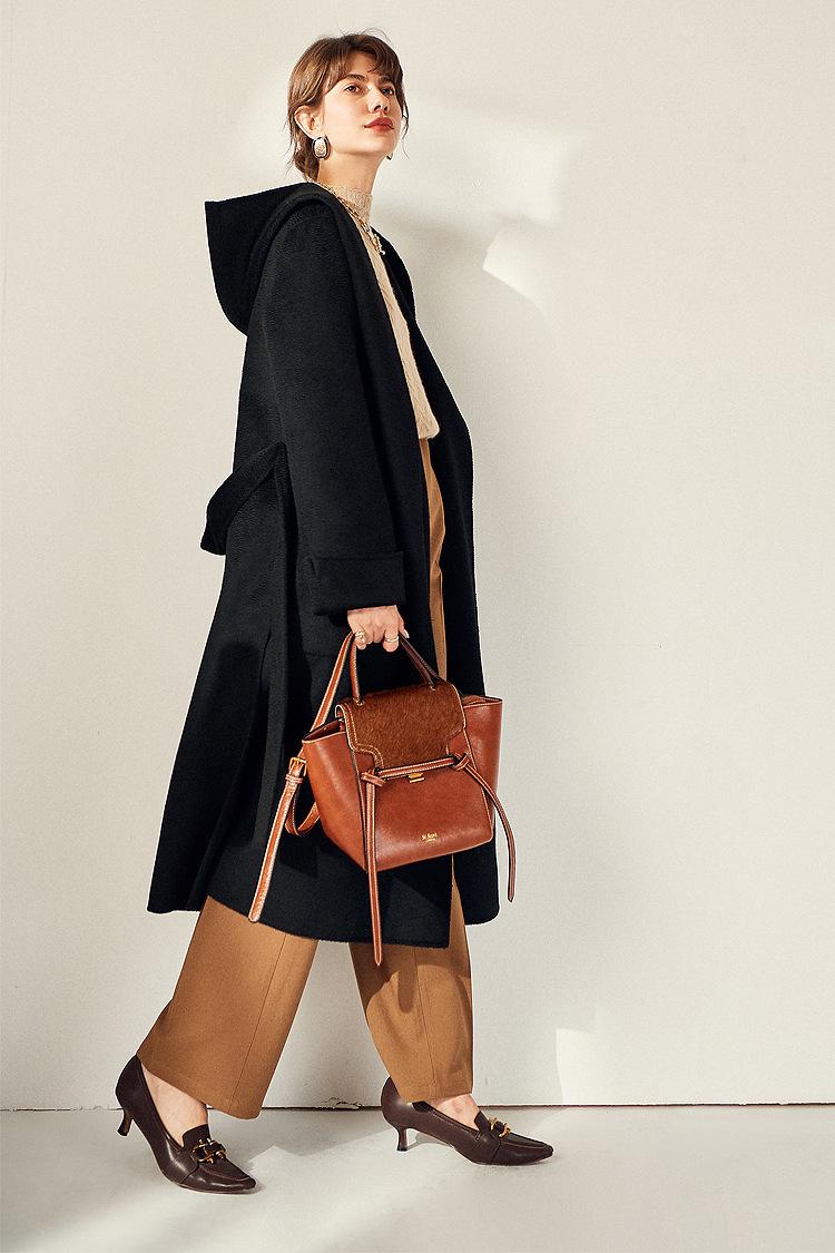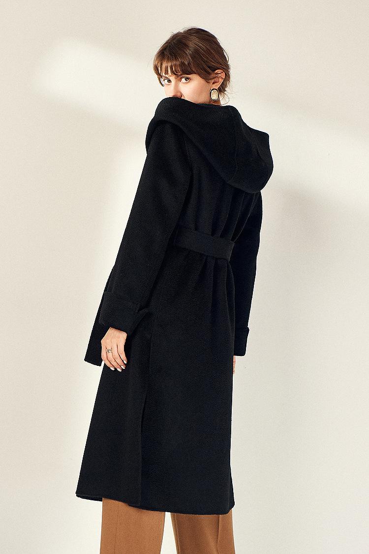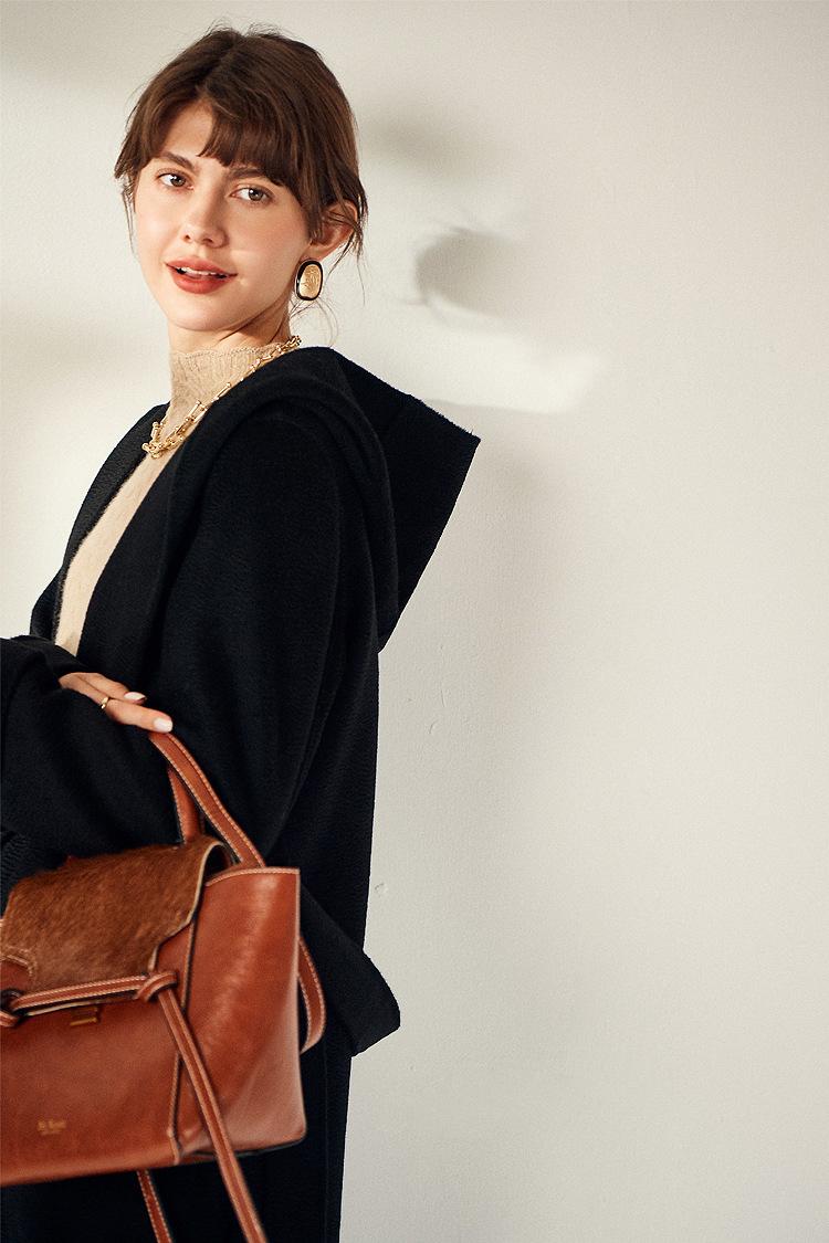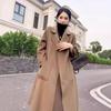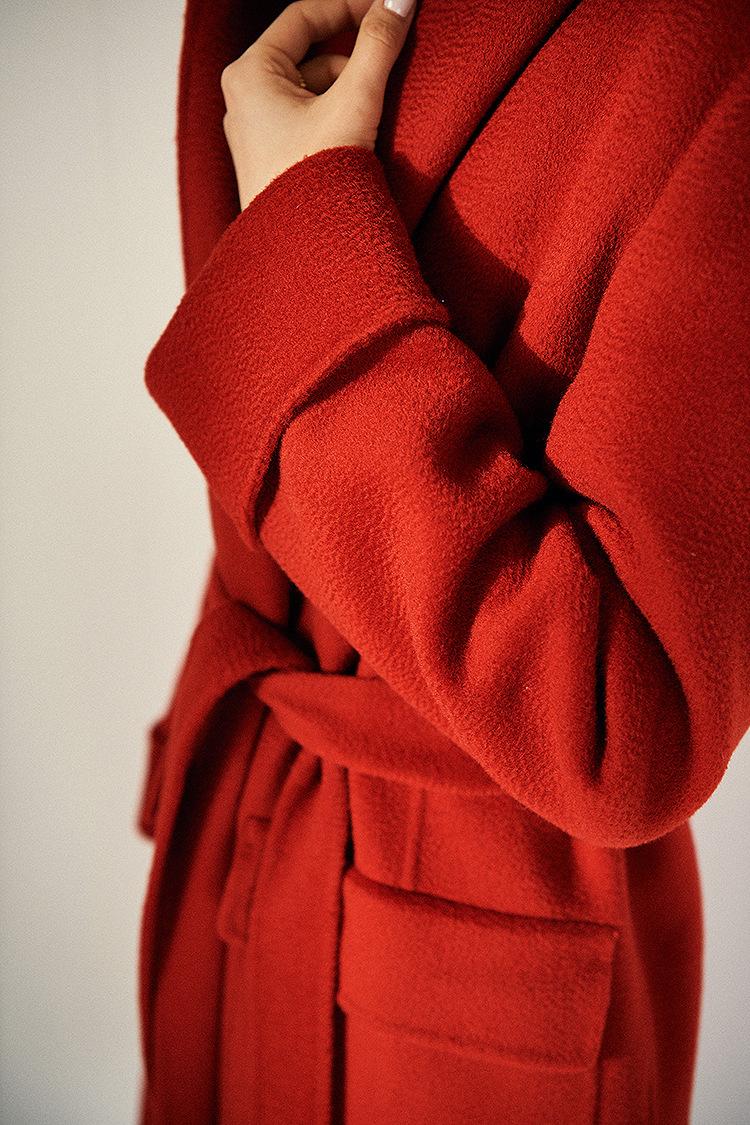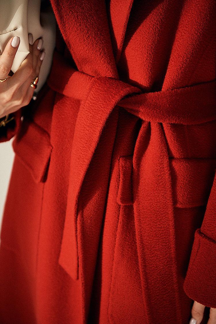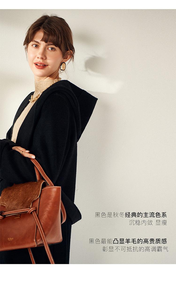 Prenda exterior de cachemira de doble cara para mujer 2025 Otoño e Invierno Nuevo estilo Rojo Slim Largo medio Pequeña prenda exterior de lana con capucha