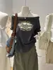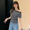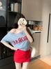 Camiseta de manga corta con hombros descubiertos blanca retro de estilo americano para mujer, novedad de verano 2023, top corto elegante con hombreras estampadas a la moda