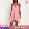 Vestido de mujer nuevo de estilo europeo y americano con cuello redondo, sin mangas, estampado de red de seda, sin espalda, ajustado, sexy y a la moda.