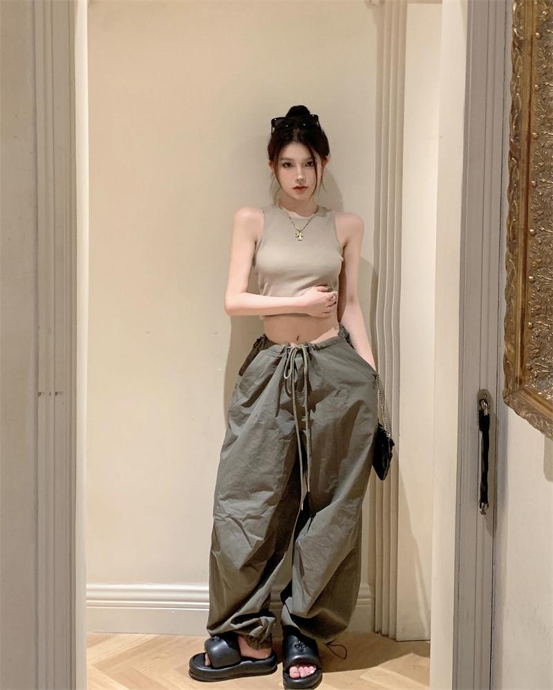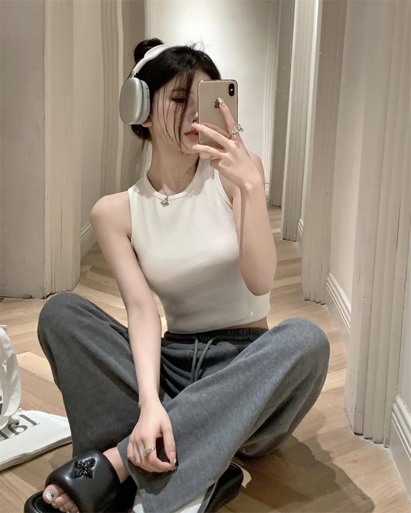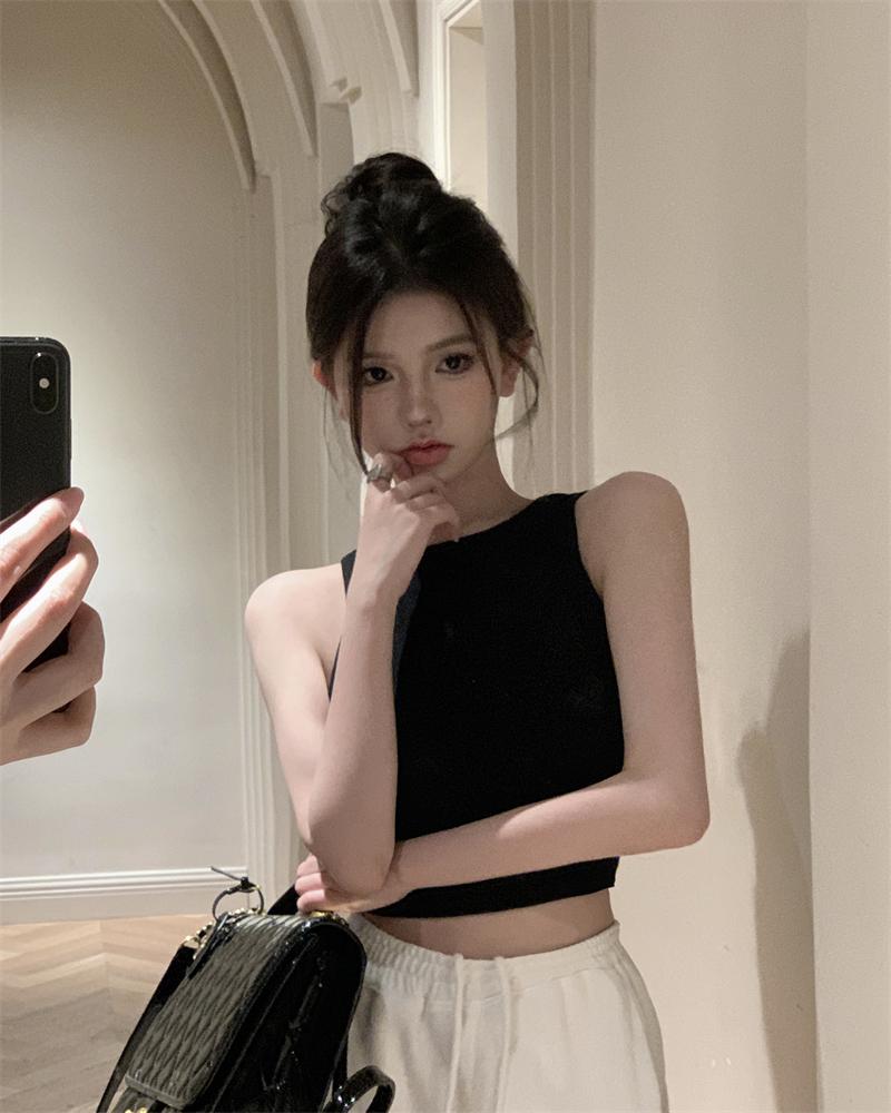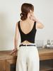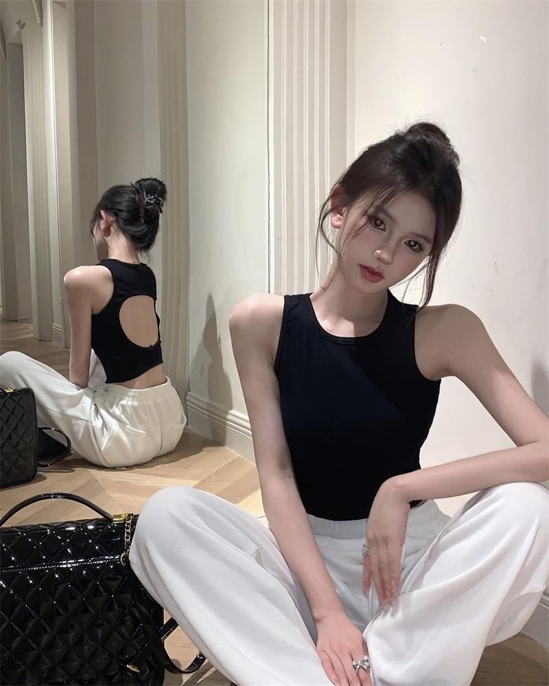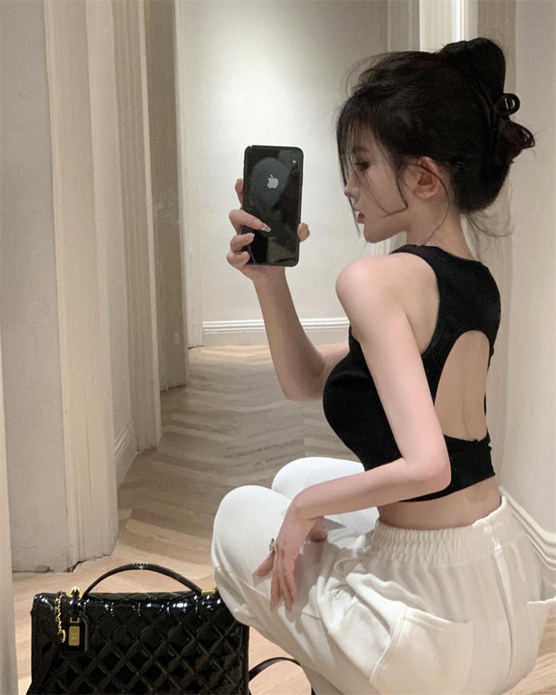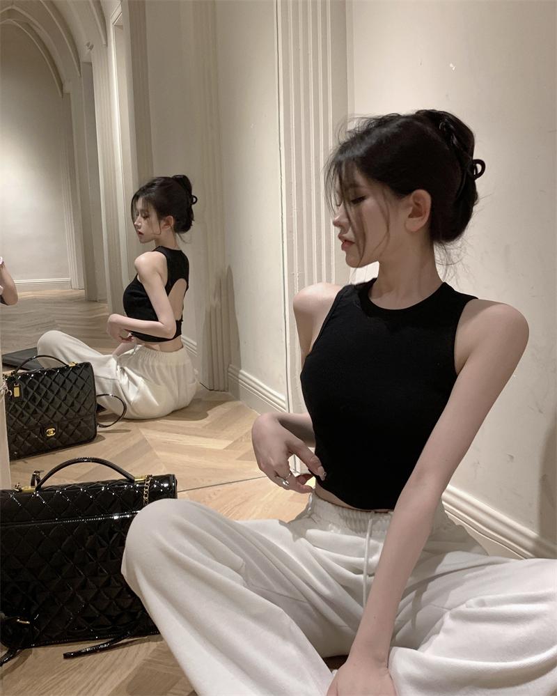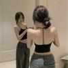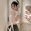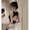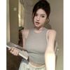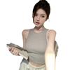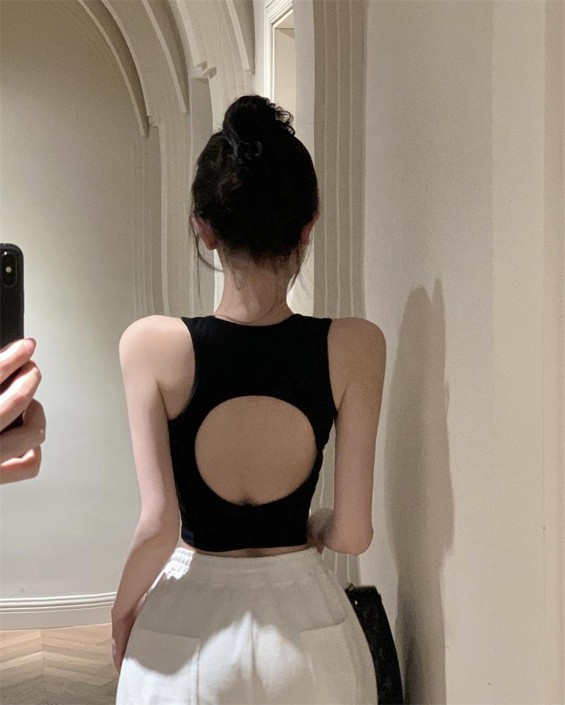 Camisola pequeña gris hermosa de espalda en I para mujer con almohadillas para el busto para el verano, sexy para usar por dentro y por fuera, top corto sin mangas y sin espalda